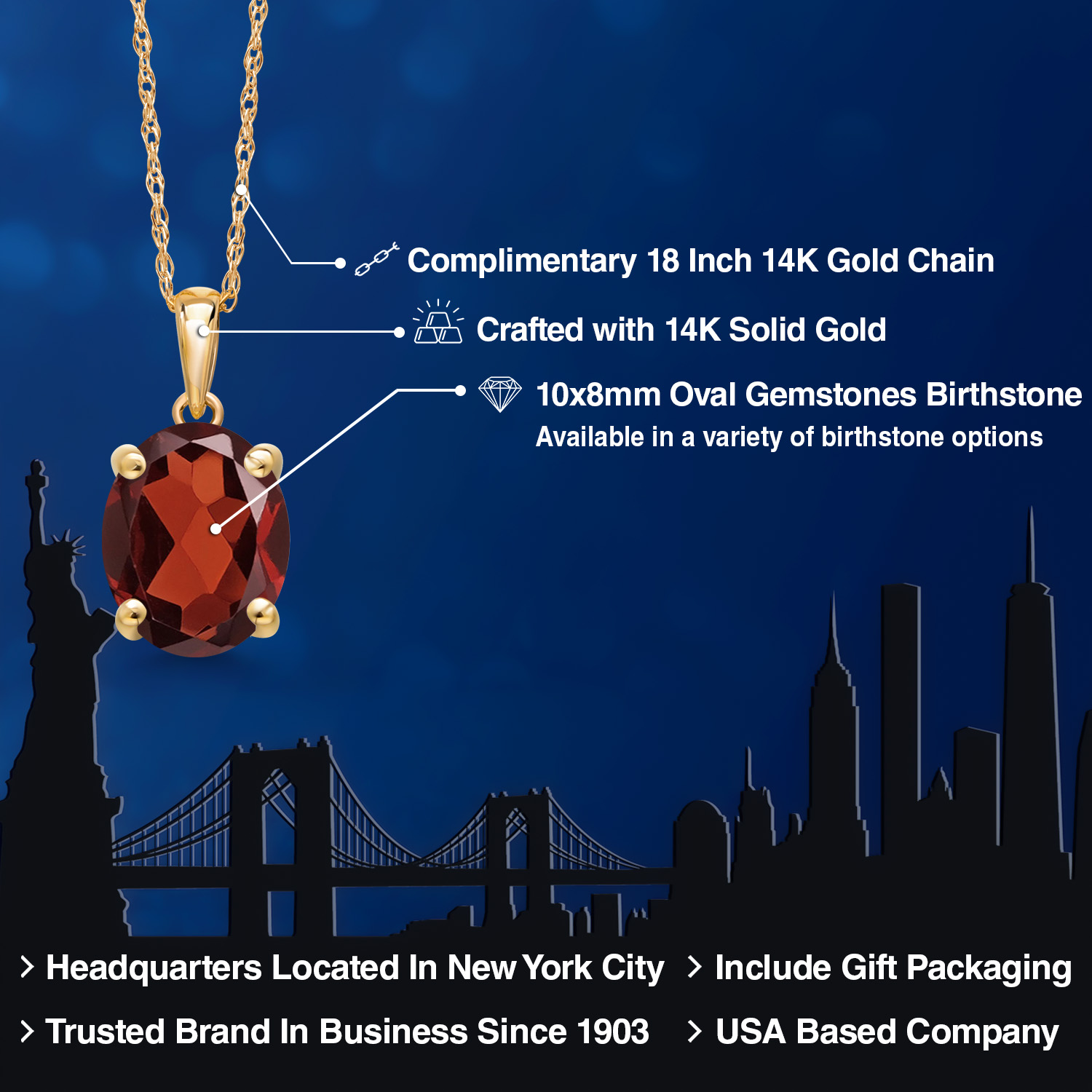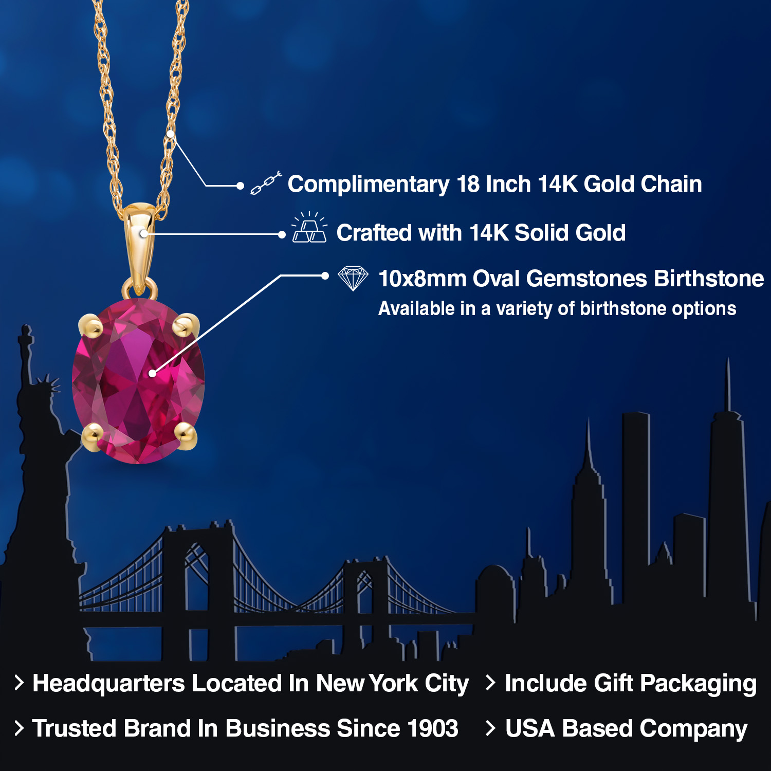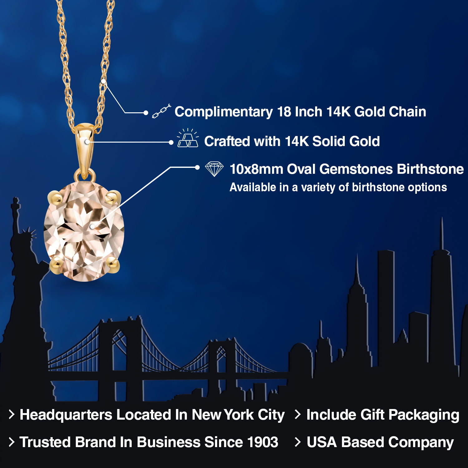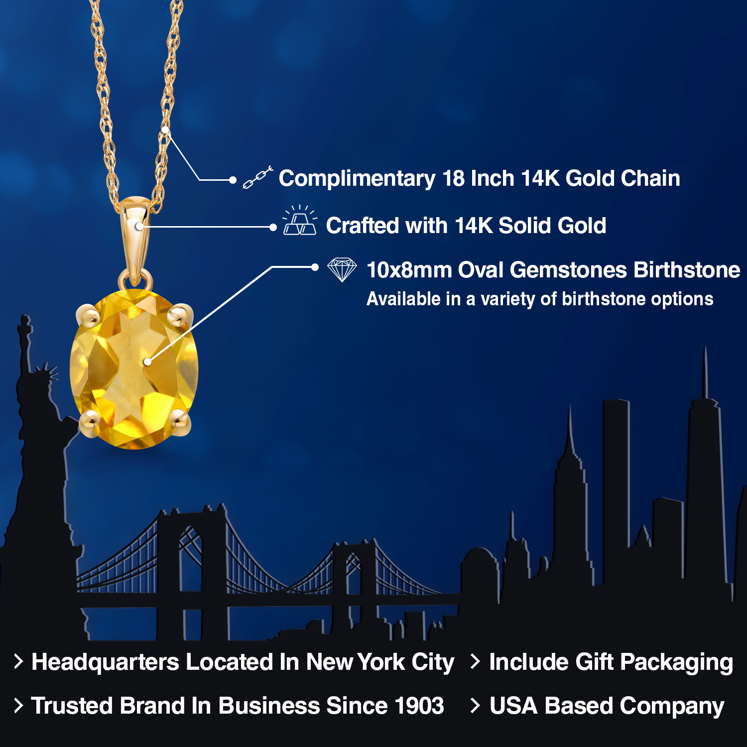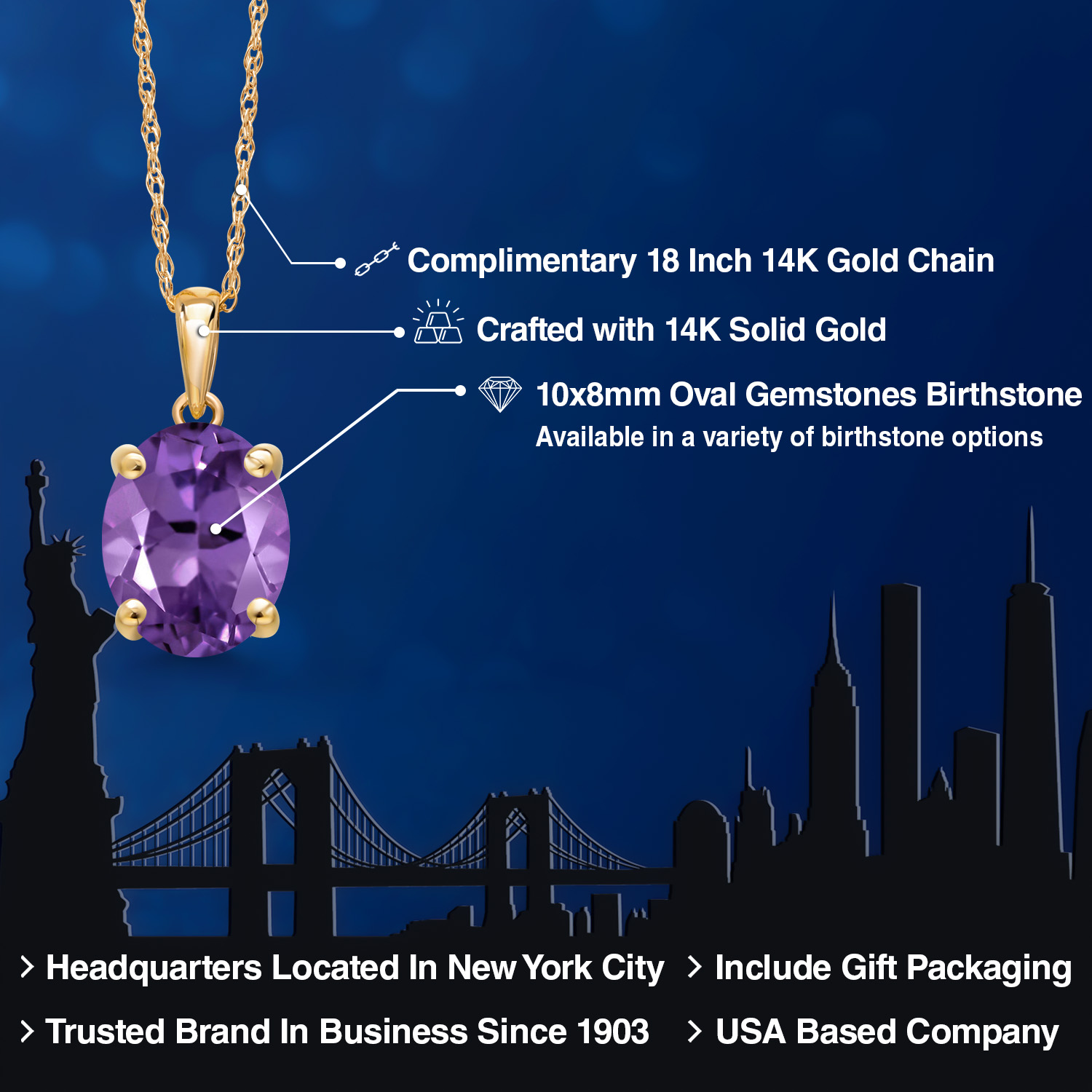 TIMELESS AND ELEGANT DESIGN: This exquisite pendant necklace features a 10x8MM oval gemstone birthstone set in luxurious 14K Yellow Gold. The classic solitaire design exudes elegance and sophistication, making it a perfect accessory for both everyday wear and special occasions.