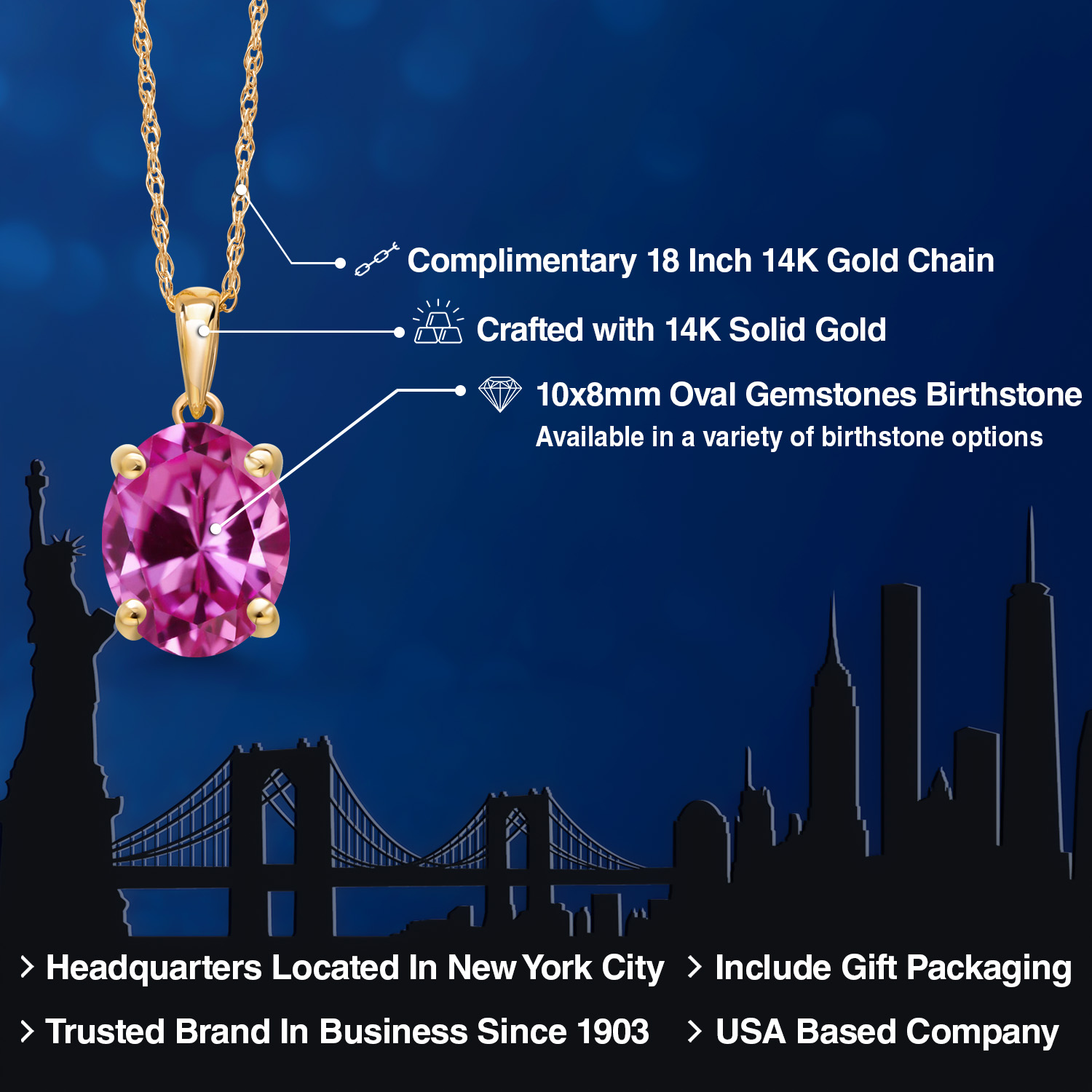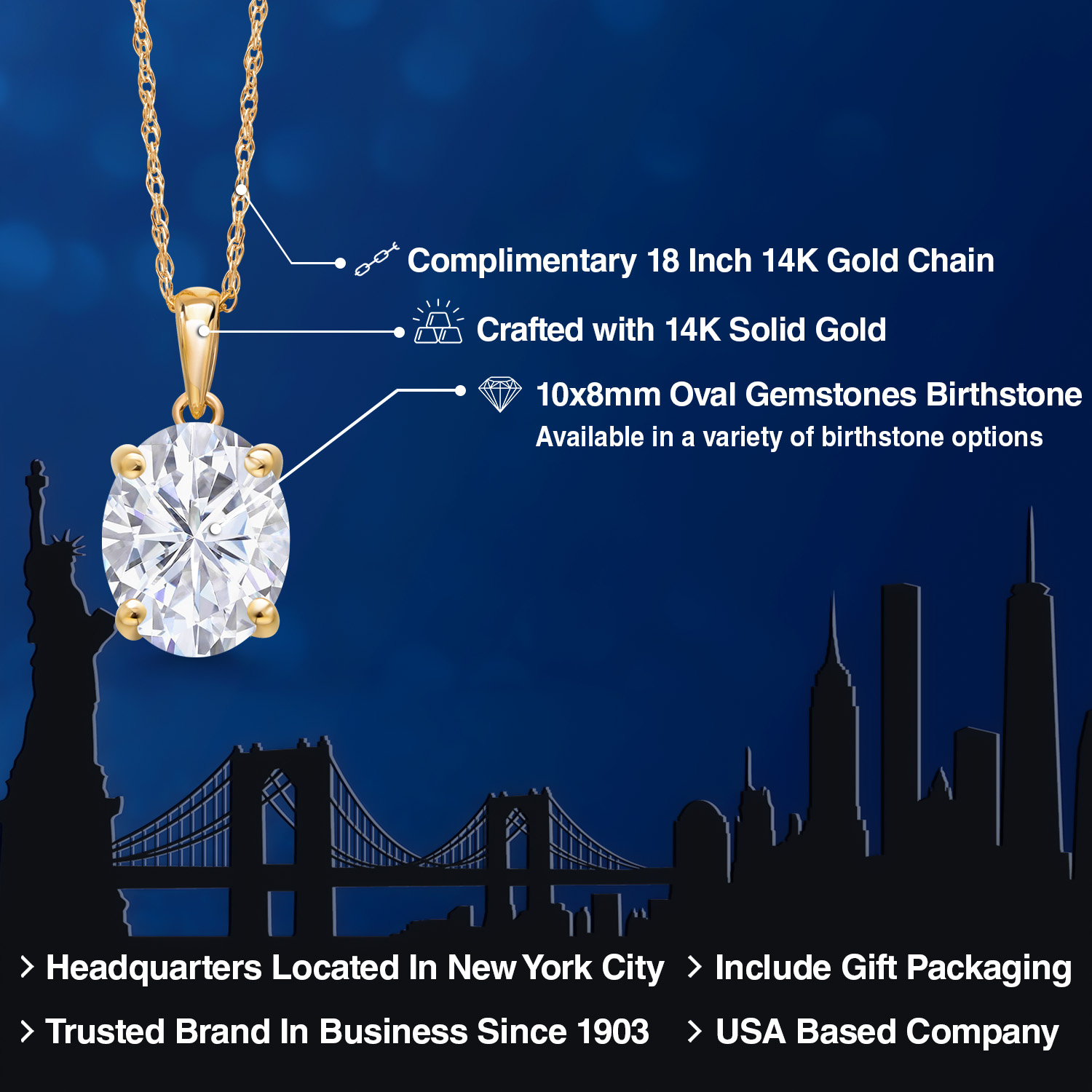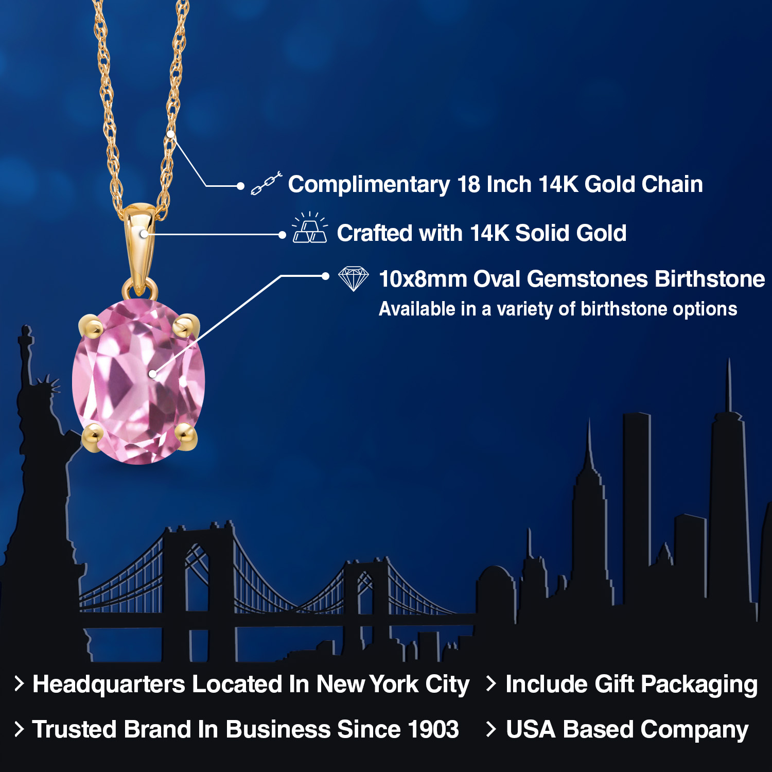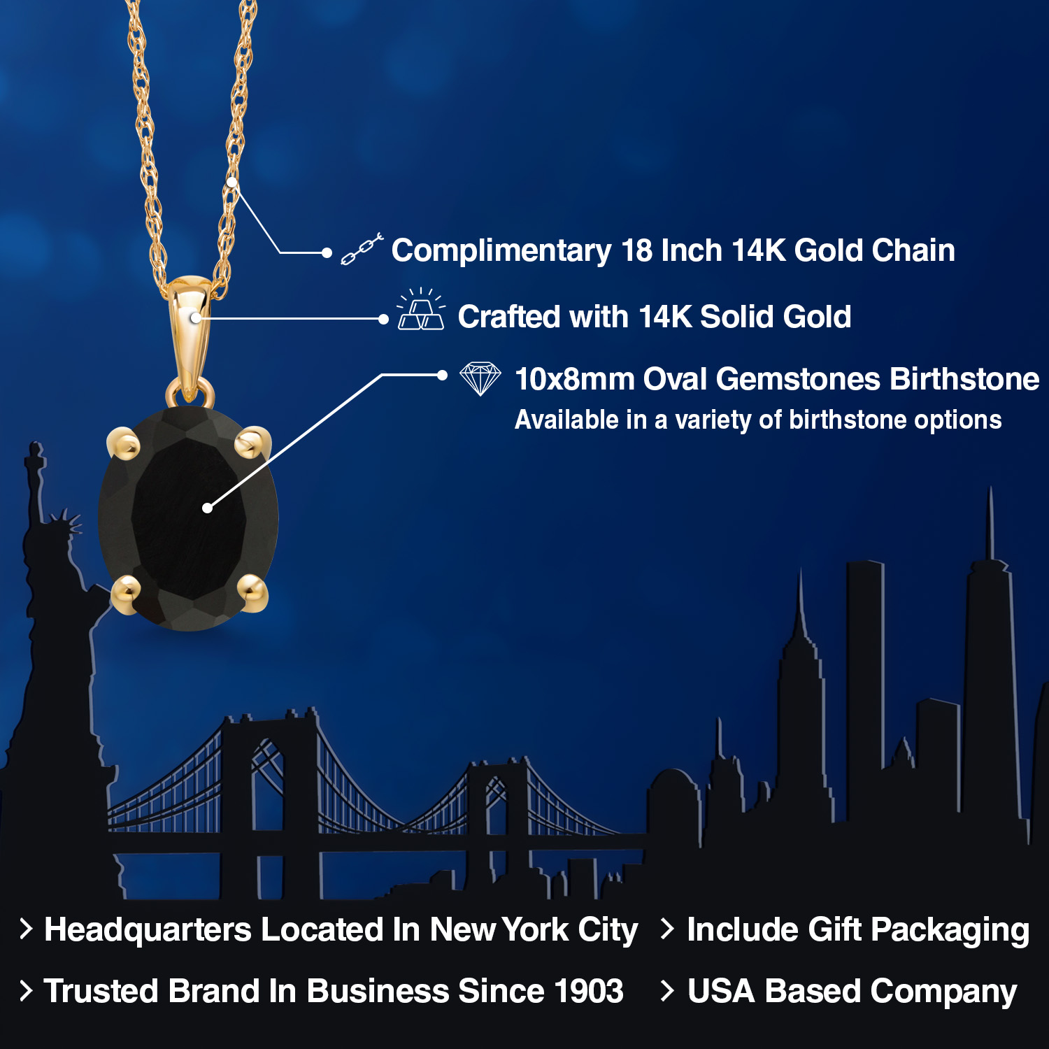 TIMELESS AND ELEGANT DESIGN: This exquisite pendant necklace features a 10x8MM oval gemstone birthstone set in luxurious 14K Yellow Gold. The classic solitaire design exudes elegance and sophistication, making it a perfect accessory for both everyday wear and special occasions.