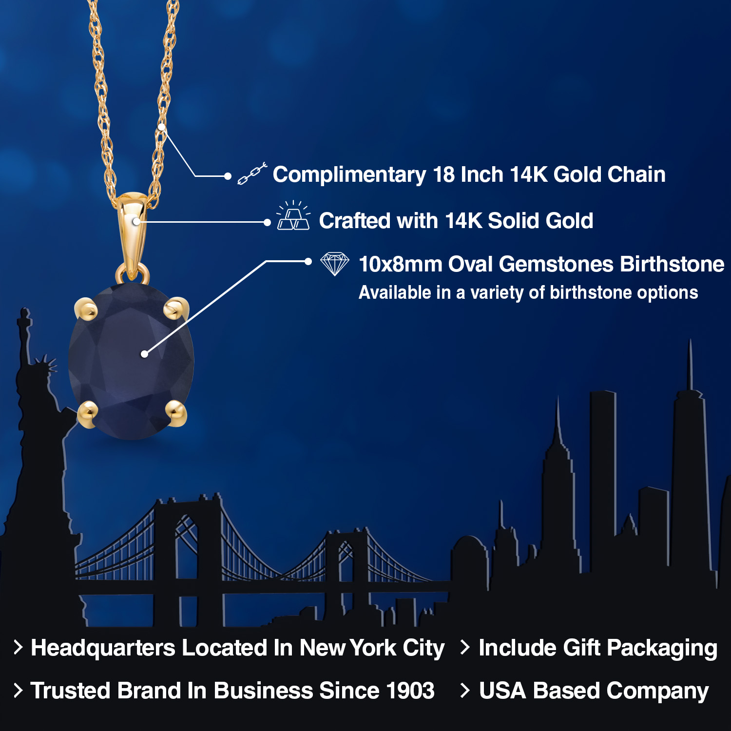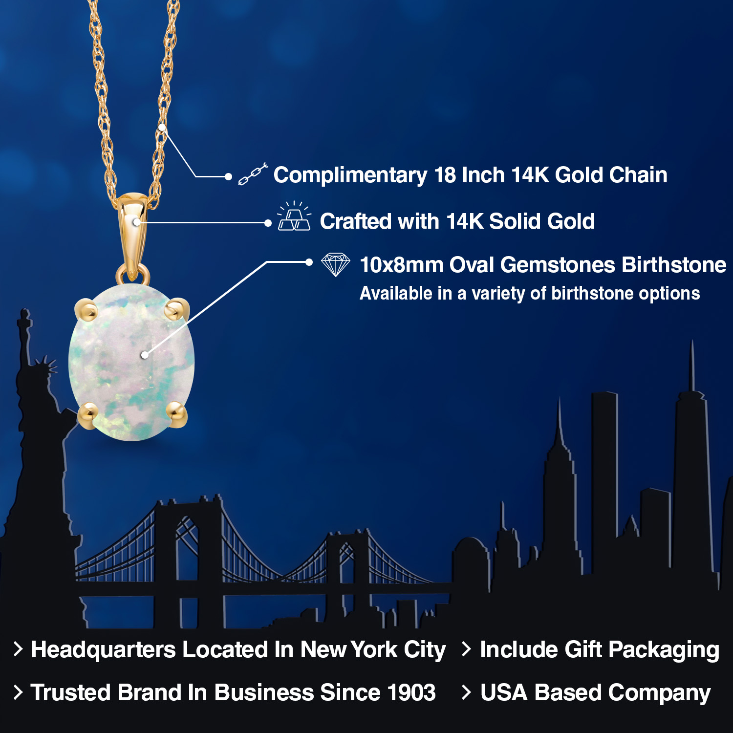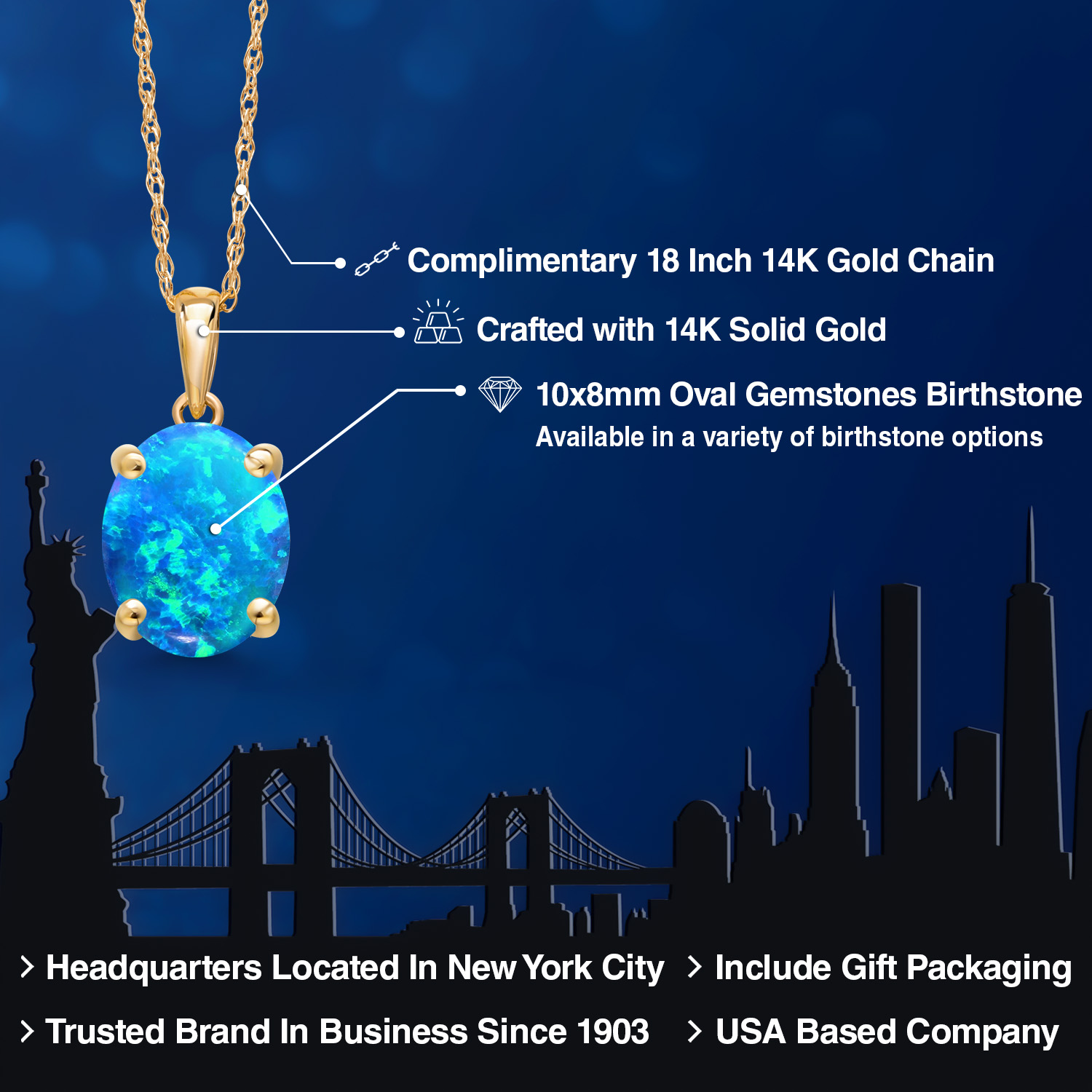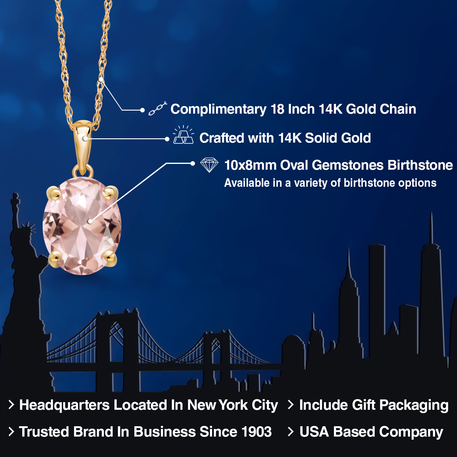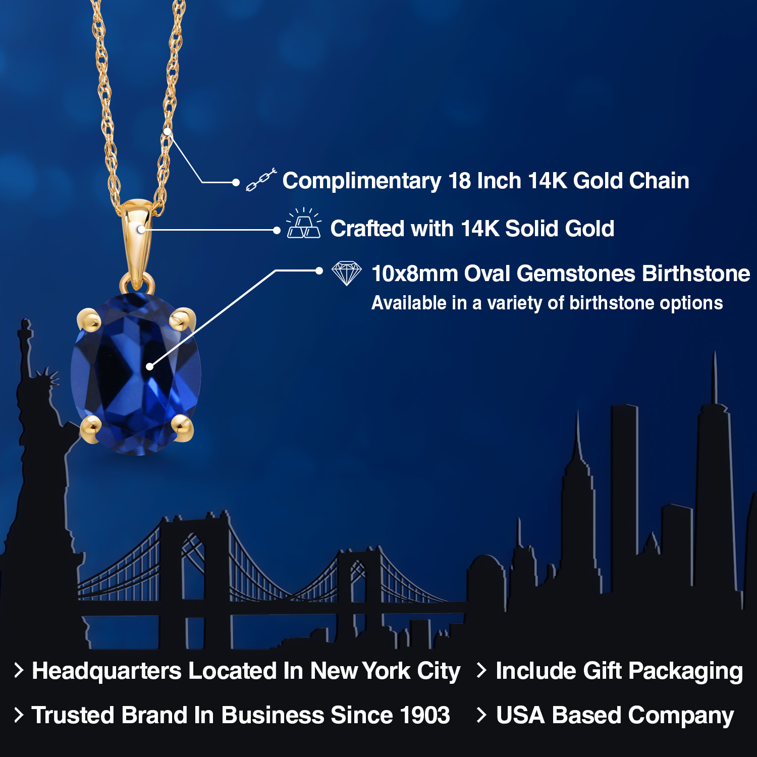 TIMELESS AND ELEGANT DESIGN: This exquisite pendant necklace features a 10x8MM oval gemstone birthstone set in luxurious 14K Yellow Gold. The classic solitaire design exudes elegance and sophistication, making it a perfect accessory for both everyday wear and special occasions.