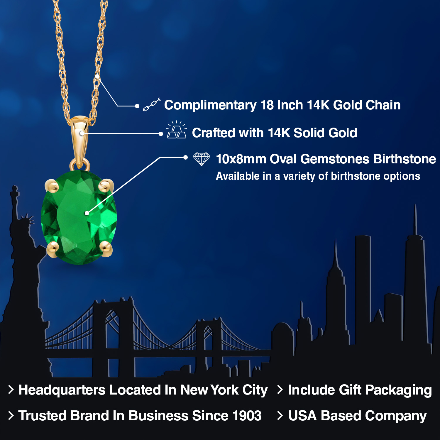 SUPERIOR QUALITY CRAFTSMANSHIP: Crafted from genuine 14K Yellow Gold, this necklace ensures both durability and a brilliant shine. The 10x8MM oval gemstone is meticulously selected for its vibrant color and exceptional clarity, providing a radiant sparkle that will be admired from every angle.
