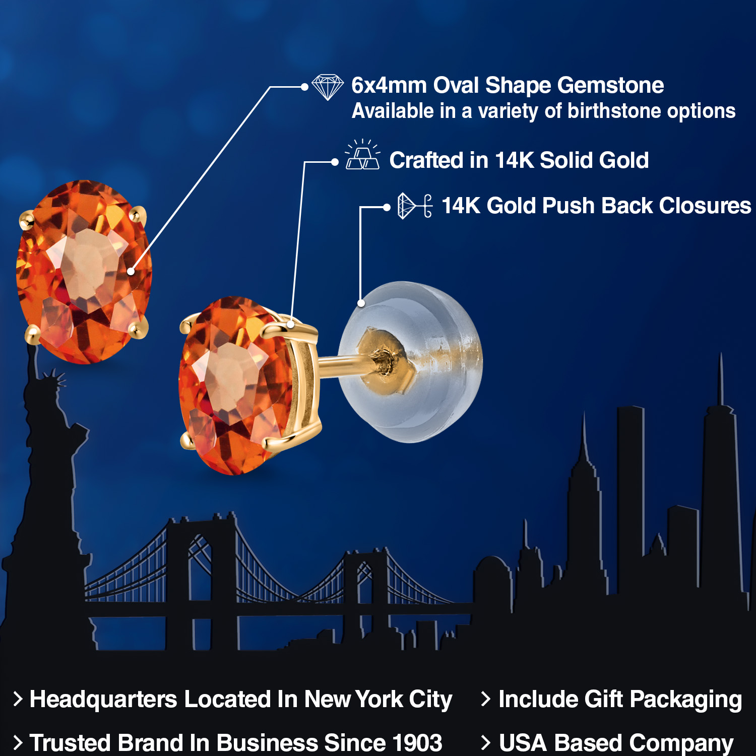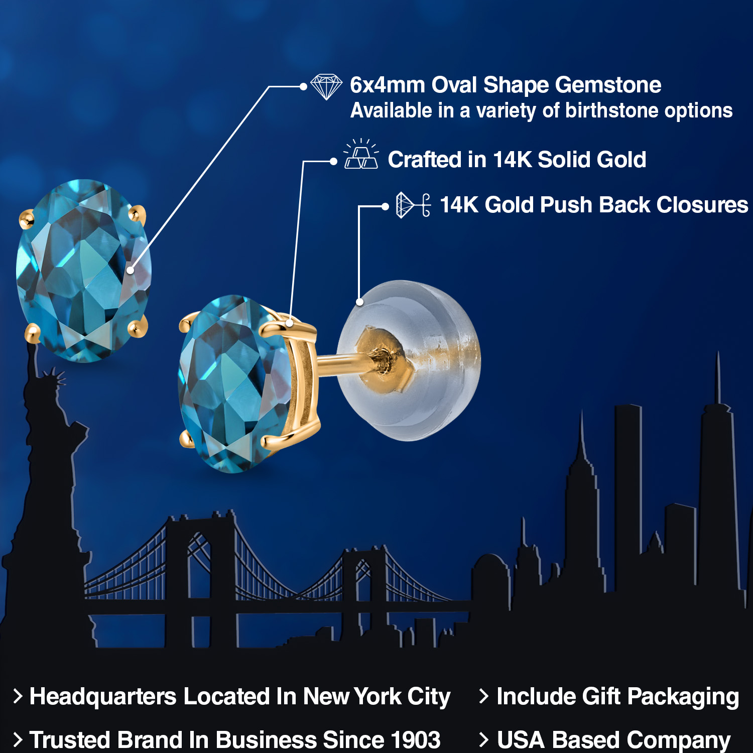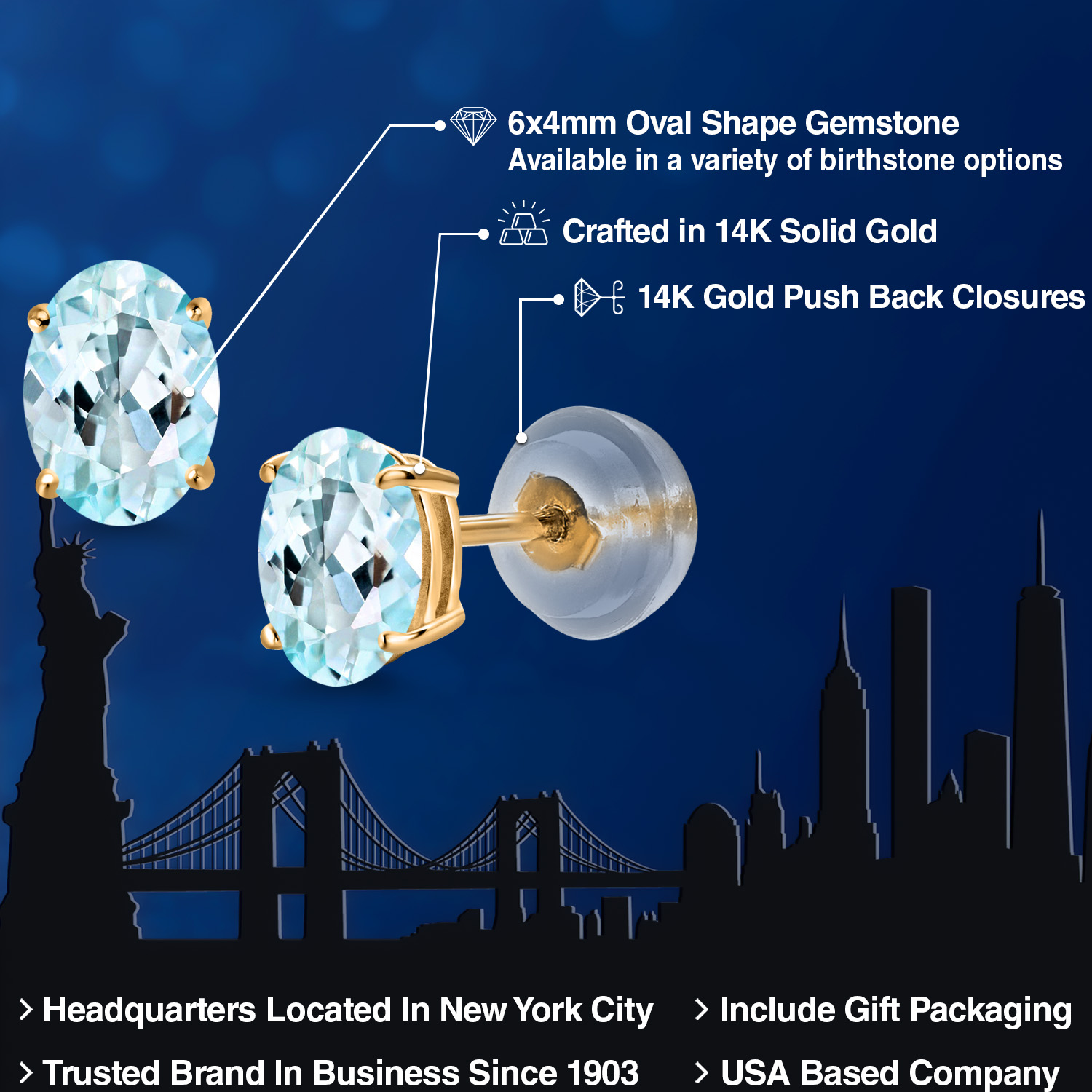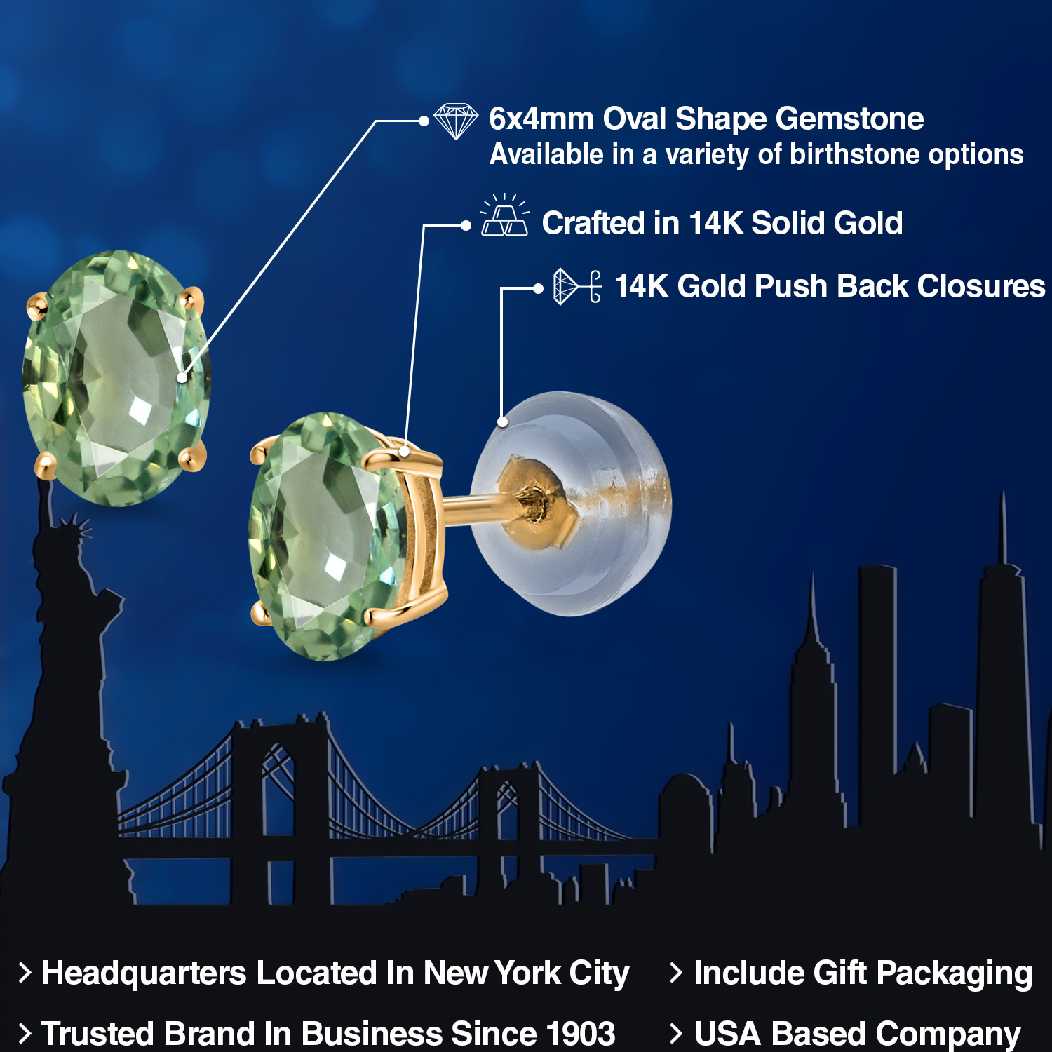 14K Yellow Gold Gemstone Birthstone Stud Earrings for Women | Oval 6X4MM | Fine Jewelry for Her Mom Wife