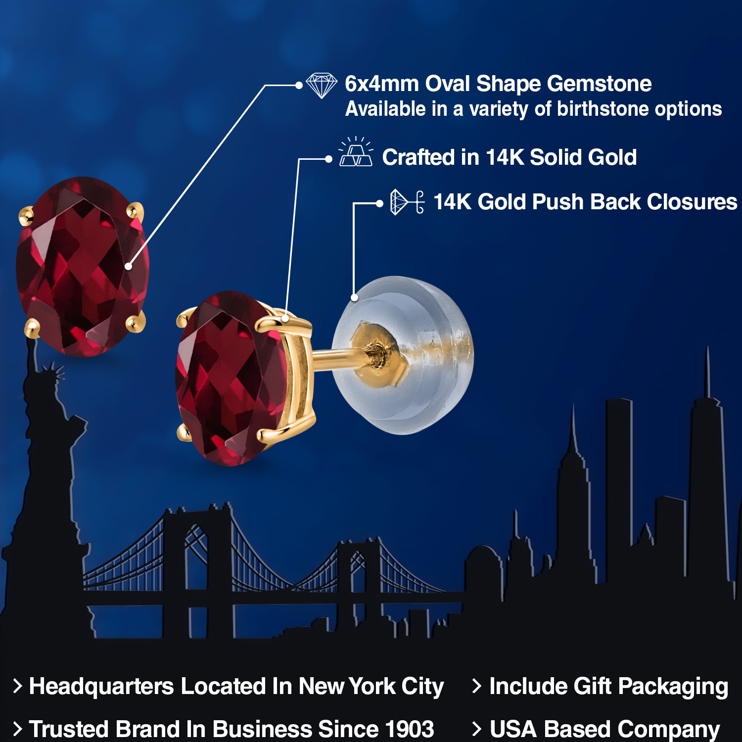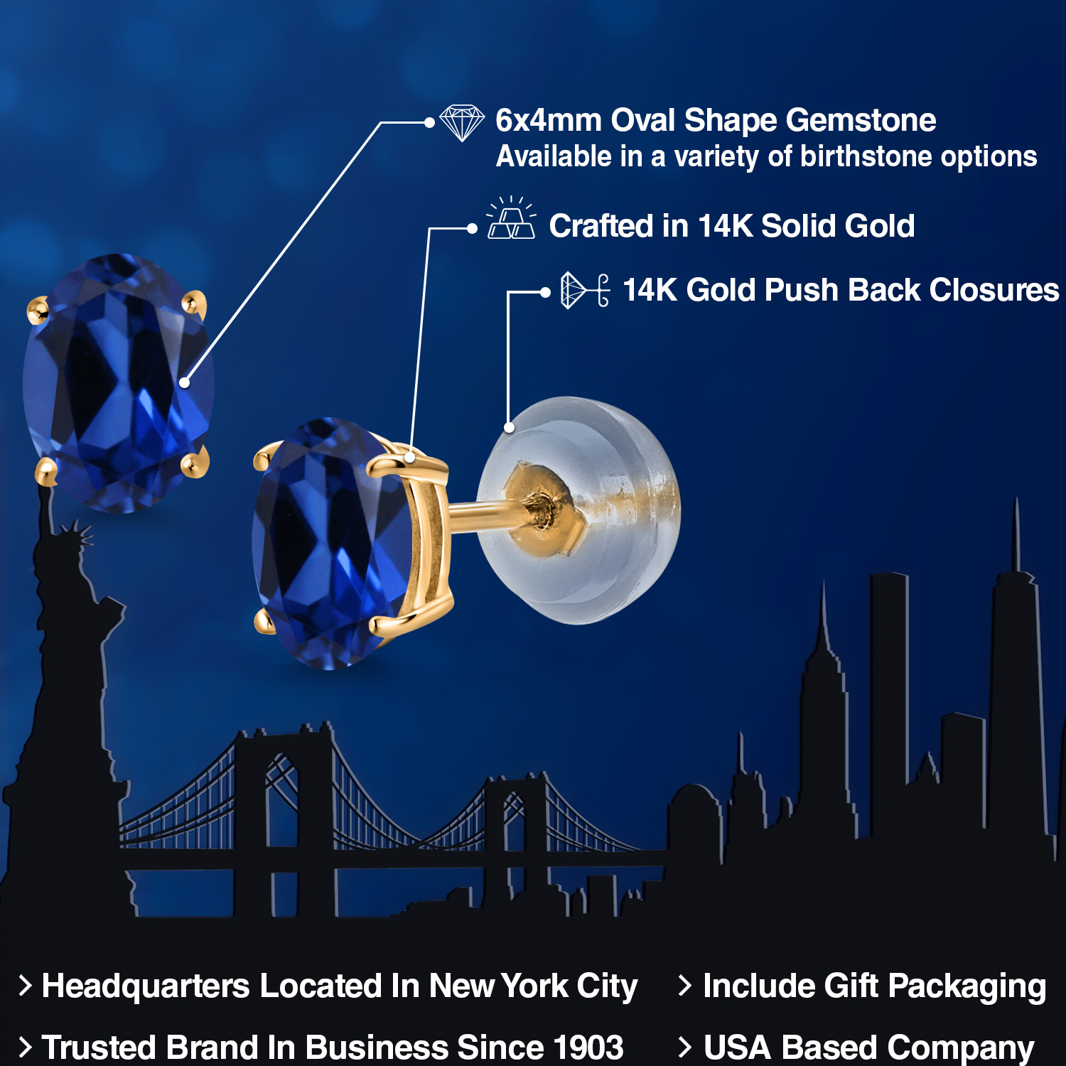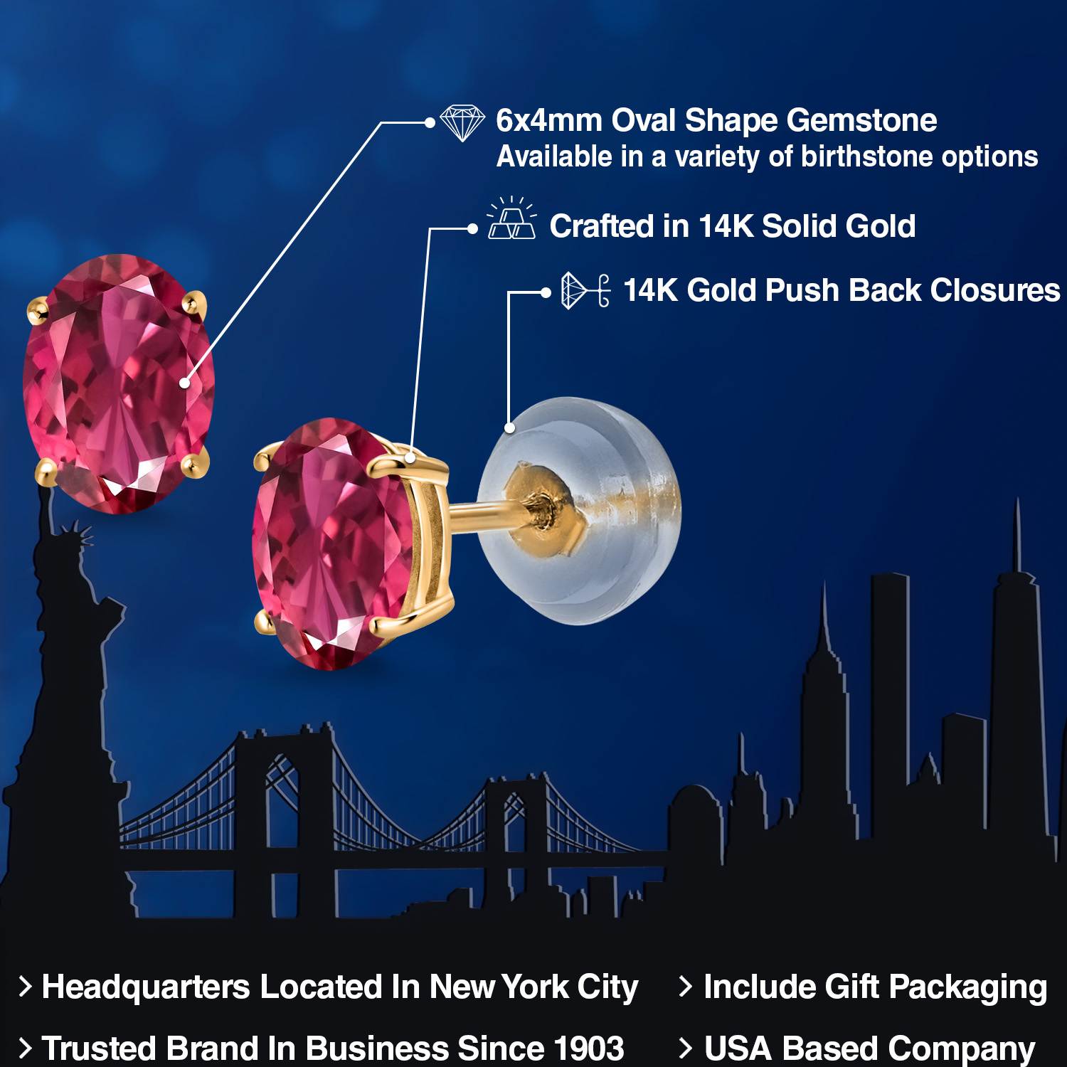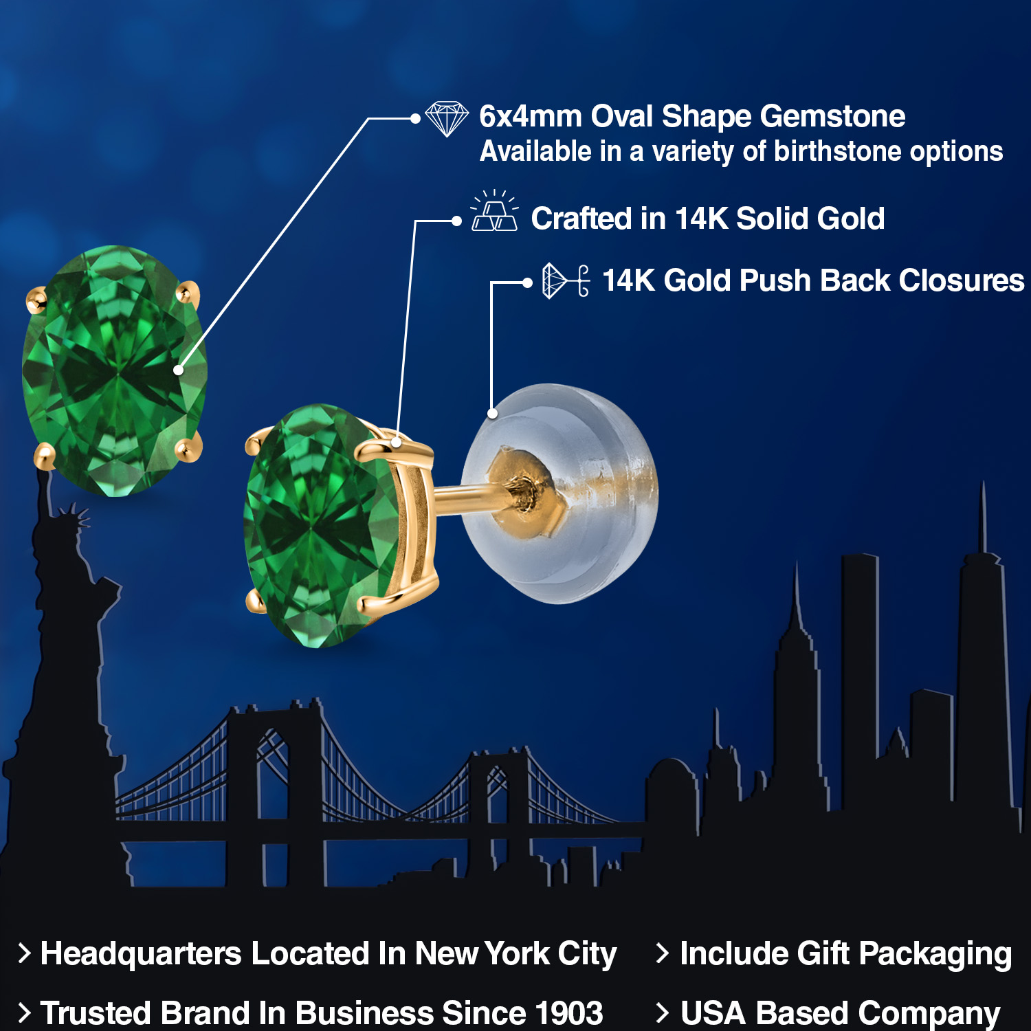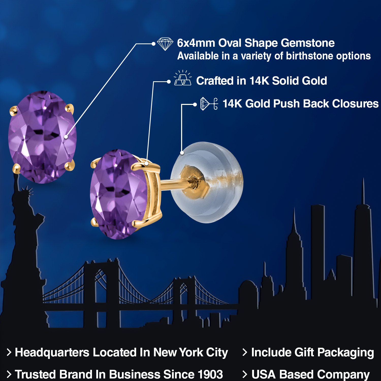 14K Yellow Gold Gemstone Birthstone Stud Earrings for Women | Oval 6X4MM | Fine Jewelry for Her Mom Wife