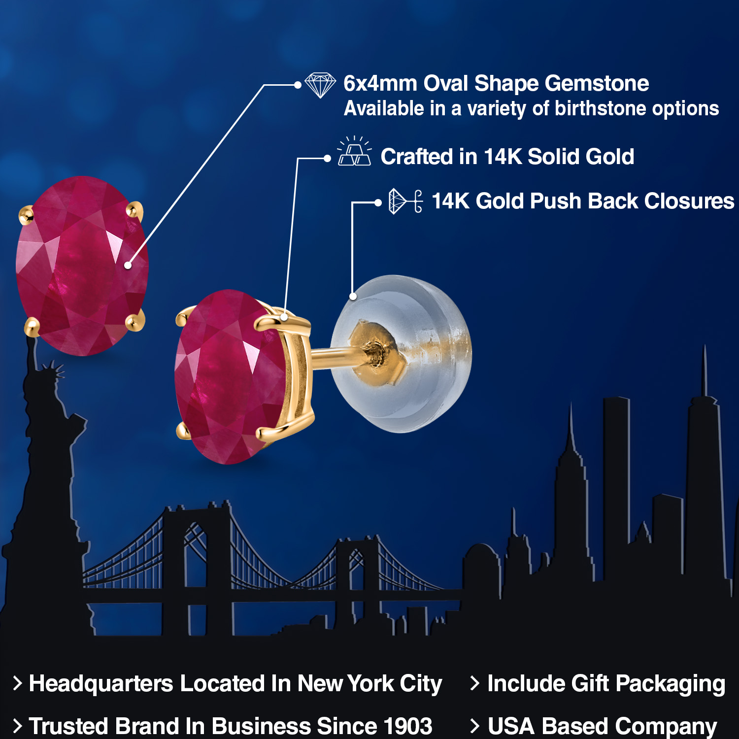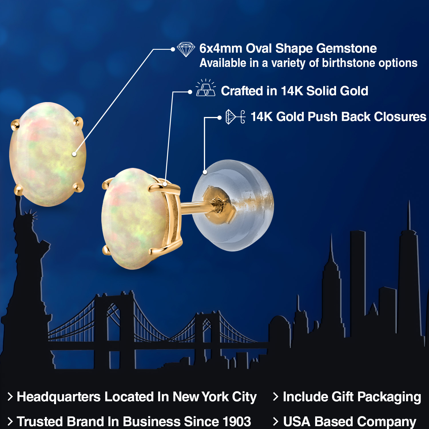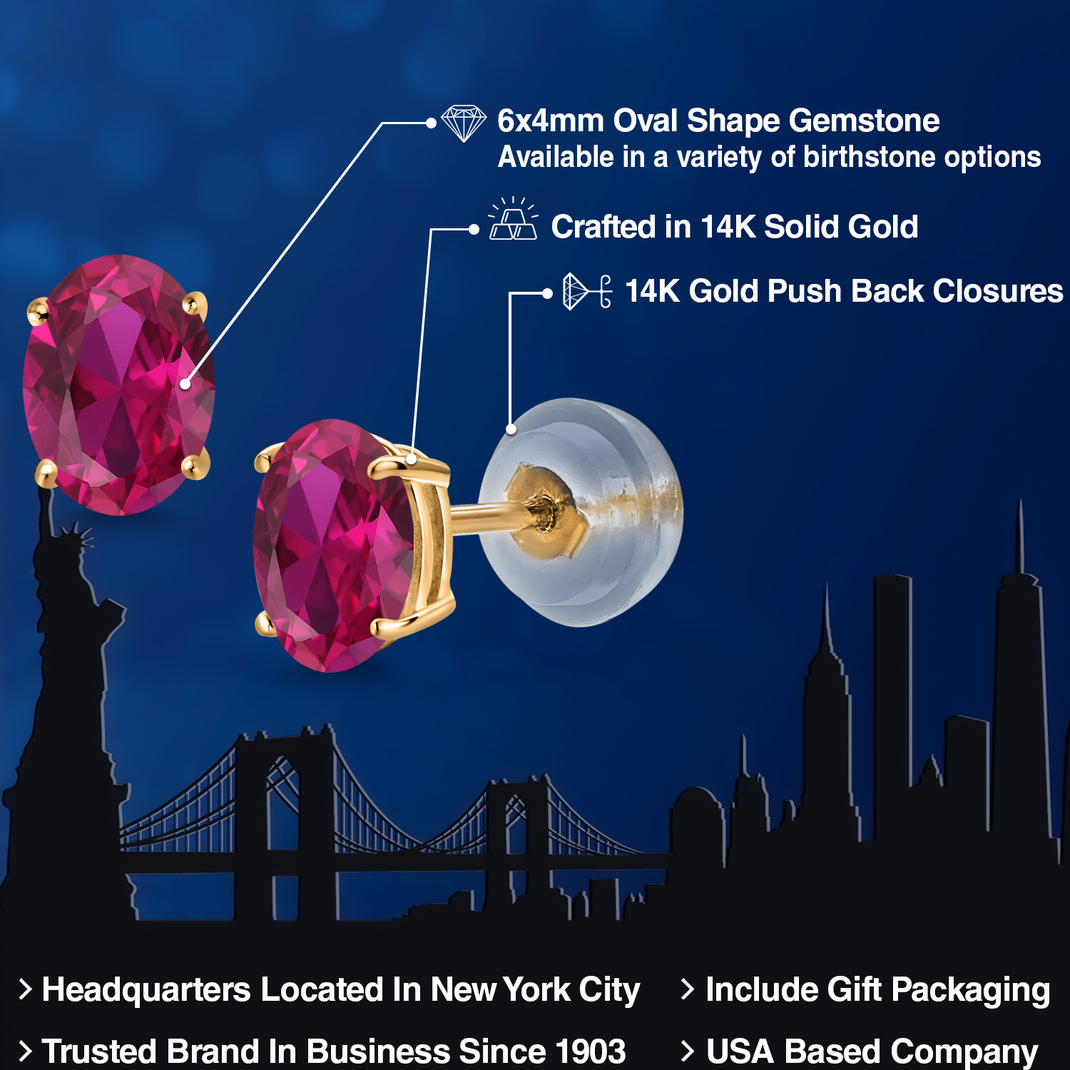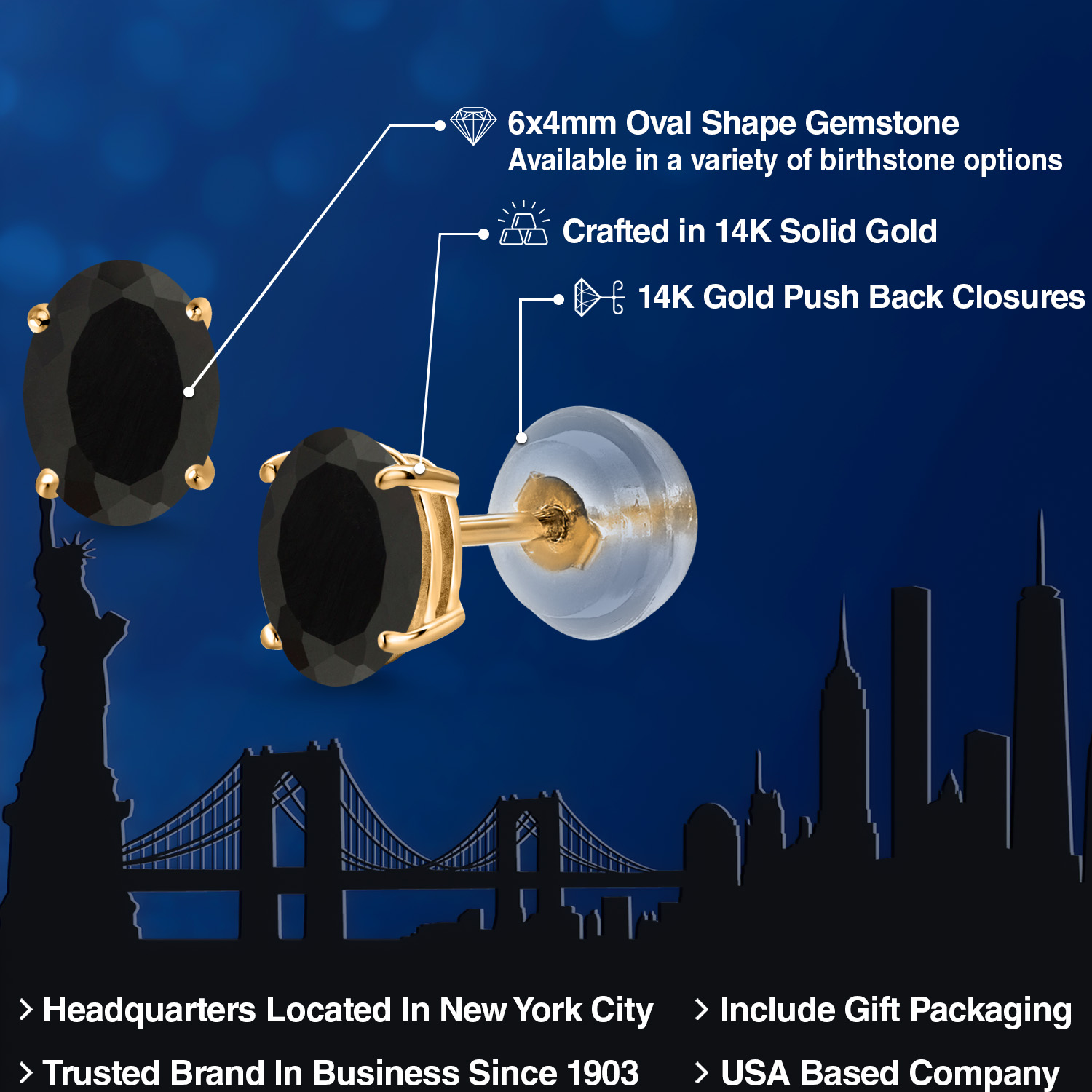 14K Yellow Gold Gemstone Birthstone Stud Earrings for Women | Oval 6X4MM | Fine Jewelry for Her Mom Wife