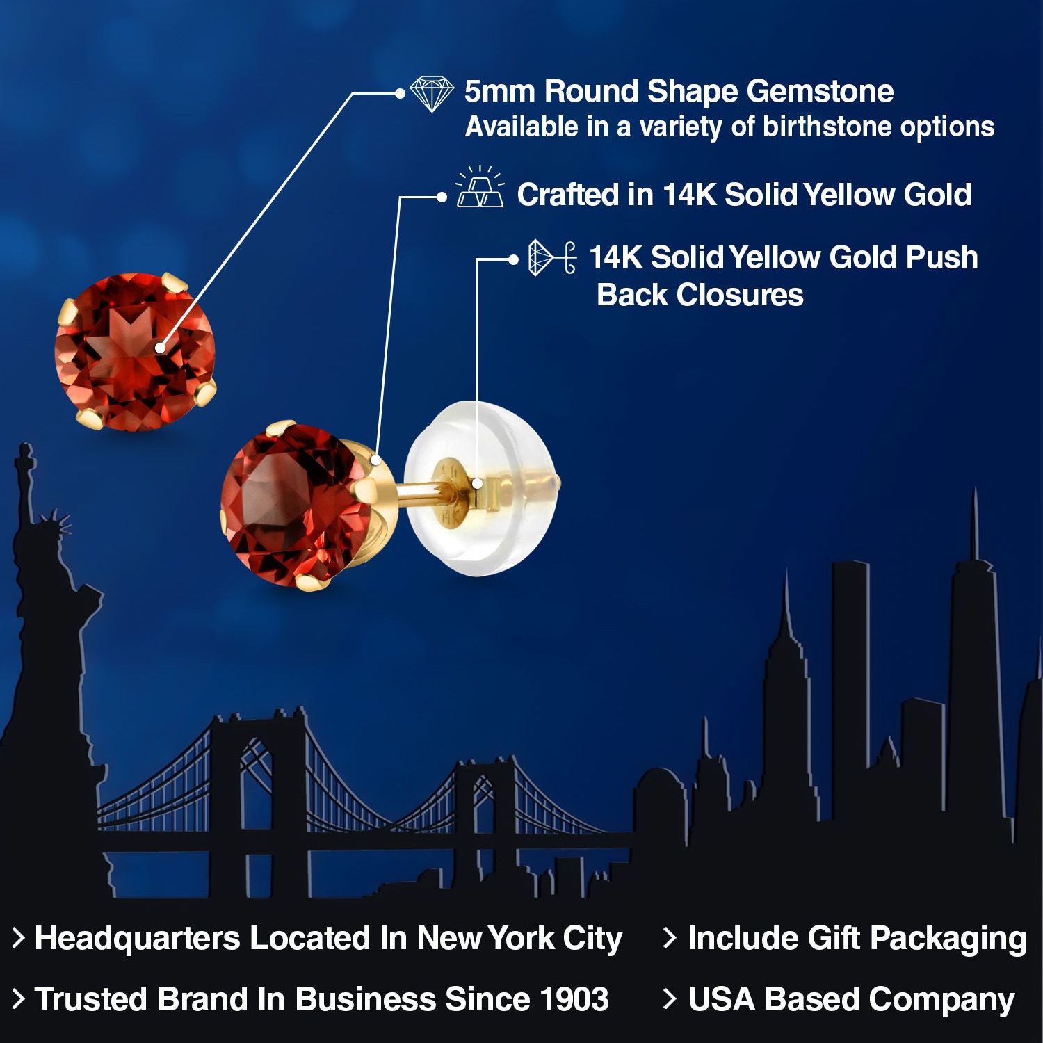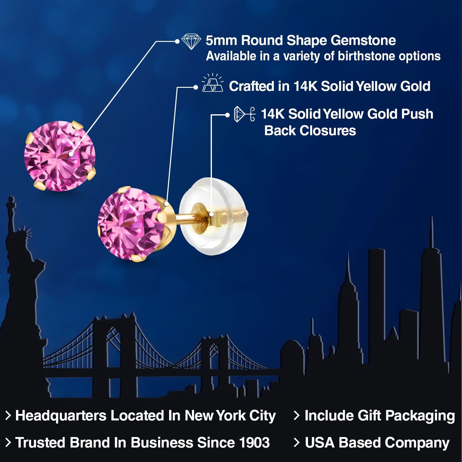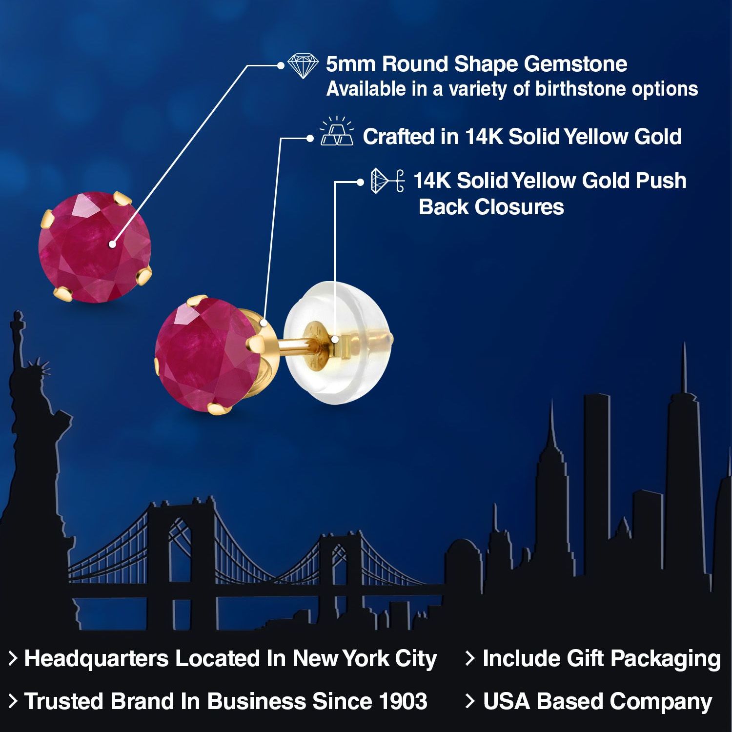 PERFECT GIFT OF TIMELESS BEAUTY: These gemstone stud earrings are an exceptional gift choice, offering a blend of elegance and sentimentality. Ideal for birthdays, anniversaries, or any special occasion, their classic design and hypoallergenic properties make them suitable for anyone, including those with sensitive skin. The 5MM size offers a subtle yet impactful presence, making them an exquisite addition to any jewelry collection.
