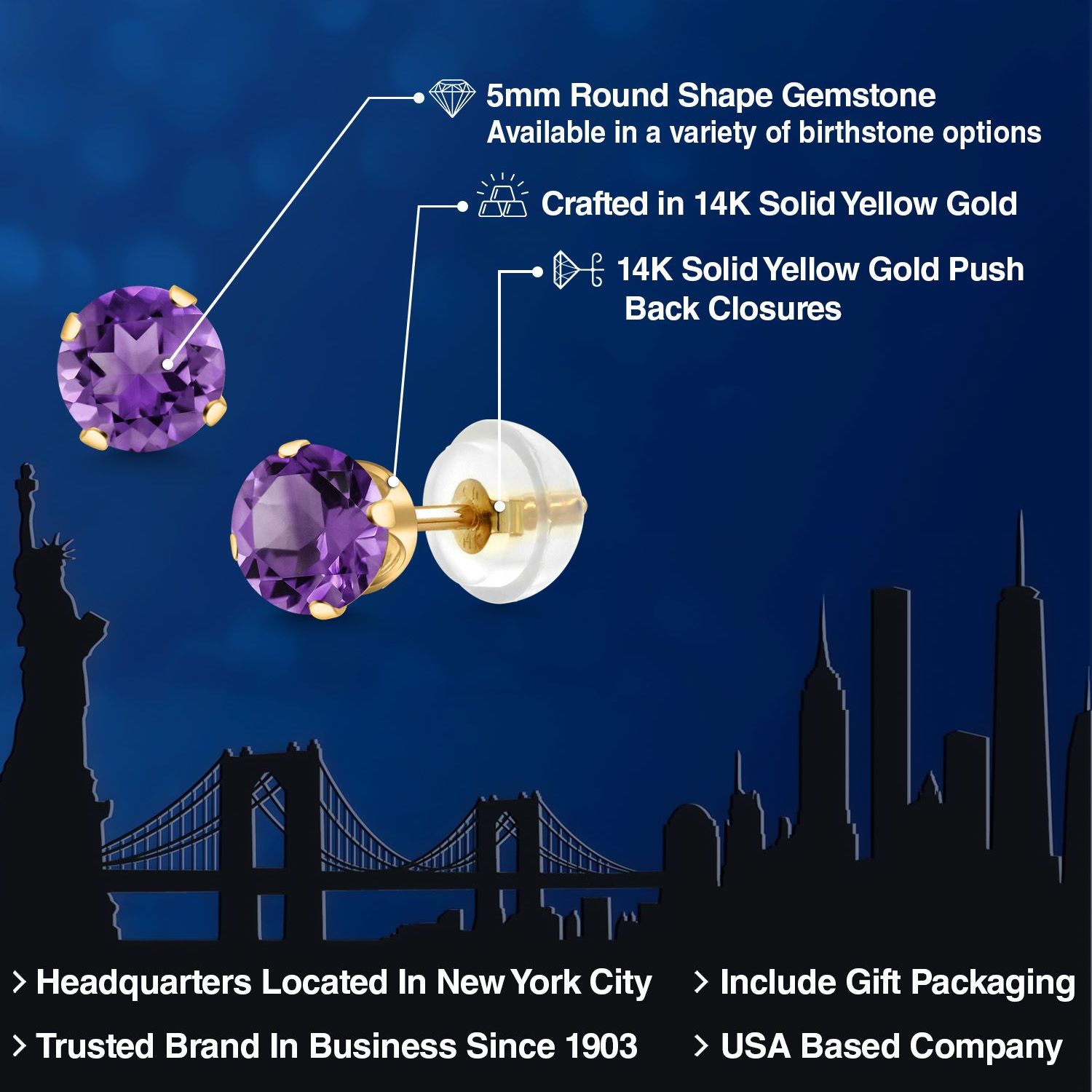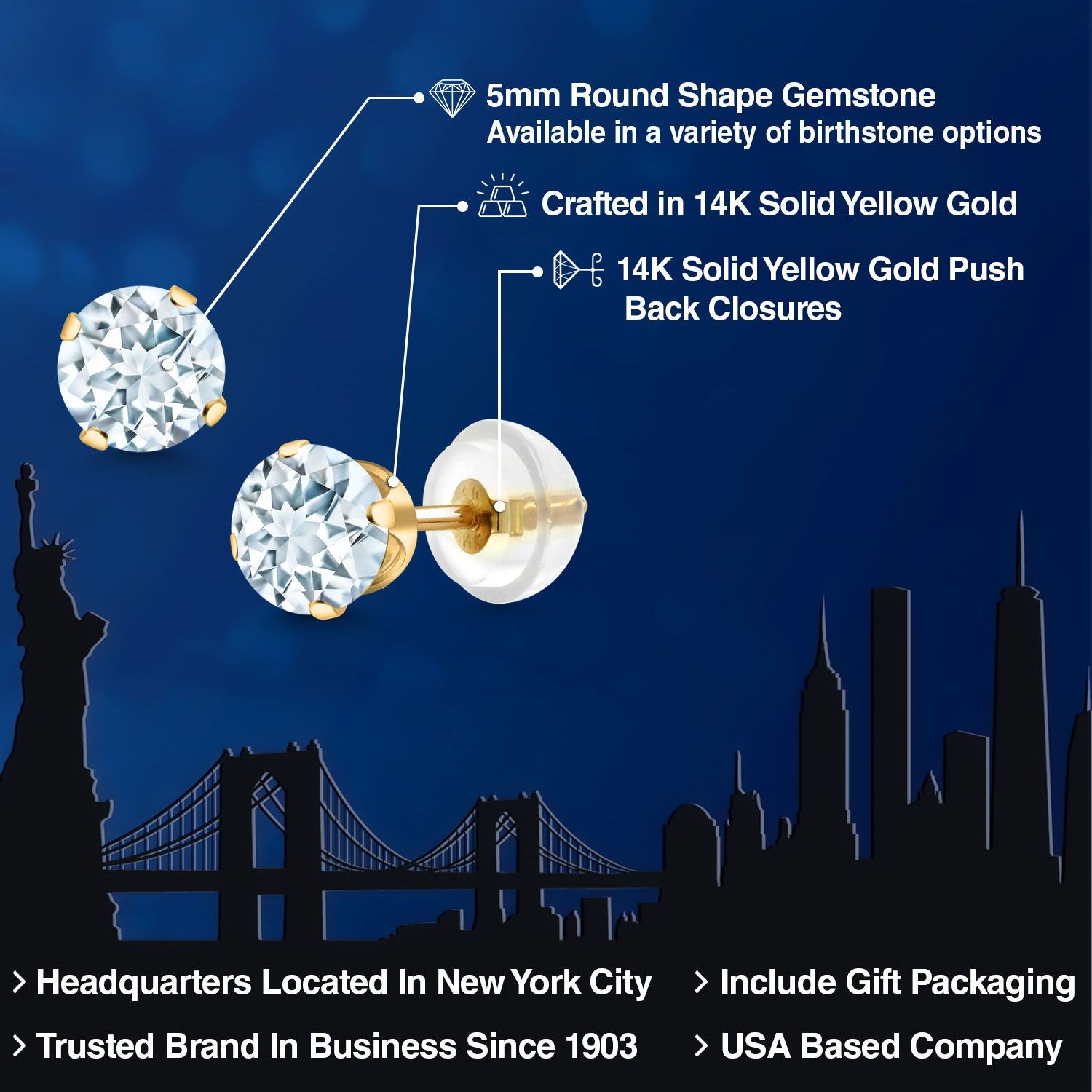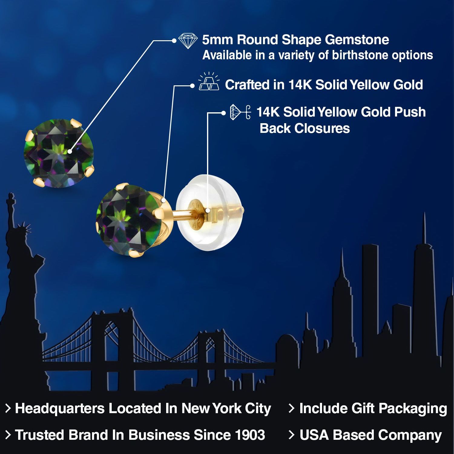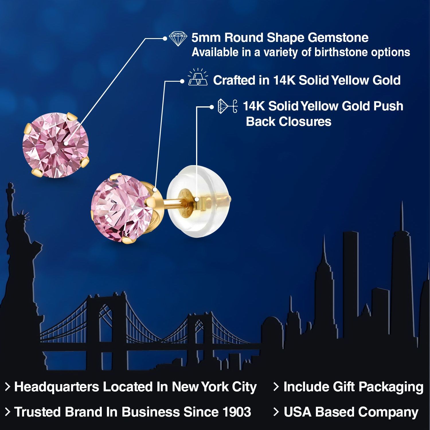 PERFECT GIFT OF TIMELESS BEAUTY: These gemstone stud earrings are an exceptional gift choice, offering a blend of elegance and sentimentality. Ideal for birthdays, anniversaries, or any special occasion, their classic design and hypoallergenic properties make them suitable for anyone, including those with sensitive skin. The 5MM size offers a subtle yet impactful presence, making them an exquisite addition to any jewelry collection.