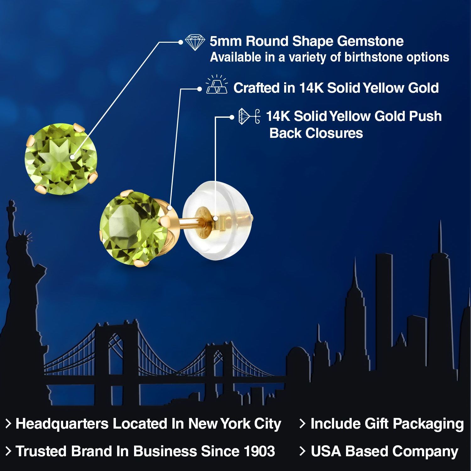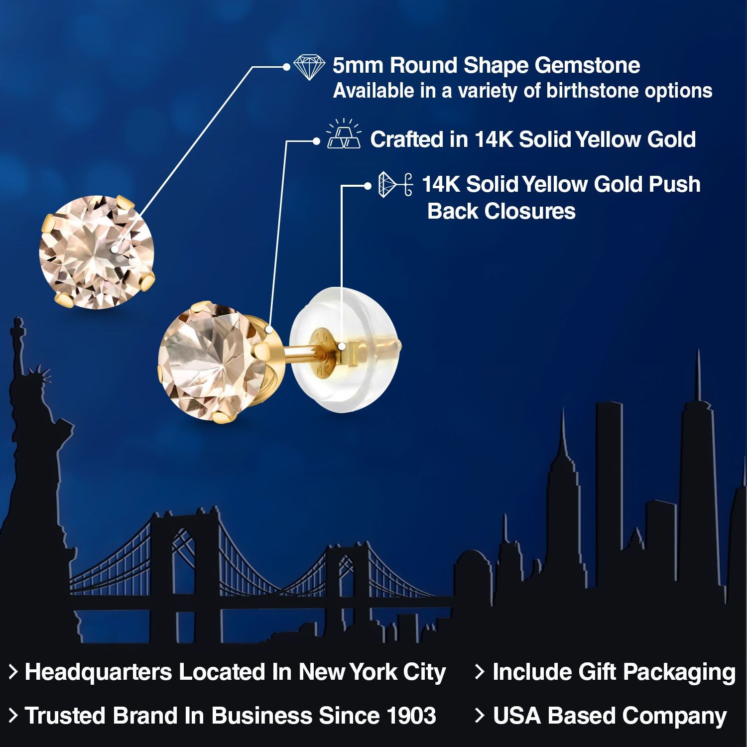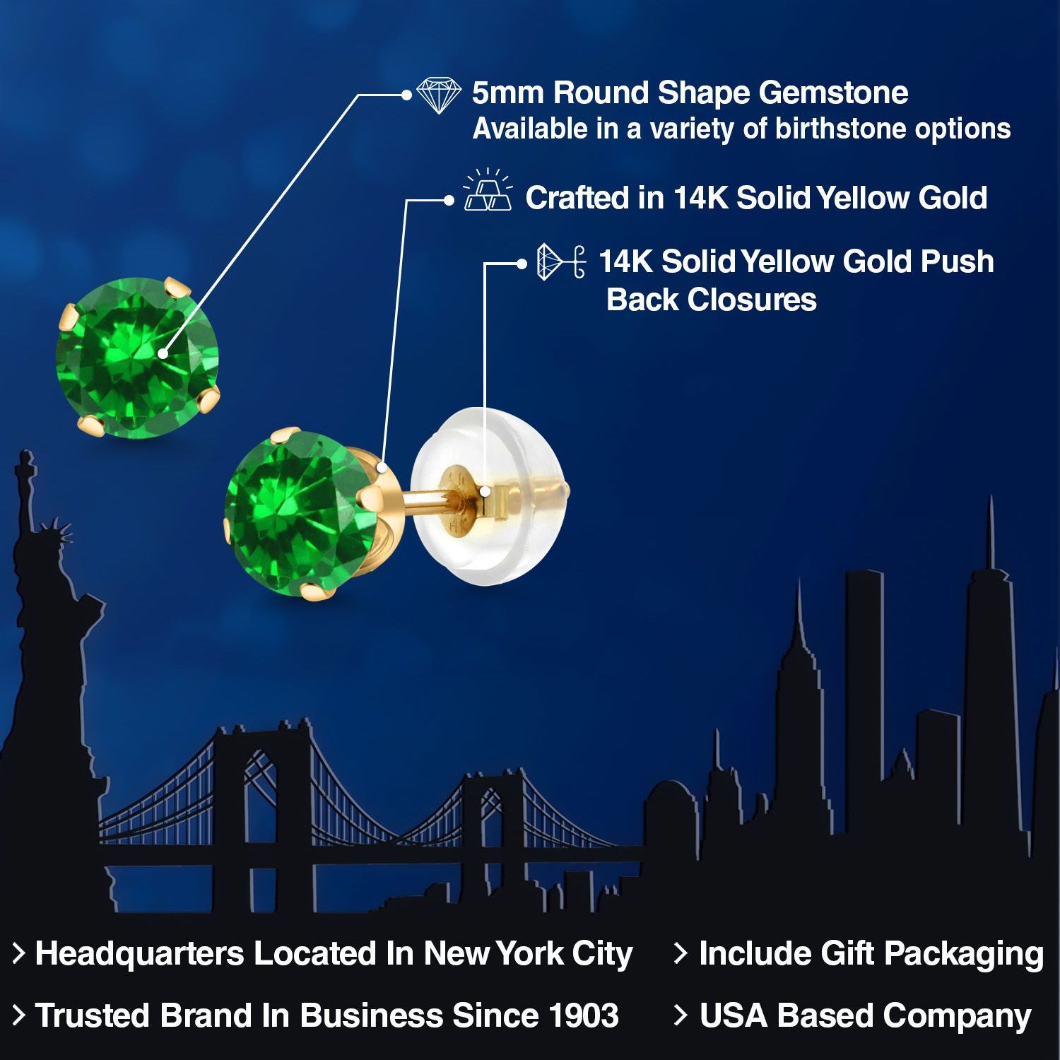 SLEEK DESIGN WITH SUPERIOR CRAFTSMANSHIP: Expertly crafted with precision, these stud earrings feature a minimalist design that highlights the gemstone's beauty. The silicone push back ensures a secure and comfortable fit, making them suitable for all-day wear. The meticulous craftsmanship ensures each earring is a masterpiece, with attention to every detail, from the smooth finish of the gold to the precise setting of the gemstone.