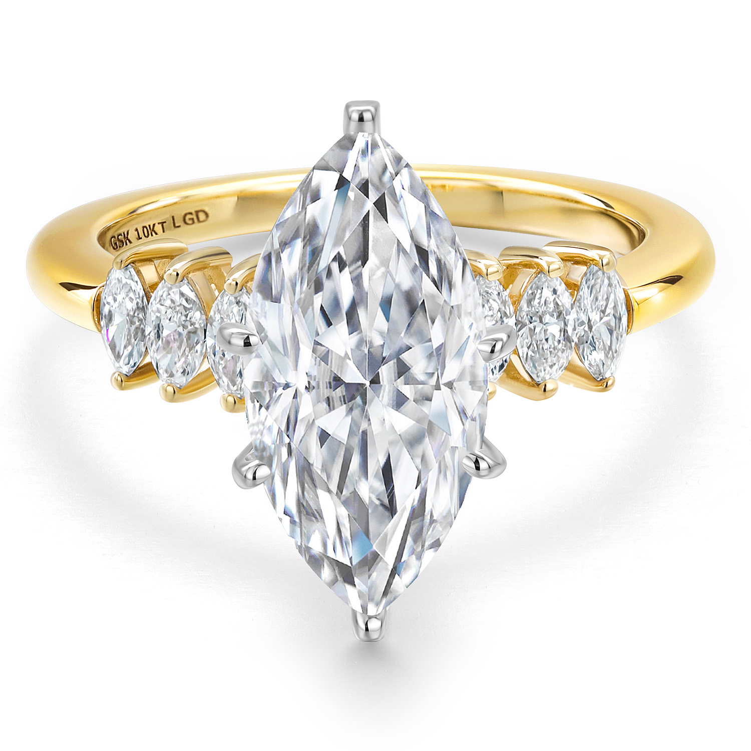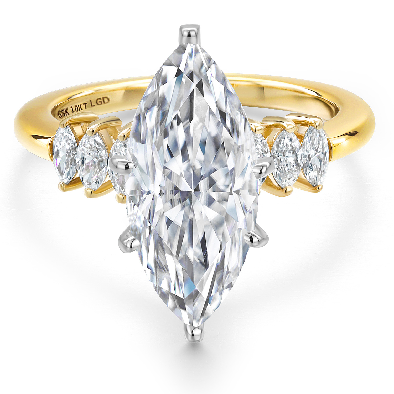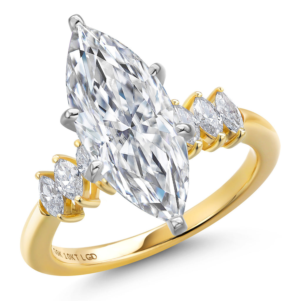 1.42 to 5.42 Cttw IGI Certified Lab Grown Diamond 2-Tone 14K White and Yellow Gold Engagement Ring For Women | Marquise Cut | E-F Color | VS1-VS2 Clarity
