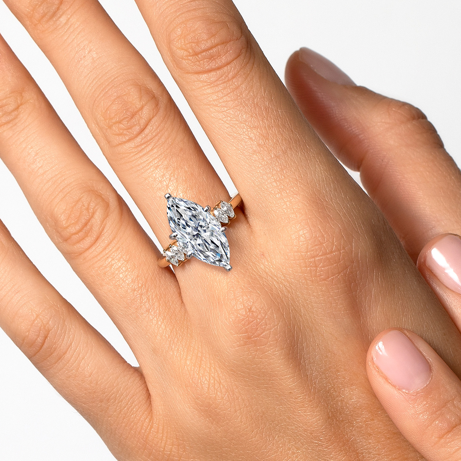 SPARKLING ACCENT STONES: Six 4x2MM marquise-cut lab-grown diamonds (0.42 cttw) adorn the band, adding radiant shimmer and enhancing the ring’s graceful symmetry. Their near-colorless brilliance and flawless polish create a captivating flow that draws the eye toward the center diamond, giving the design a refined, romantic presence from every angle.