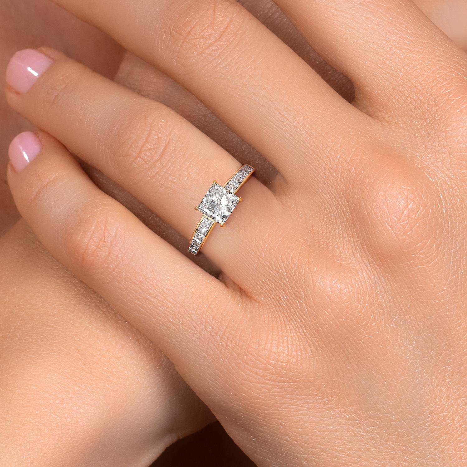 ELEGANT AND TIMELESS DESIGN: The classic princess cut center diamond, set in high-quality 14K yellow gold, creates a sophisticated and timeless look. Perfect for engagements, weddings, or anniversaries, this ring adds a touch of elegance and charm to any special occasion.