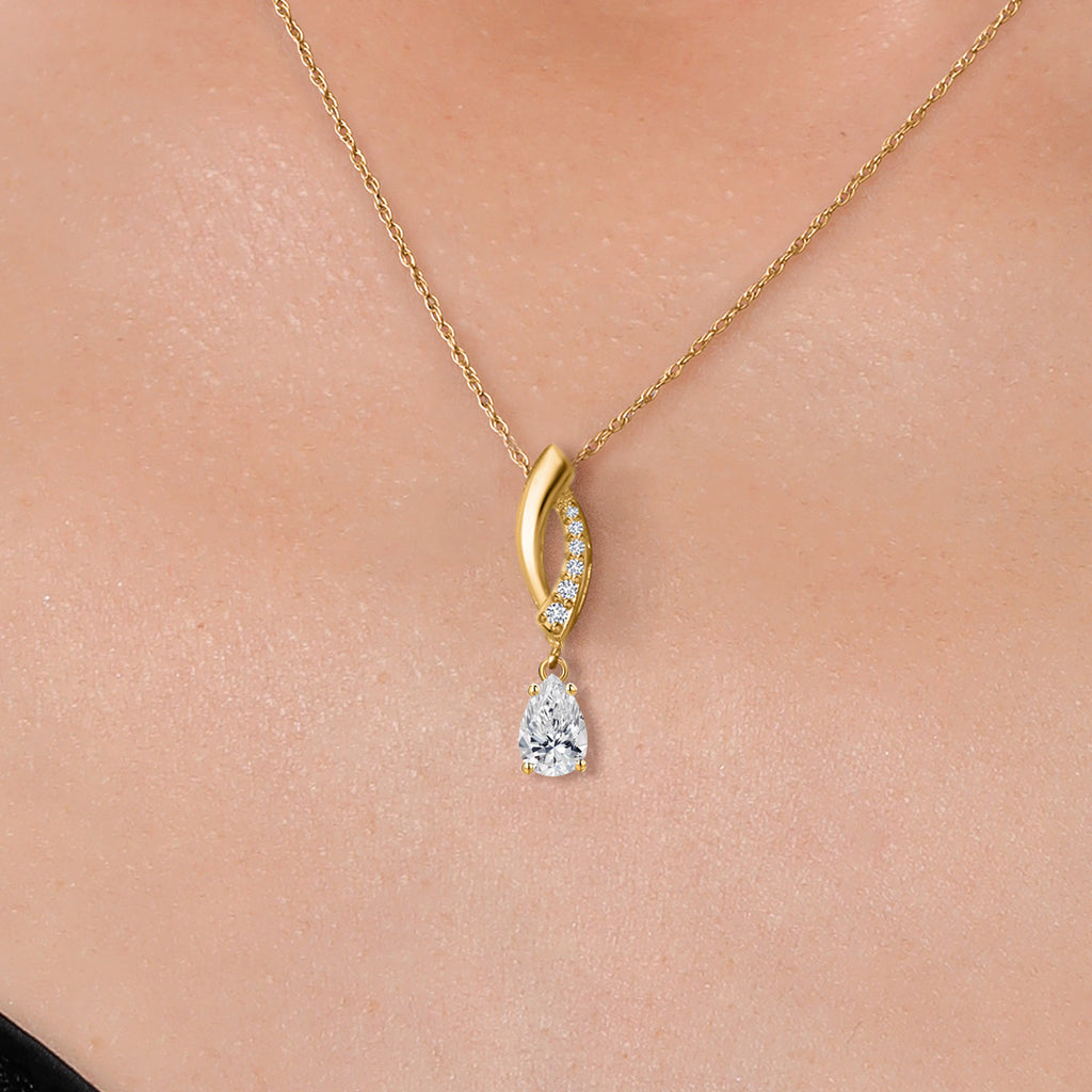 0.38 CTTW PEAR-SHAPED LAB-GROWN DIAMOND SPARKLE: This elegant pendant features a 6x4MM pear-shaped lab-grown diamond totaling 0.38 carats. With F-G color and VS2-SI1 clarity, the April birthstone dazzles with a brilliant, tear-shaped silhouette that symbolizes love and grace—offering a radiant and ethically sourced touch of everyday luxury.