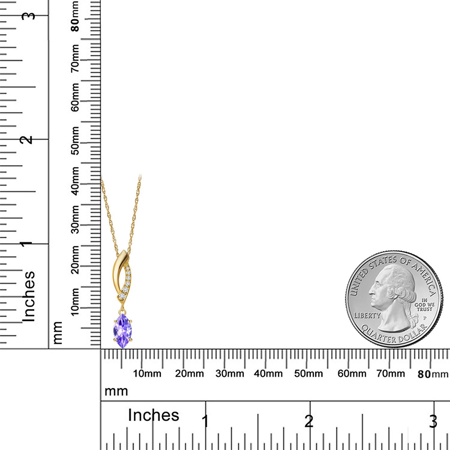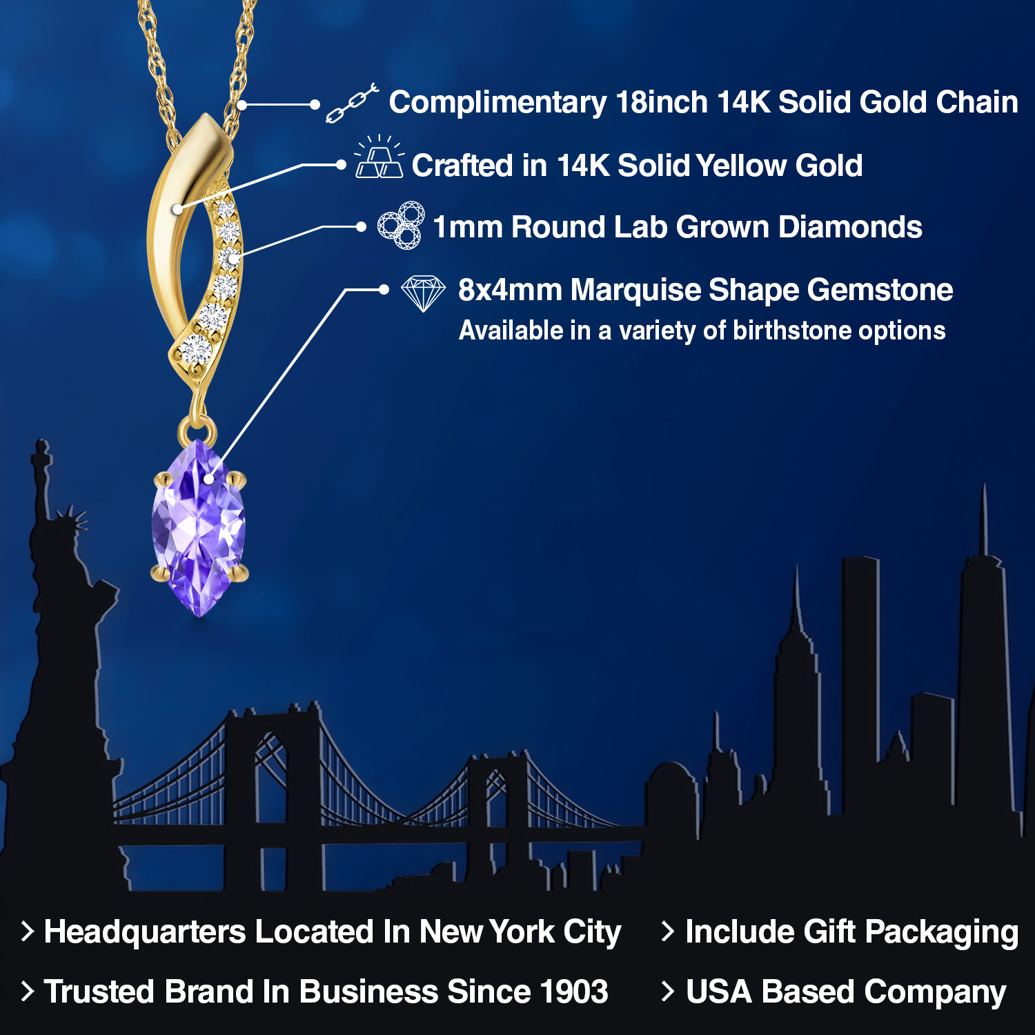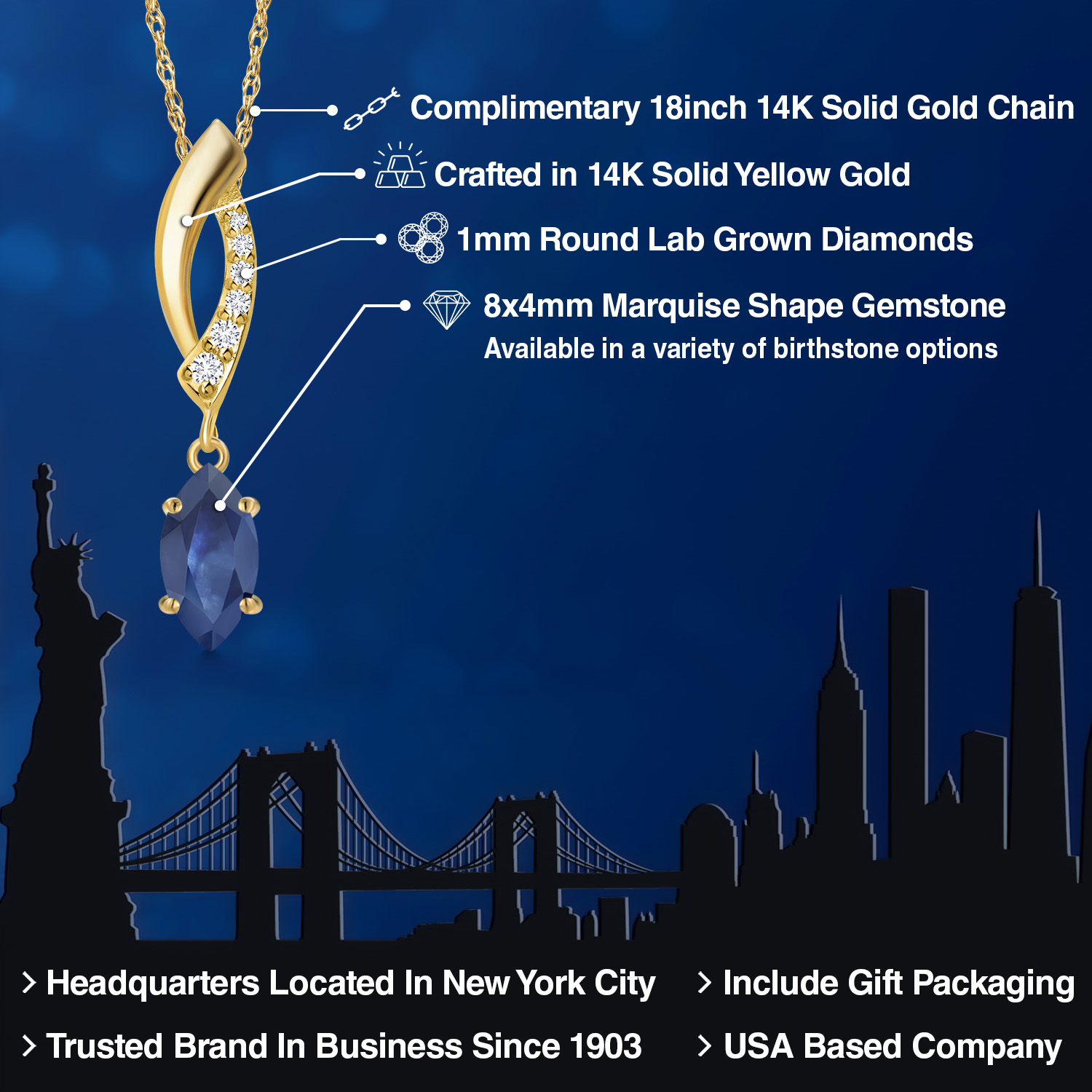 14K Yellow Gold Gemstone Birthstone and Lab Grown Diamond Pendant Necklace for Women | Marquise Cut 8X4MM and Round 1MM | Fine Jewelry Gifts for Her Mom Women Wife | With 18 Inch 14K Gold Chain