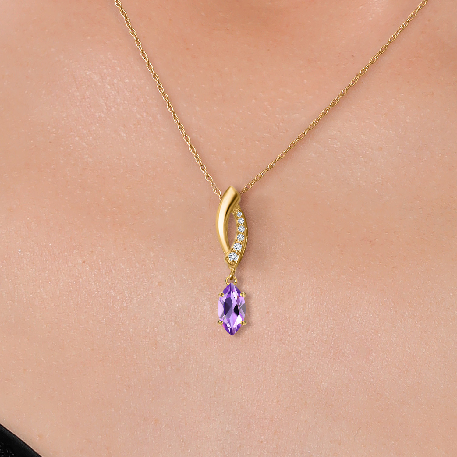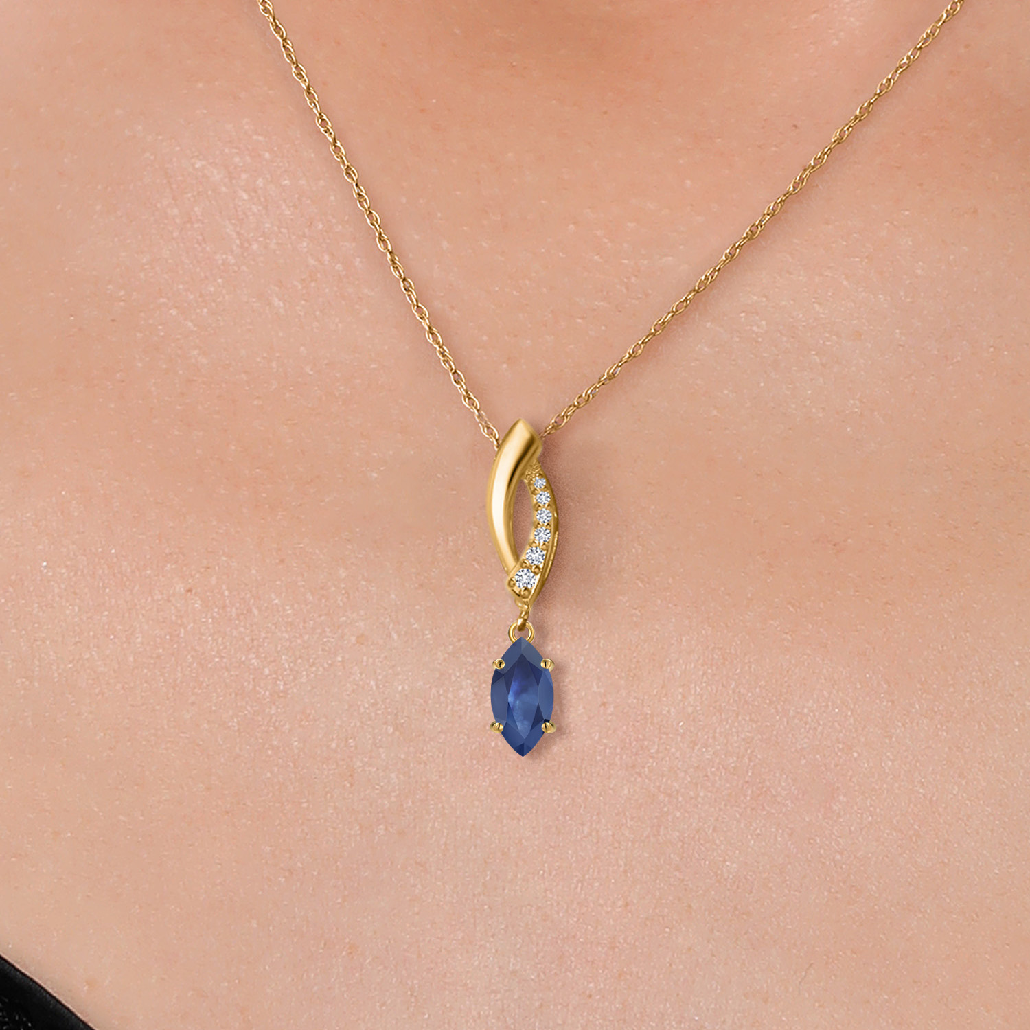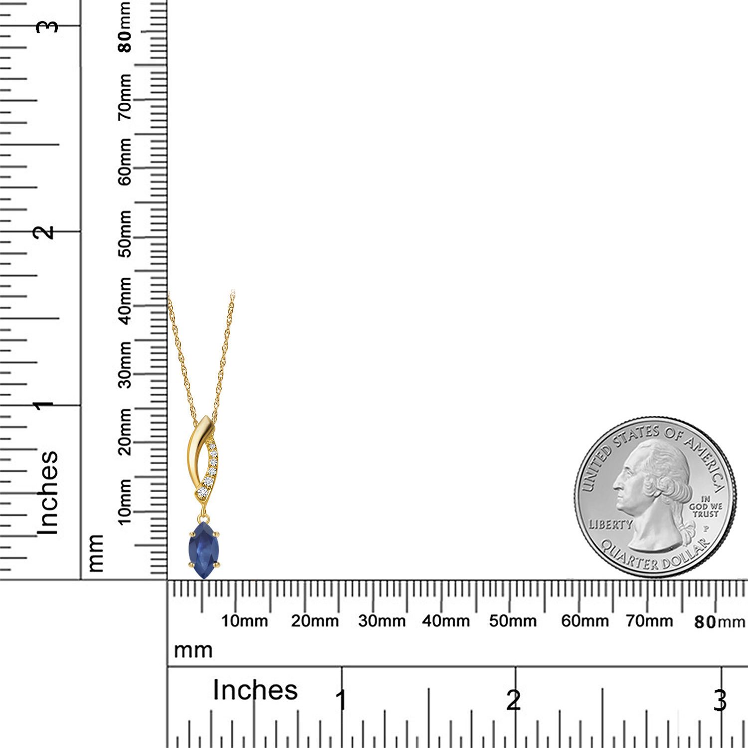 14K Yellow Gold Gemstone Birthstone and Lab Grown Diamond Pendant Necklace for Women | Marquise Cut 8X4MM and Round 1MM | Fine Jewelry Gifts for Her Mom Women Wife | With 18 Inch 14K Gold Chain