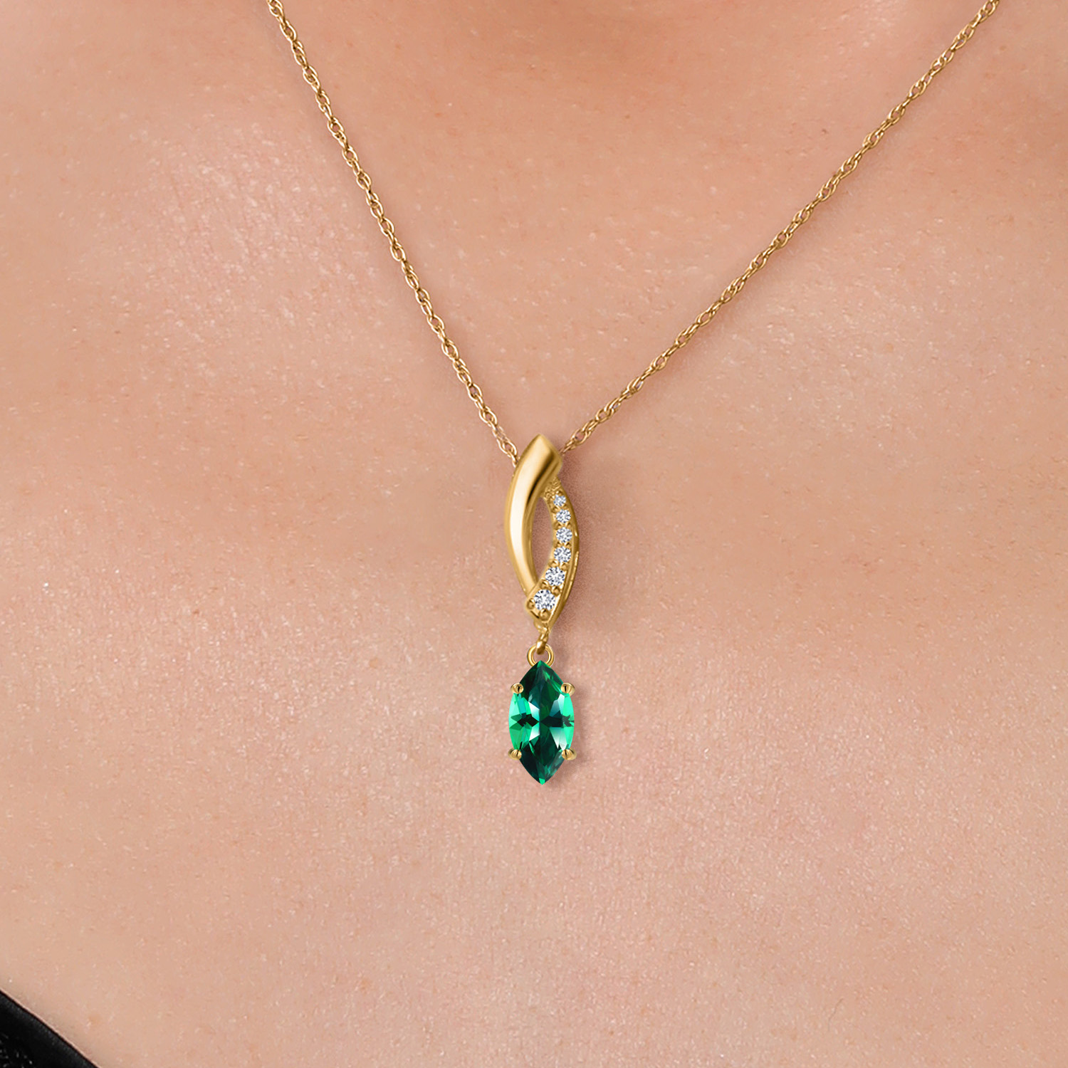 LAB GROWN DIAMOND DETAILS: Adorning the sides of the marquise gemstone are round, 1MM lab grown diamonds. These diamonds are ethically sourced and boast a clarity and brilliance akin to their naturally occurring counterparts. The combination of gemstone and diamonds in this pendant captures a perfect balance of elegance and sparkle.