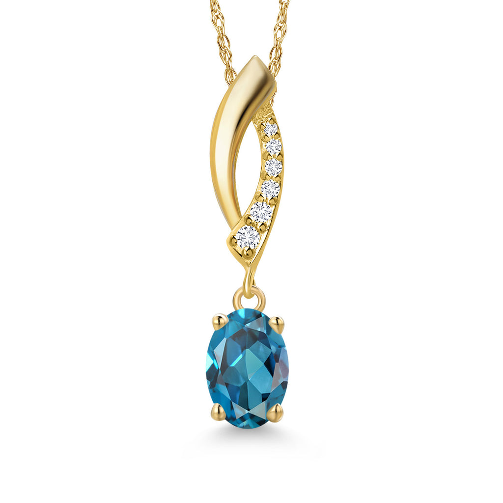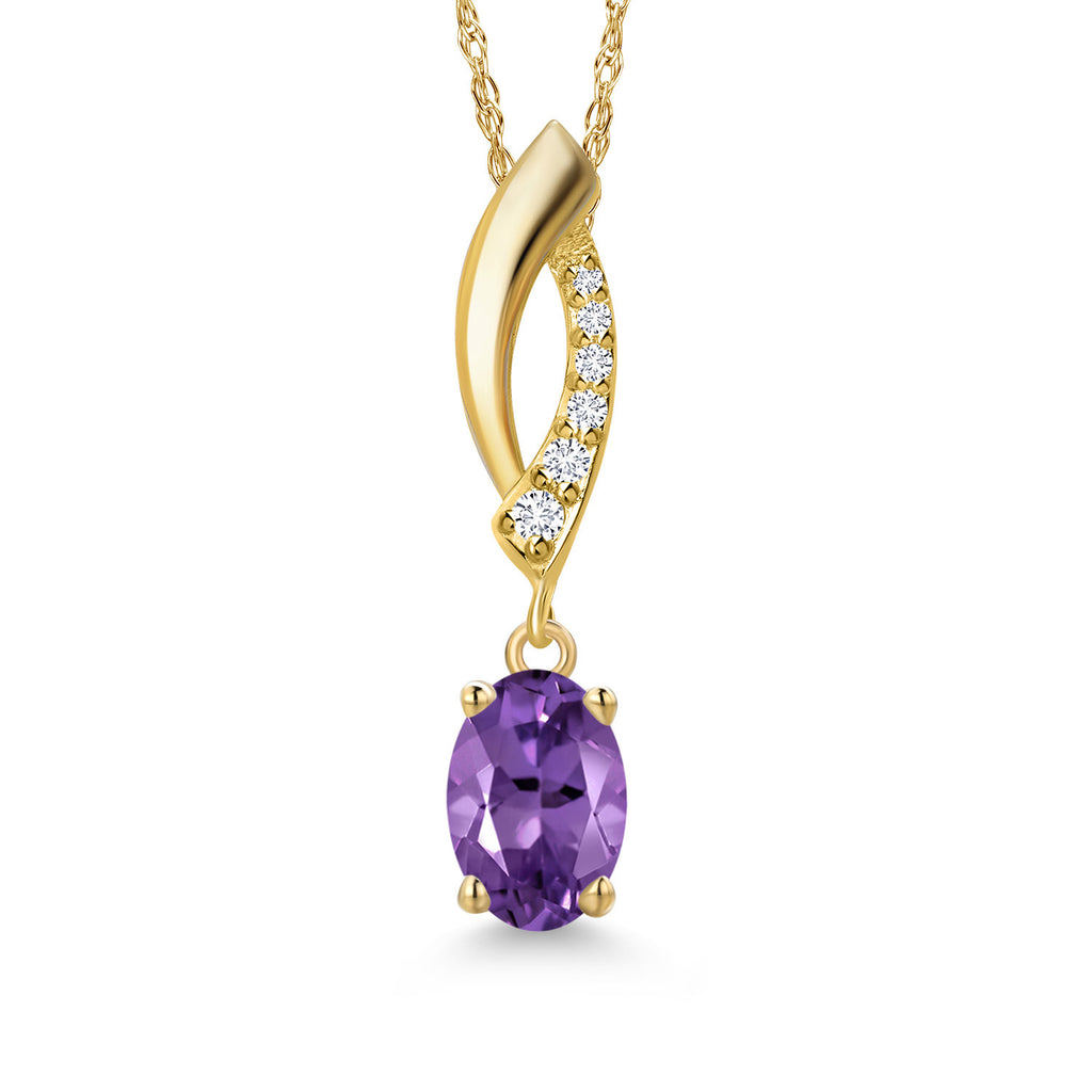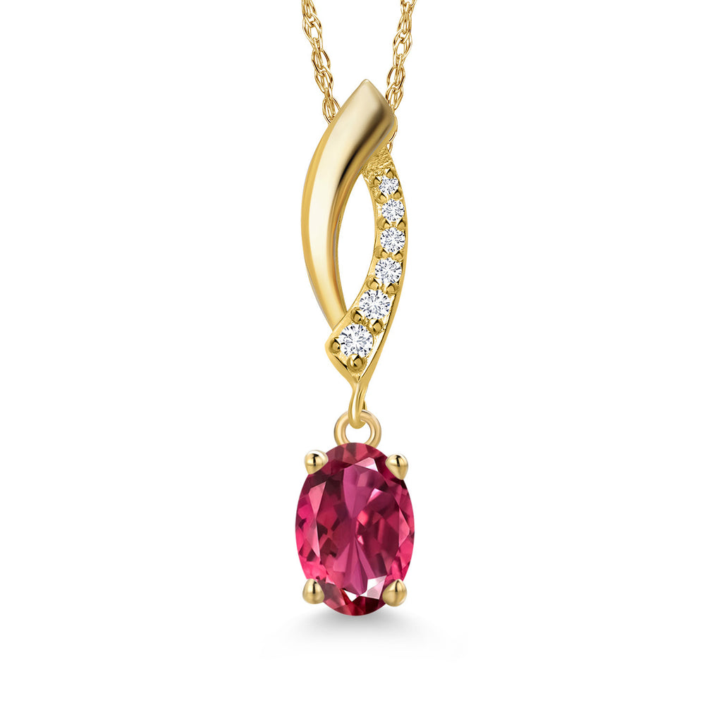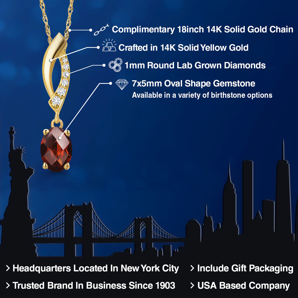 14K Yellow Gold Gemstone Birthstone and Lab Grown Diamond Pendant Necklace for Women | Oval Cut 7X5MM and Round 1MM | Fine Jewelry Gifts for Her Mom Women Wife | With 18 Inch 14K Gold Chain
