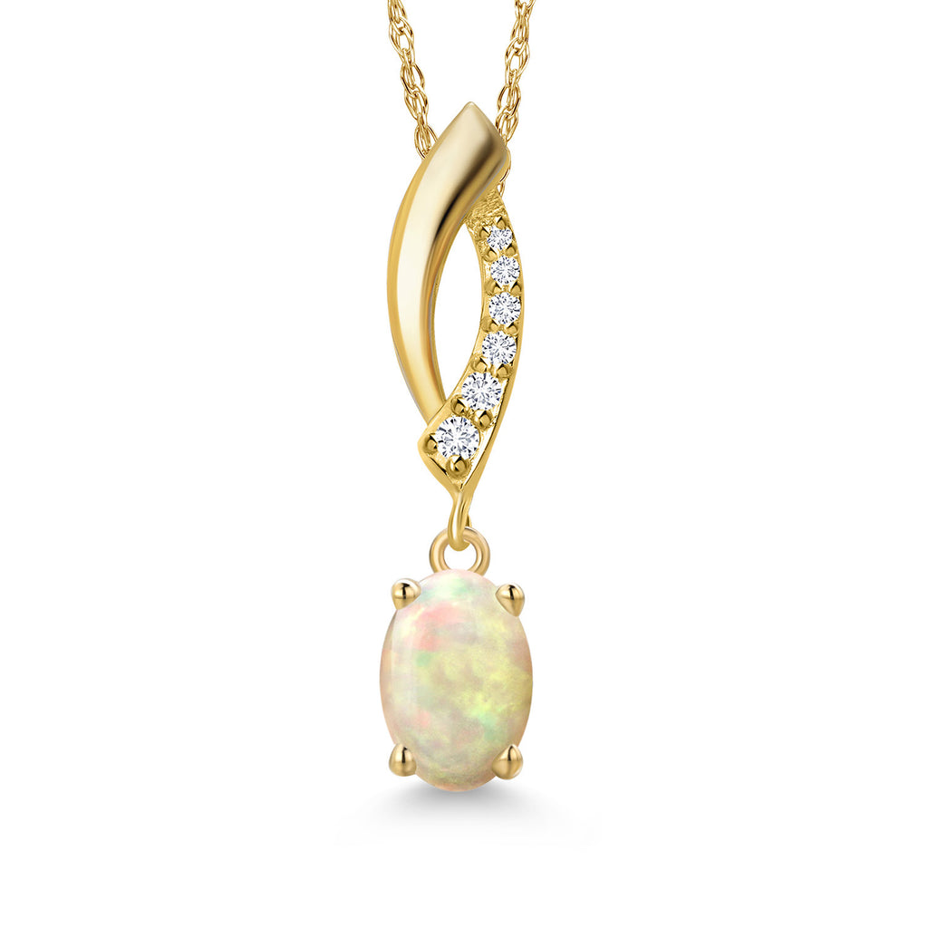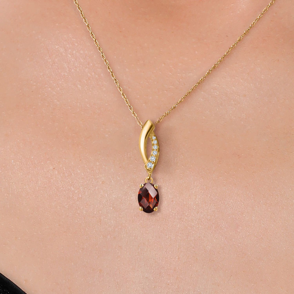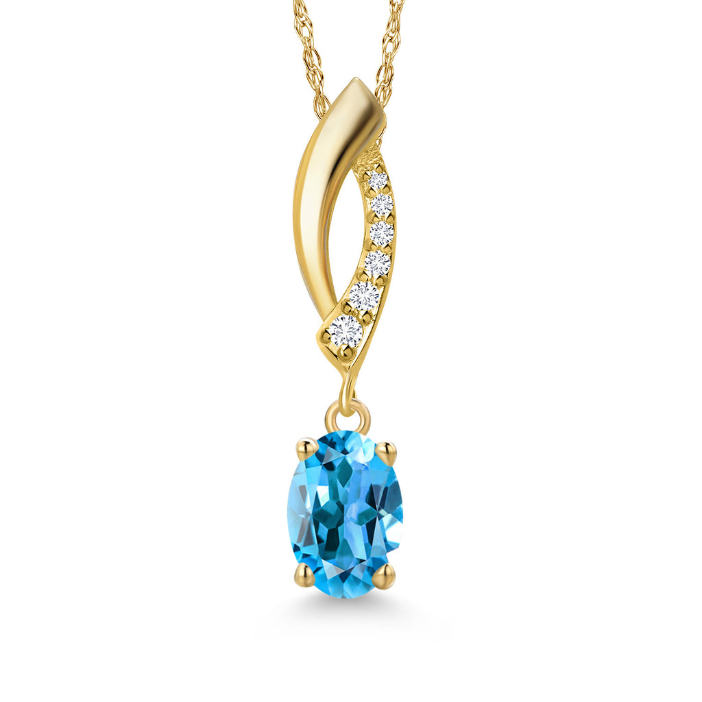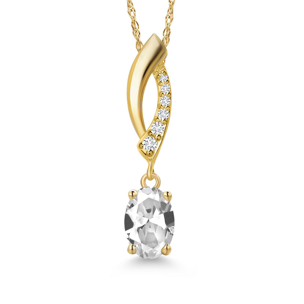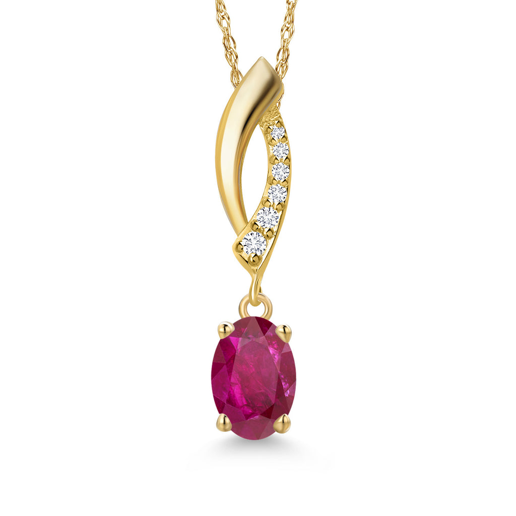 14K Yellow Gold Gemstone Birthstone and Lab Grown Diamond Pendant Necklace for Women | Oval Cut 7X5MM and Round 1MM | Fine Jewelry Gifts for Her Mom Women Wife | With 18 Inch 14K Gold Chain