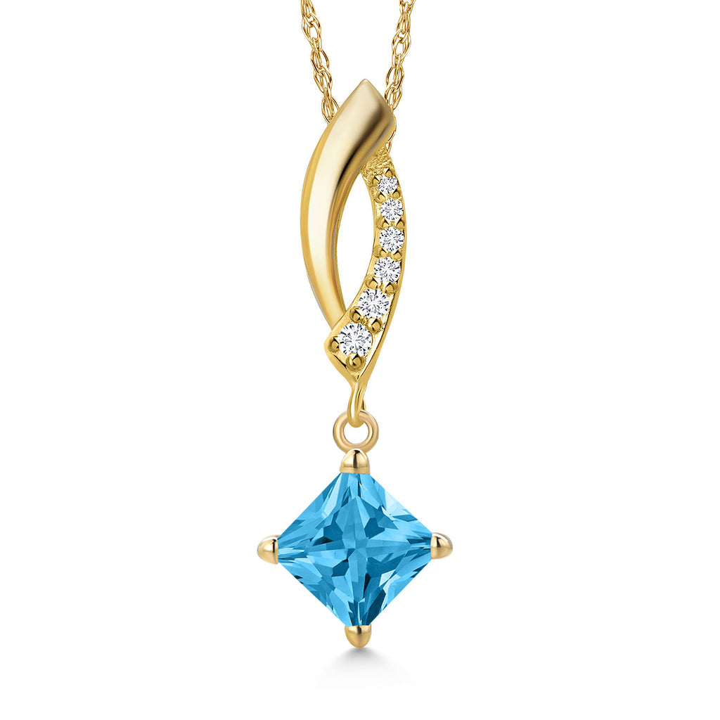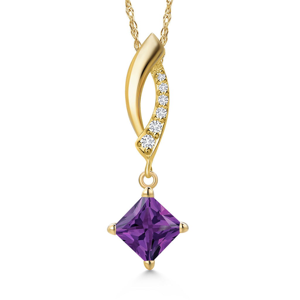 Gemstone Birthstone and Lab Grown Diamond Pendant Necklace for Women in 14K Yellow Gold | Princess Cut 5MM | Round 1MM | Fine Jewelry Gifts for Her Mom Women Wife | With 18 Inch 14K Gold Chain