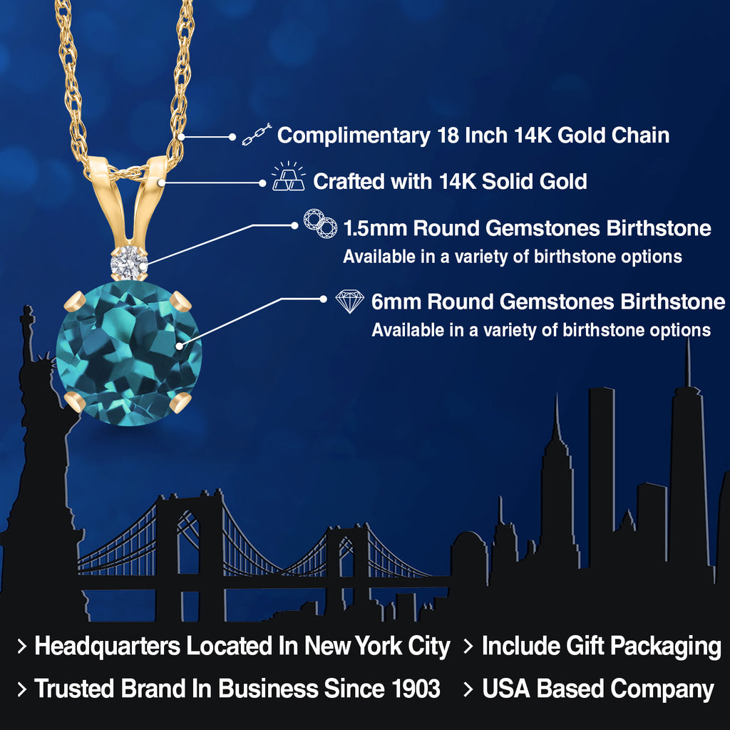 14K Yellow Gold London Blue Topaz and Lab Grown Diamond Pendant Necklace for Women | 1.12 Cttw | Gemstone November Birthstone | Round 6MM | With 18 Inch Chain