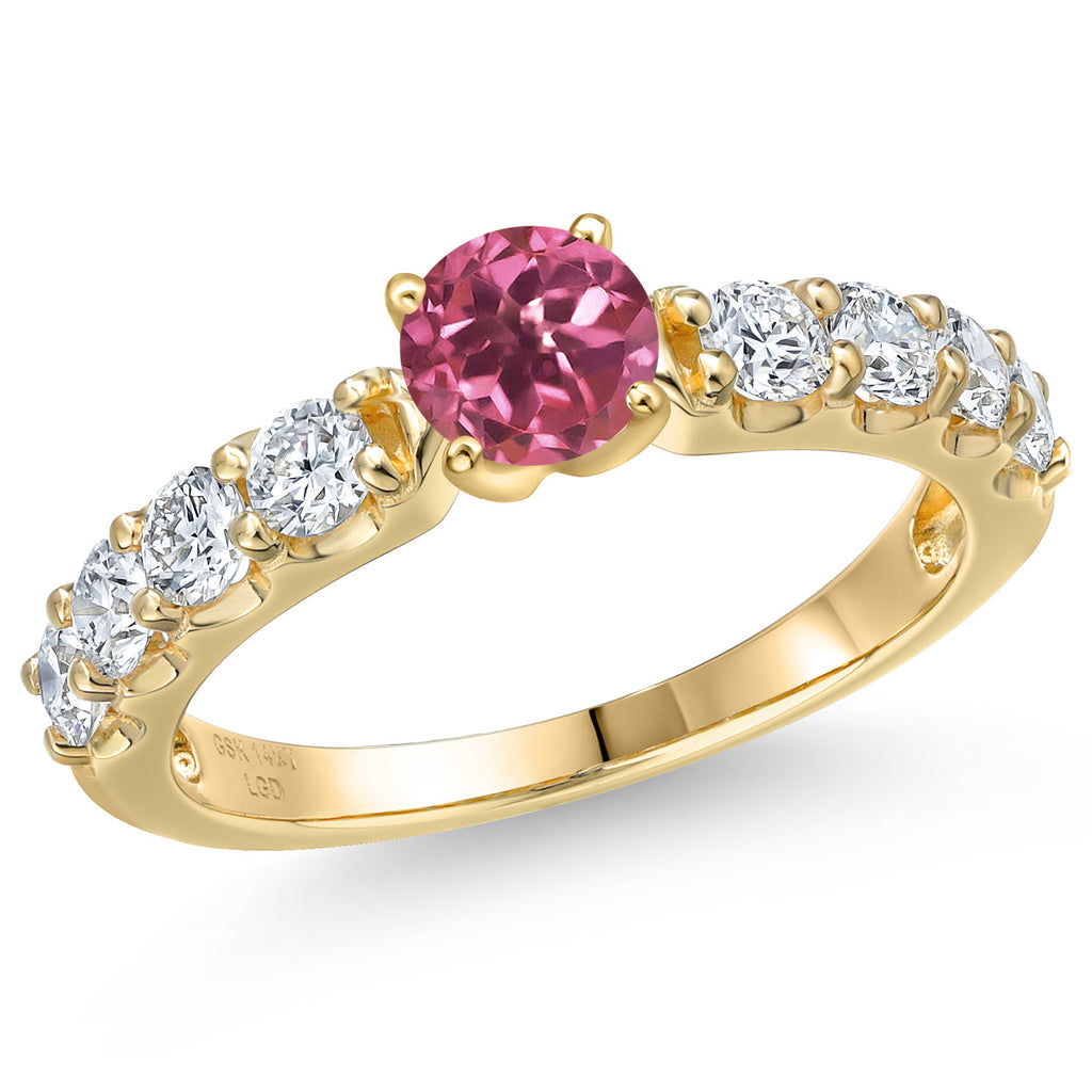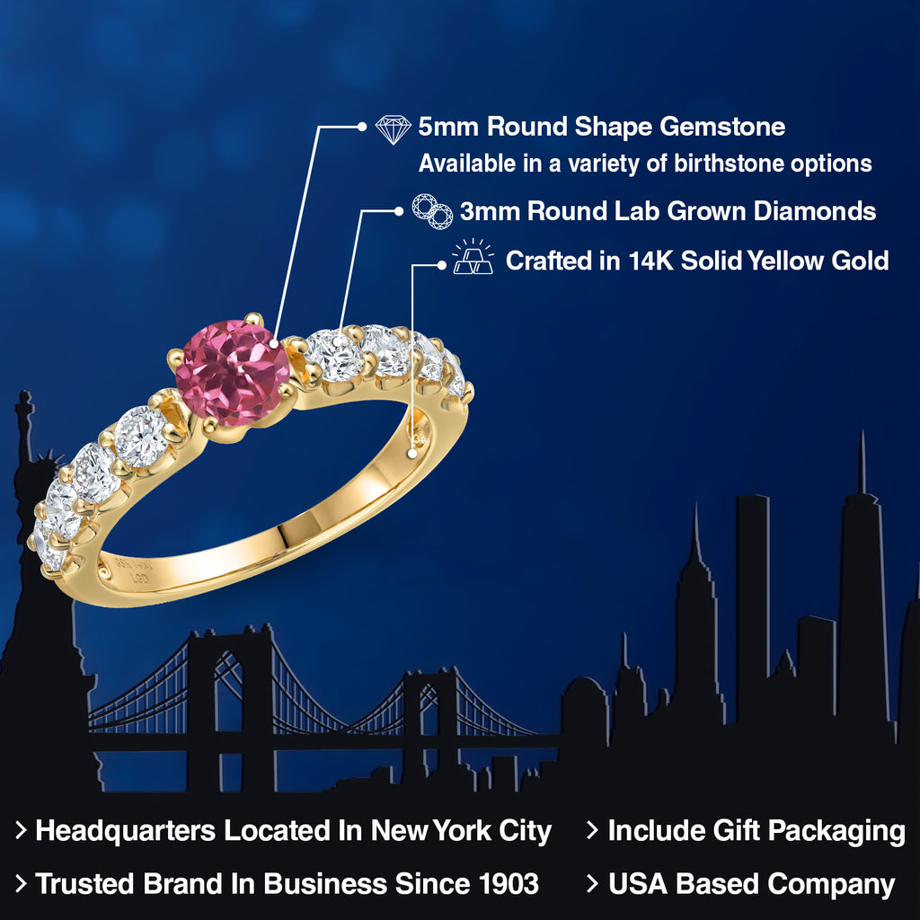 MEASUREMENTS: 5x5mm Round Heat-Treated Pink Tourmaline, 3x3mm Round E - F Lab Grown Diamond. Total Carat Weight is 1.4 cttw