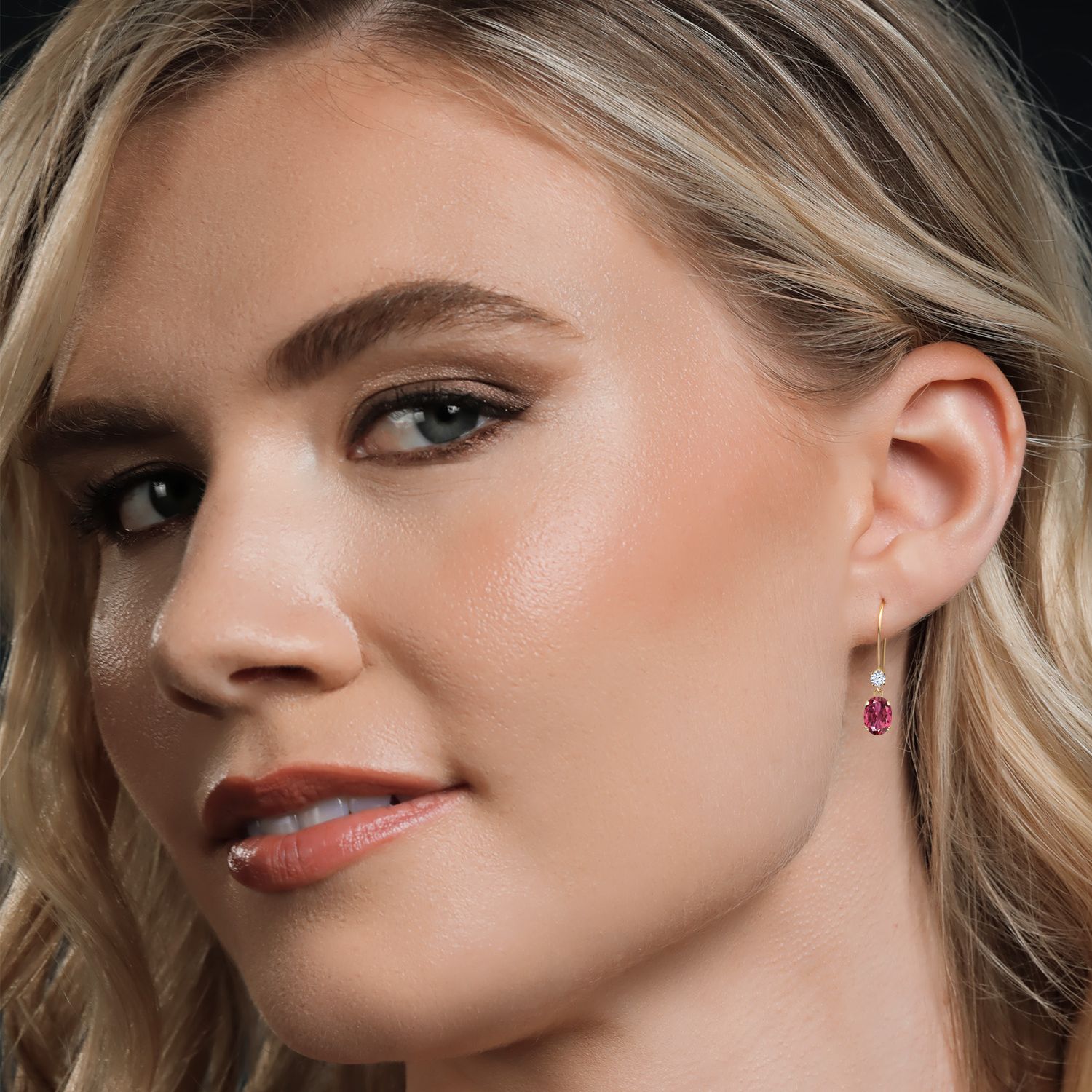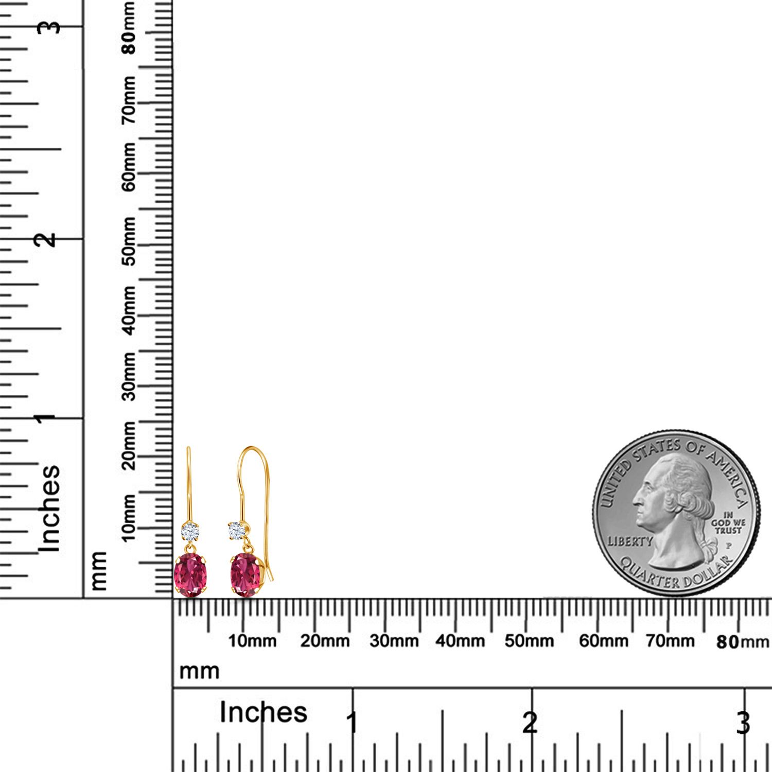 Gem Stone King Gemstone Birthstone French Wire Dangle Earrings For Women | 14K Yellow Gold | Oval 6X4MM and Round 2.5MM Accents | Fine Jewelry Gifts for Women | Pink Tourmaline-October