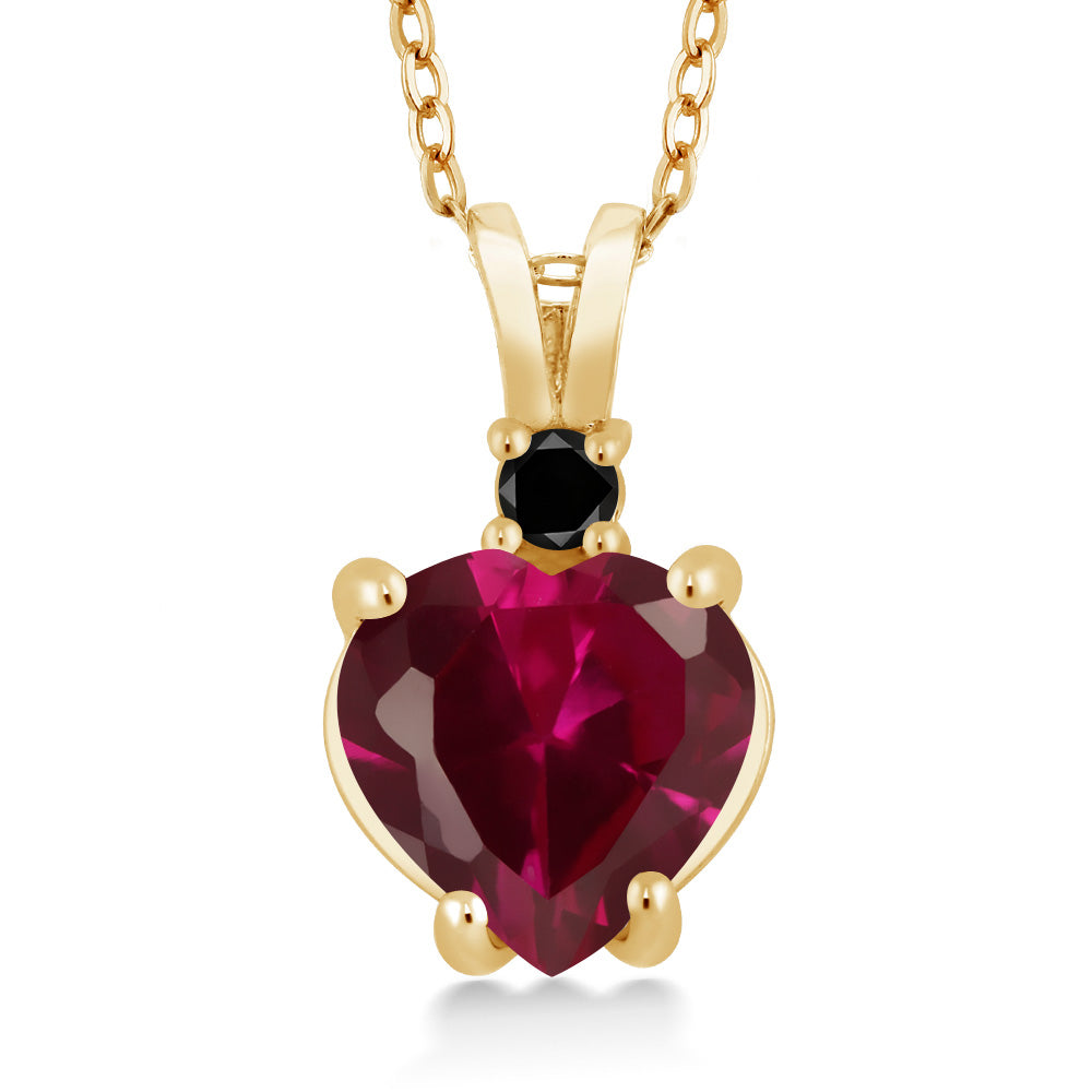 SINGLE STRIKING BLACK DIAMOND ACCENT: This exquisite pendant necklace features a captivating heart-shaped Red Created Ruby at its center, beautifully complemented by a single, striking Black Diamond accent. The contrast of the deep red Ruby and the intense sparkle of the Black Diamond creates a dramatic and elegant focal point in the design.