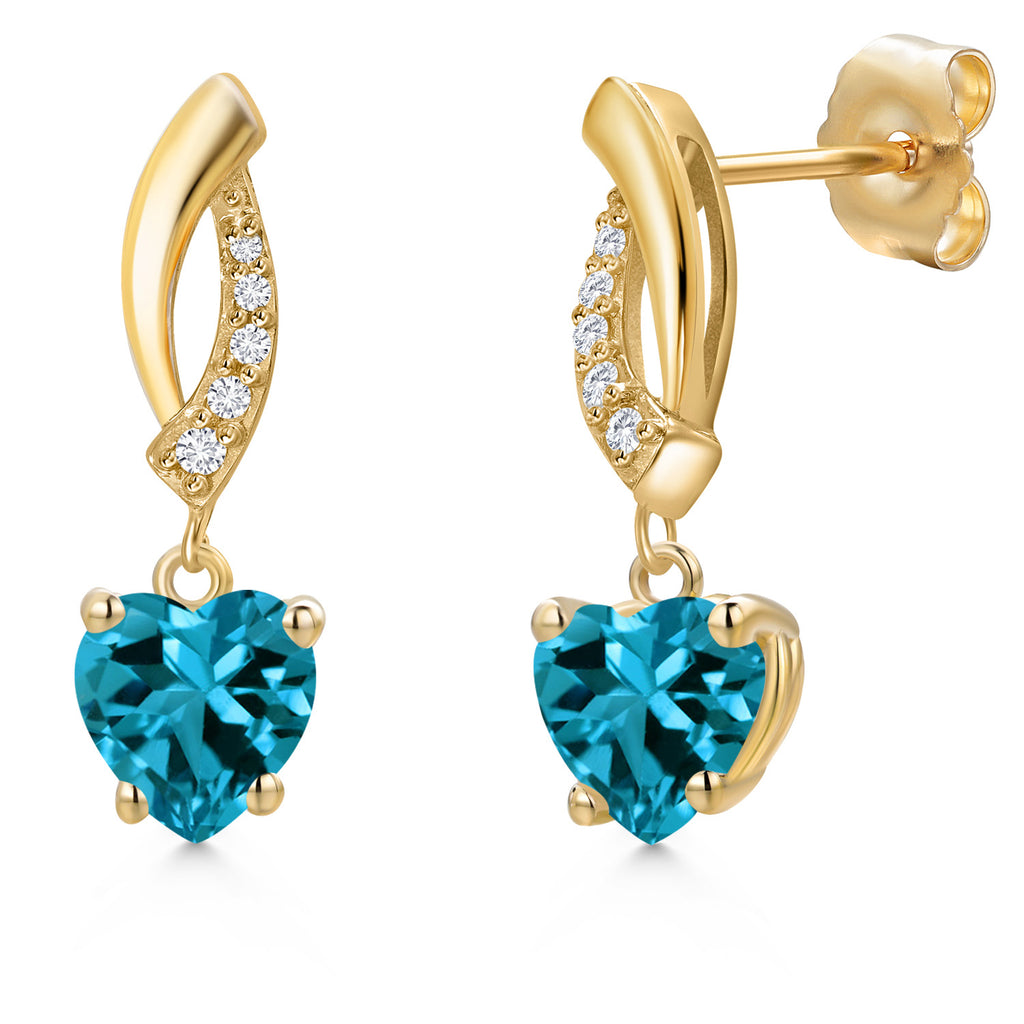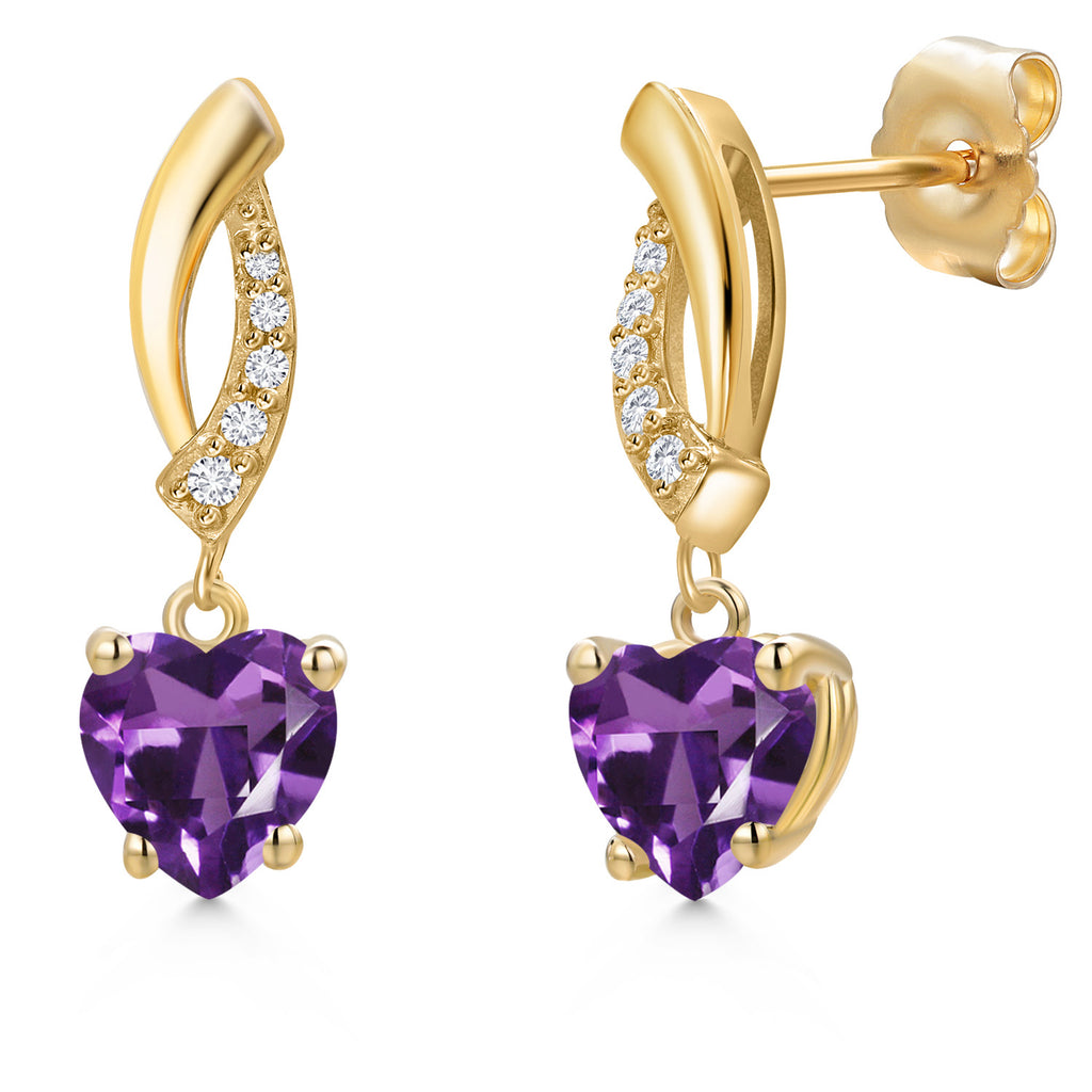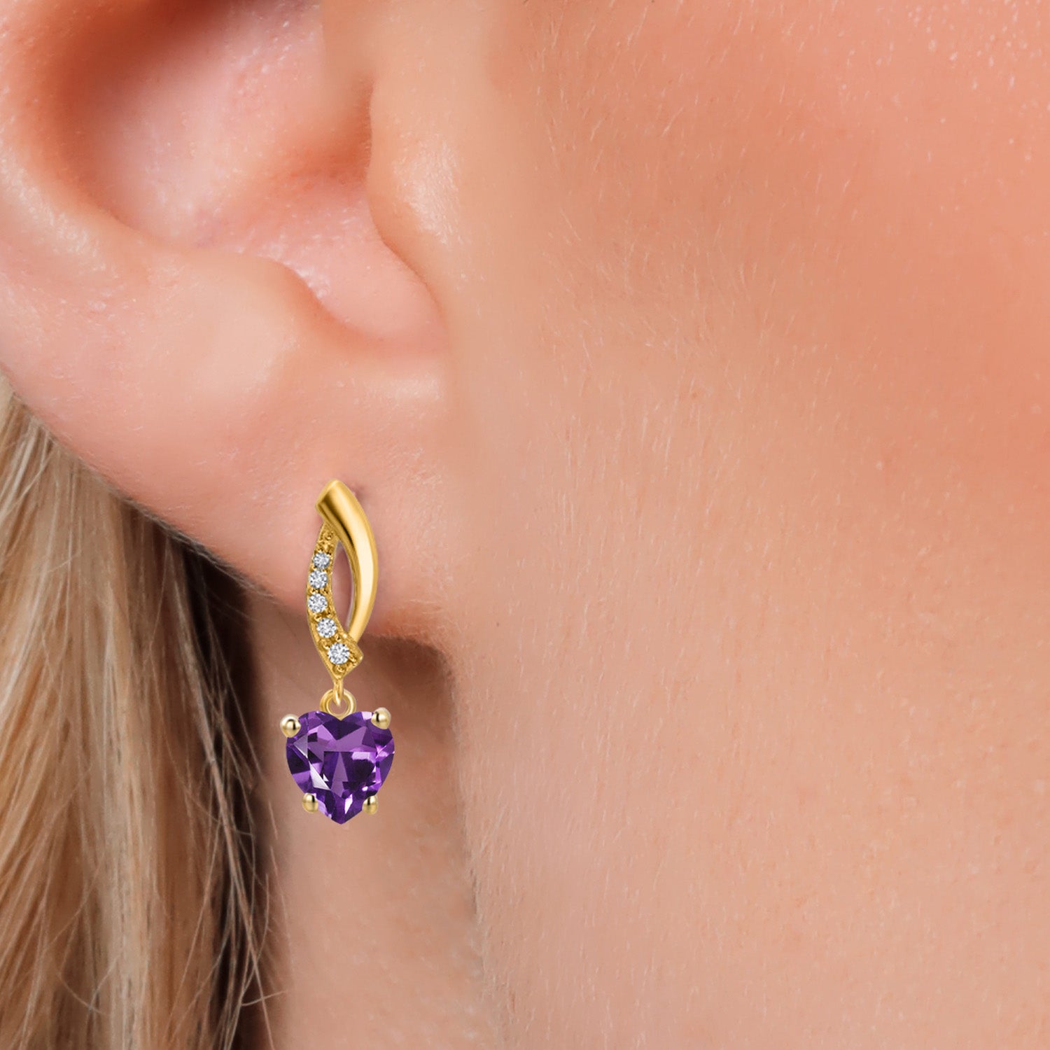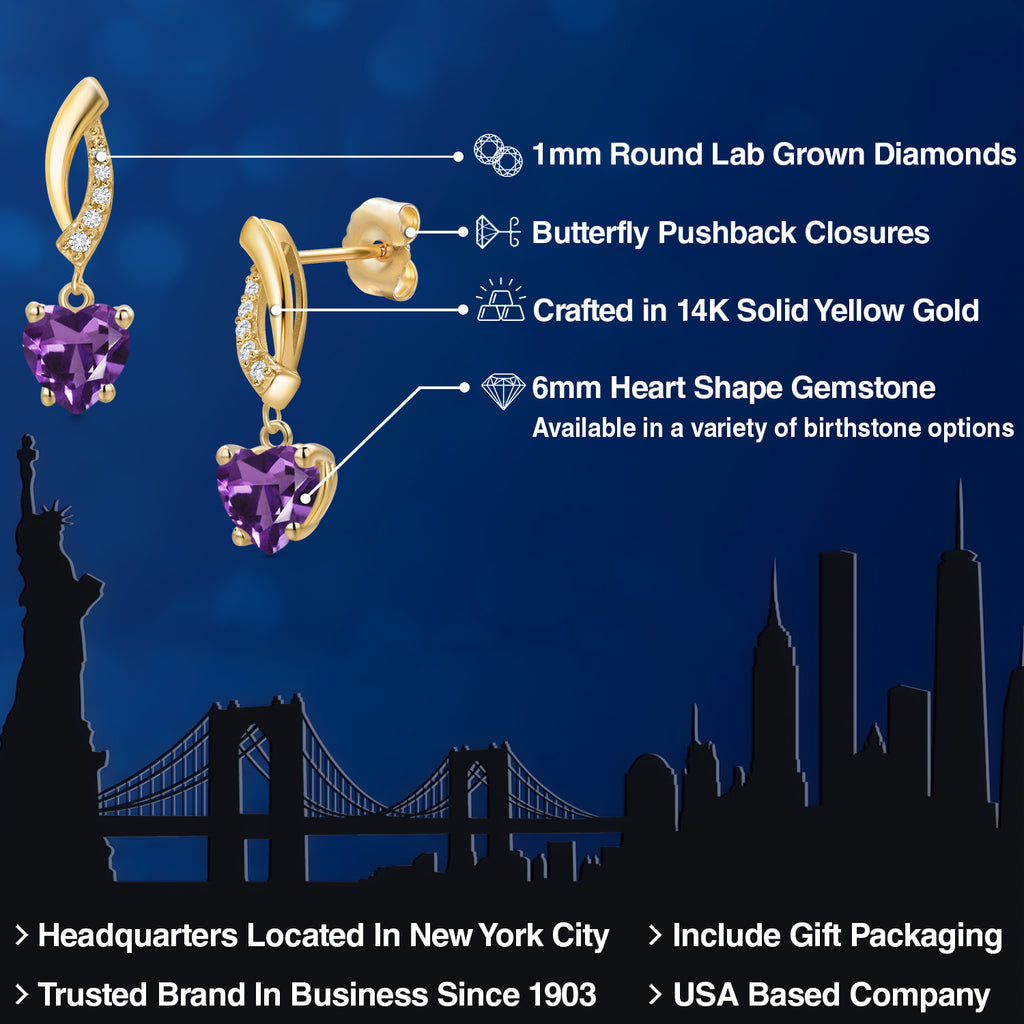 14K Yellow Gold Heart Shape Gemstone Birthstone and Lab Grown Dangle Diamond Earrings For Women | 6MM Heart Shape Earrings | Fine Jewelry Gifts for Her Mom Women Wife