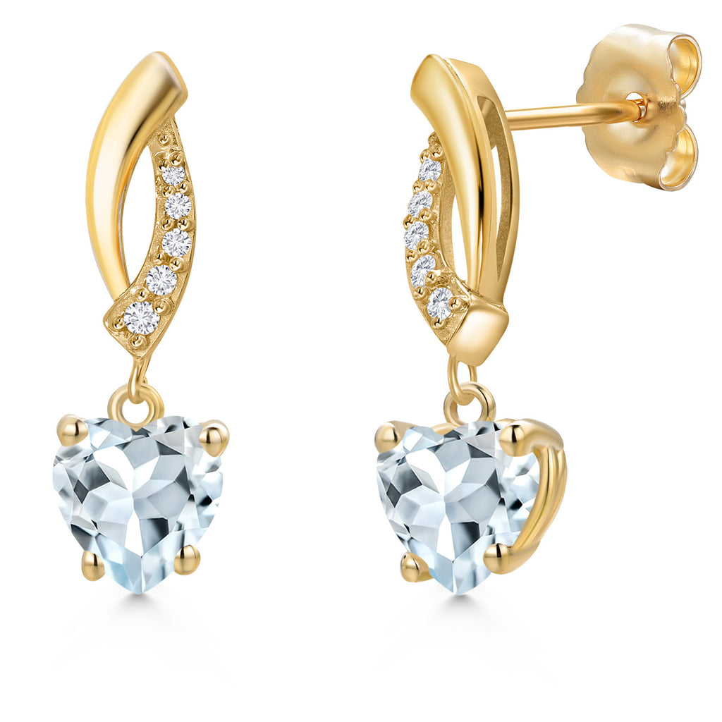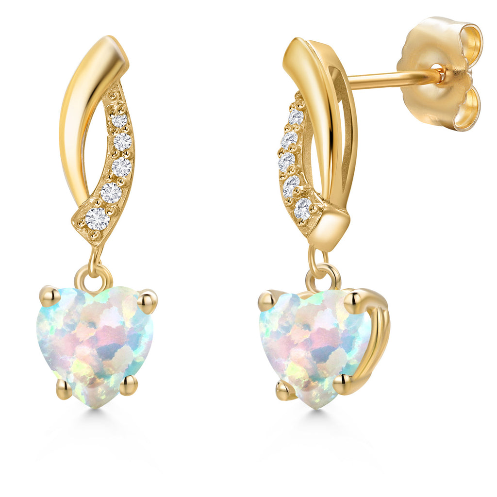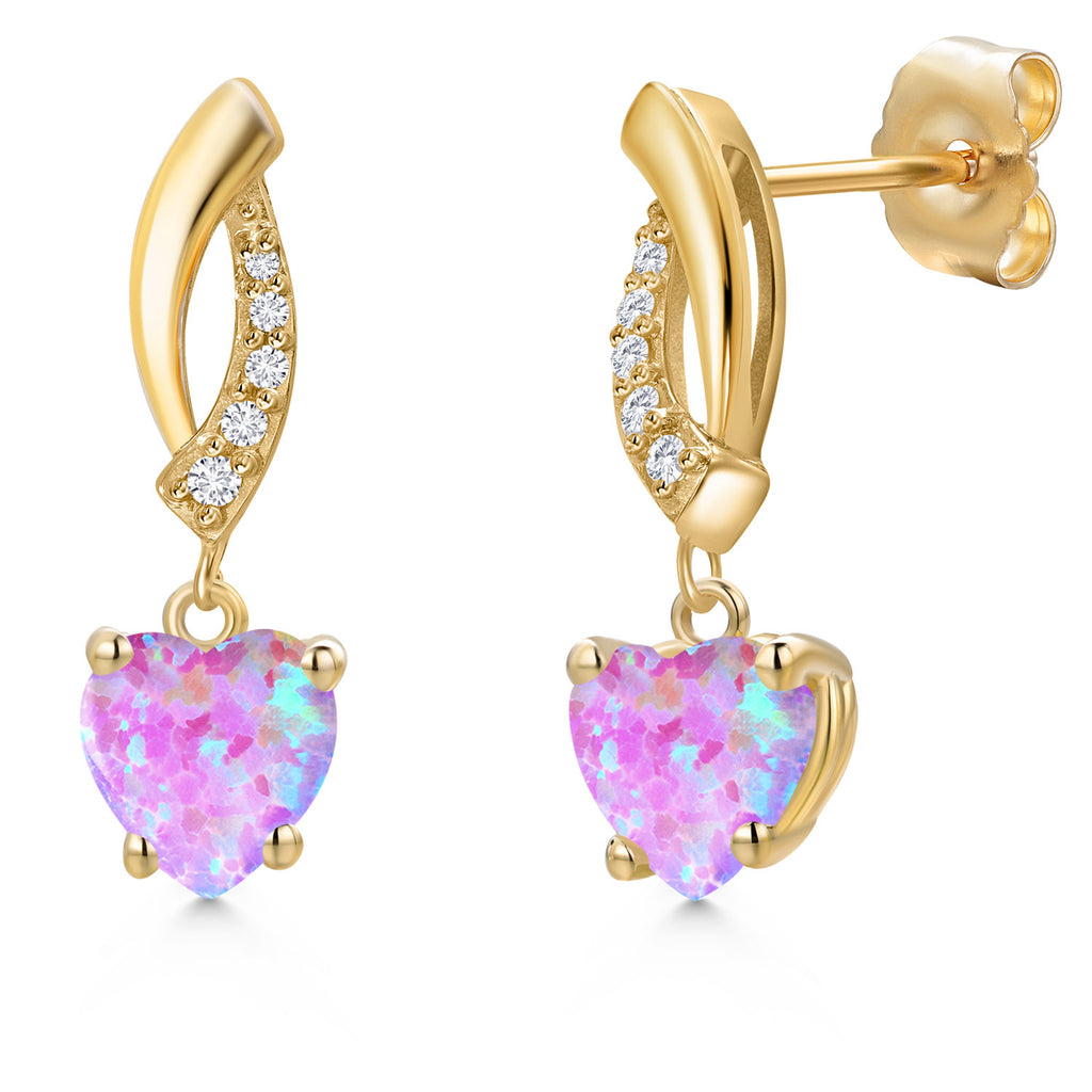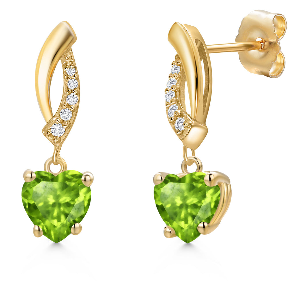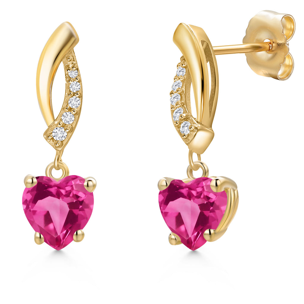 14K Yellow Gold Heart Shape Gemstone Birthstone and Lab Grown Dangle Diamond Earrings For Women | 6MM Heart Shape Earrings | Fine Jewelry Gifts for Her Mom Women Wife