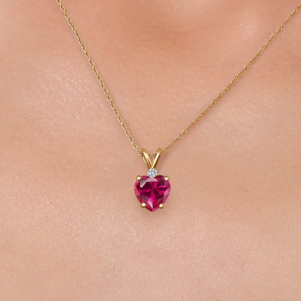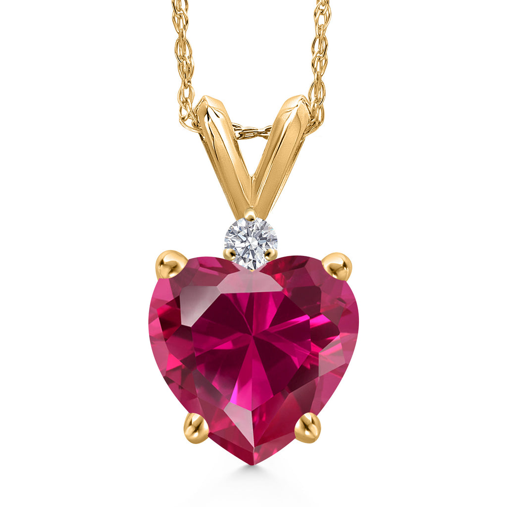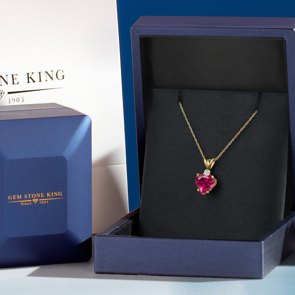 14K Yellow Gold Red Created Ruby and Lab Grown Diamond Pendant Necklace for Women | 1.74 Cttw | Gemstone July Birthstone | Heart Shape 8MM | With 18 Inch Chain