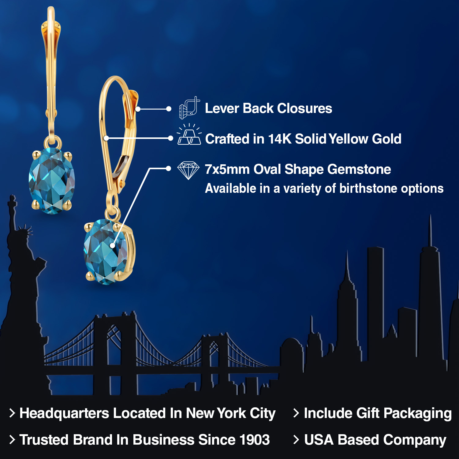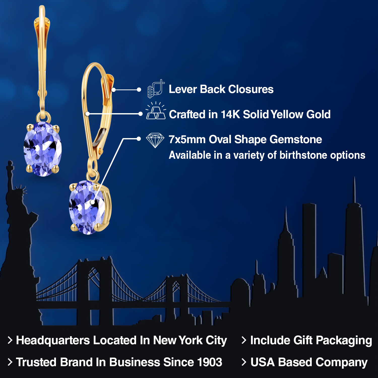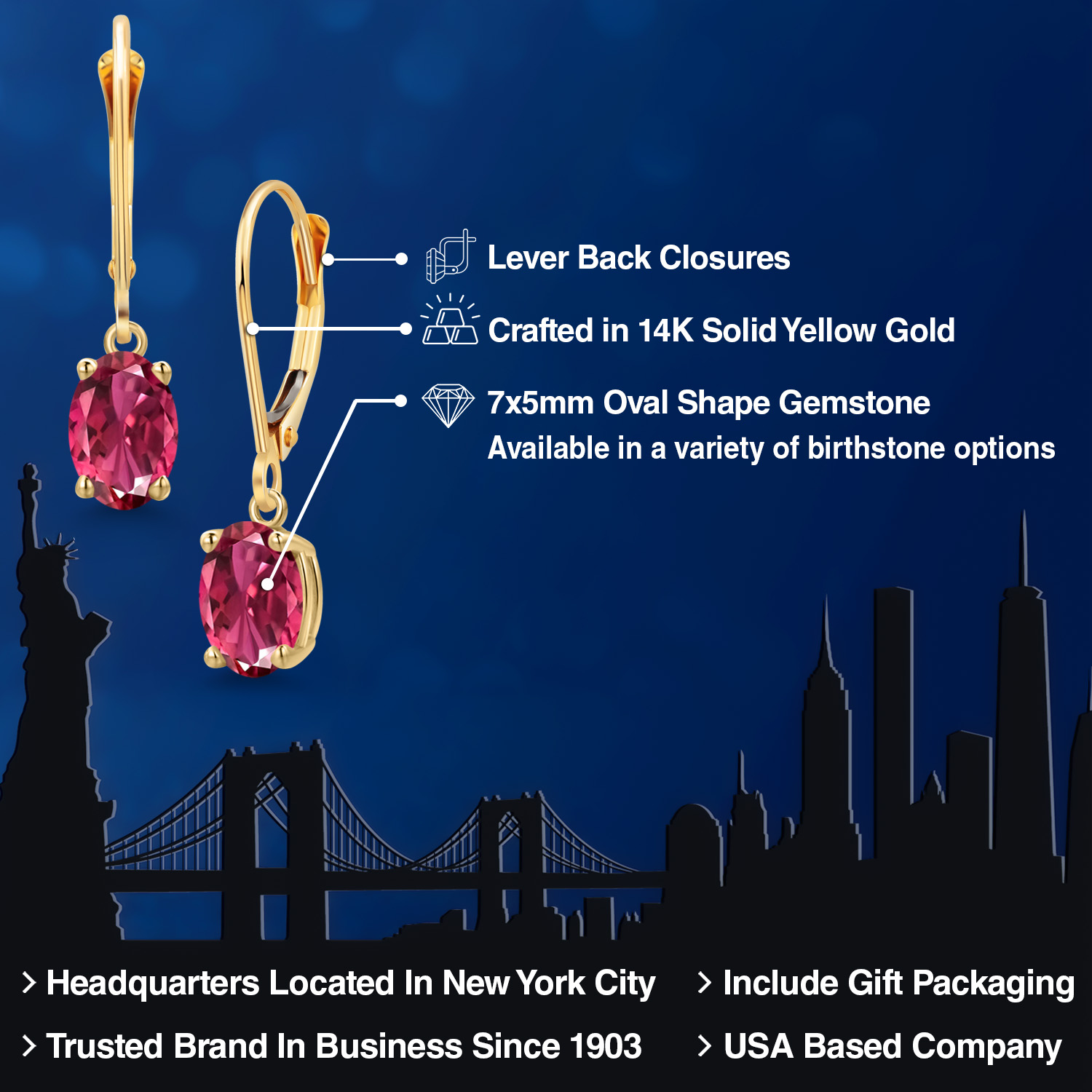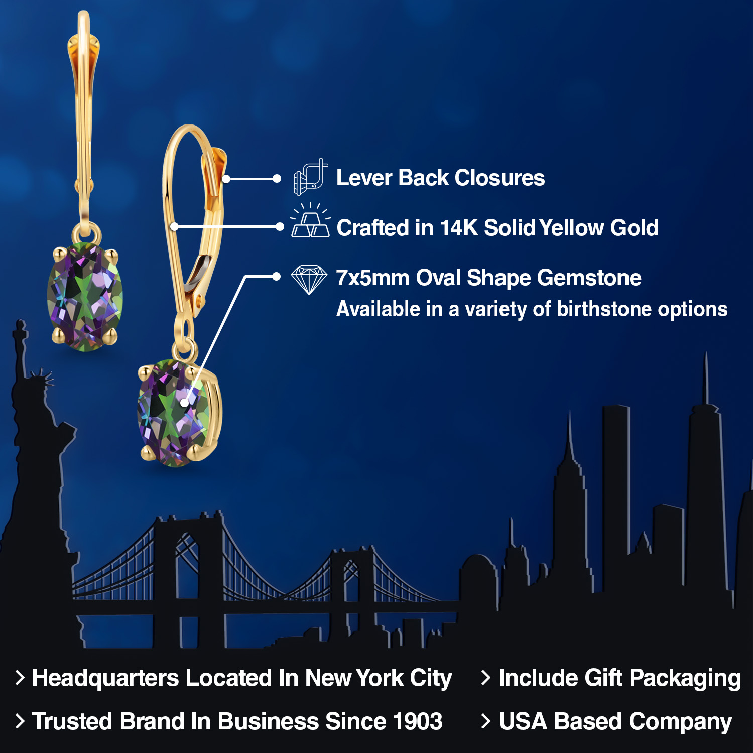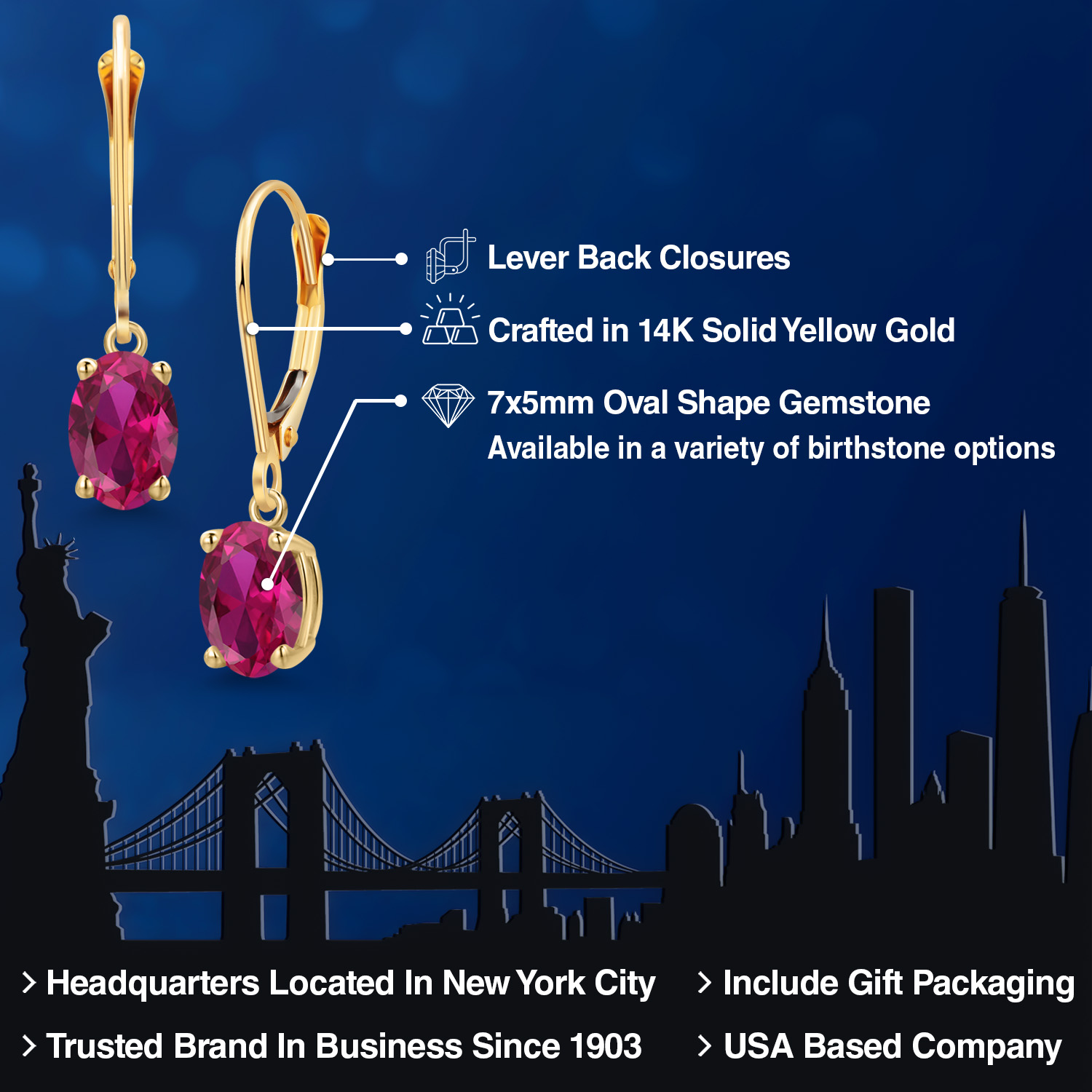 14K YELLOW GOLD RADIANCE: Crafted in luxurious 14K yellow gold, these earrings offer a warm, rich hue that beautifully complements the vibrant gemstones. The high-quality gold not only enhances the gemstone's brilliance but also promises exceptional durability and longevity. The hypoallergenic nature of the gold ensures a comfortable wear for those with sensitive skin, making these earrings a perfect choice for everyday elegance, as well as special occasions.