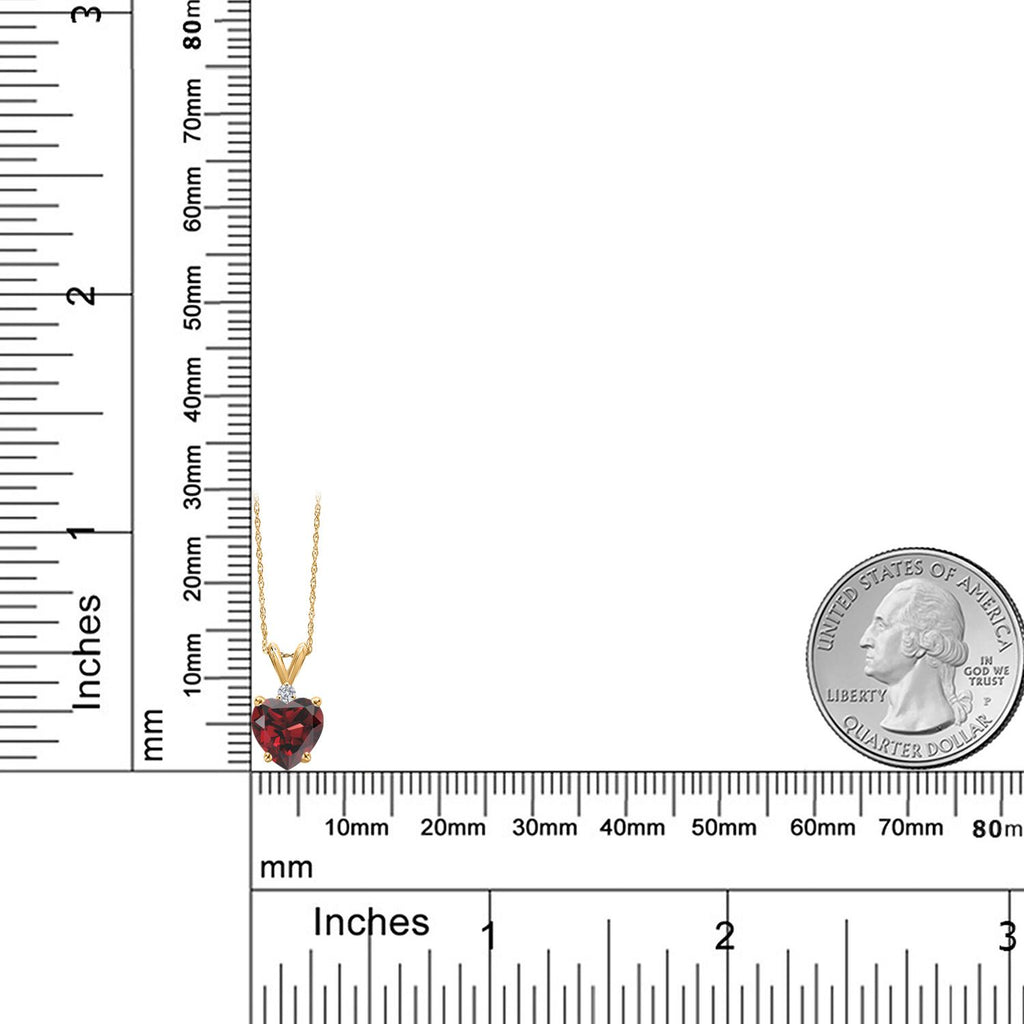 14K Yellow Gold Red Garnet and Lab Grown Diamond Pendant Necklace for Women | 2.04 Cttw | Gemstone January Birthstone | Heart Shape 8MM | With 18 Inch Chain