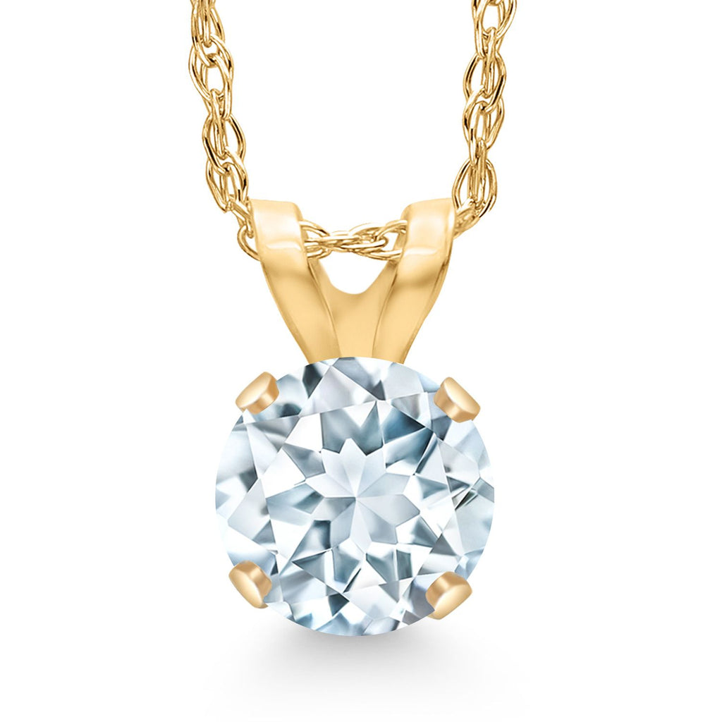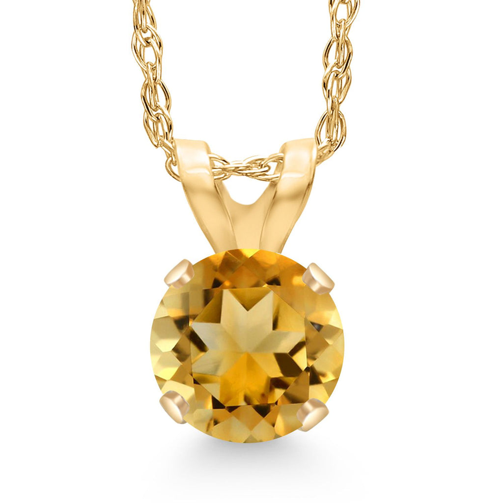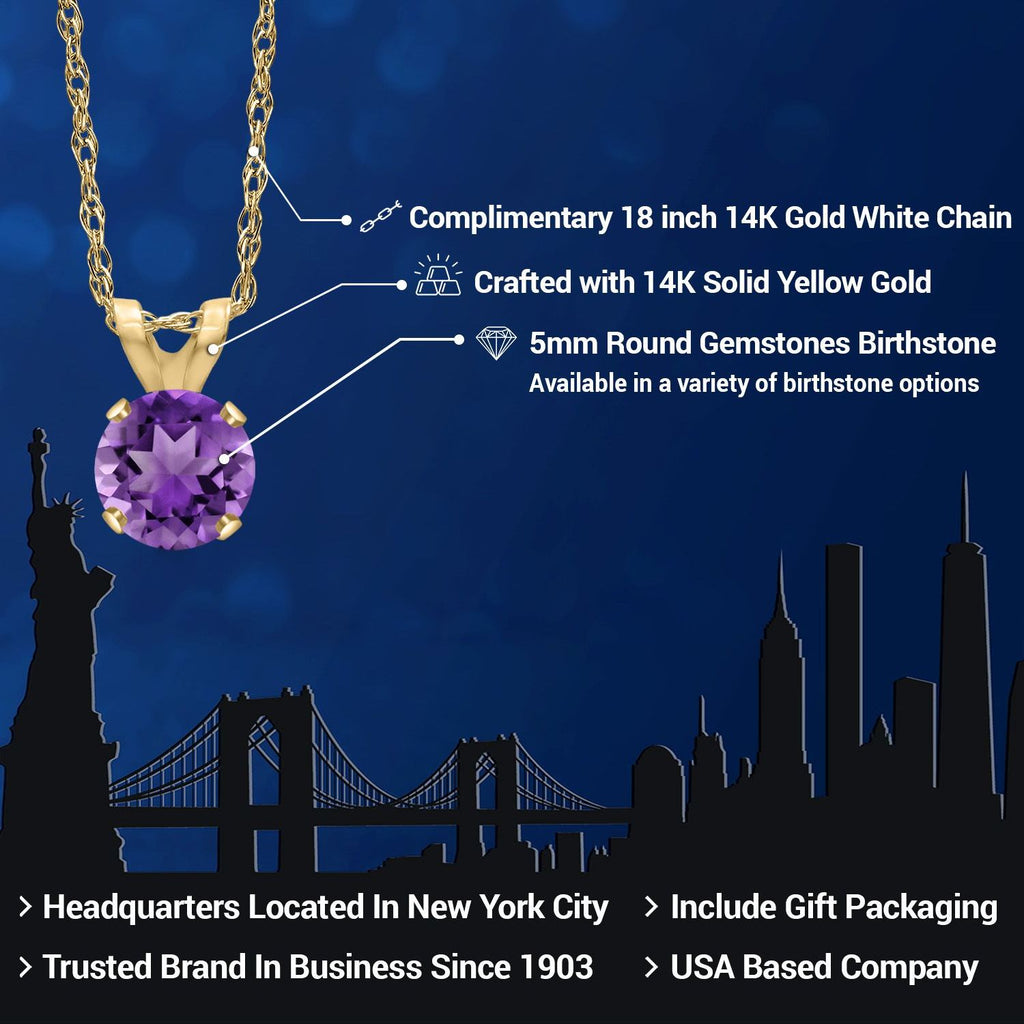 14K Yellow Gold Round 5MM Gemstone Birthstone Solitaire Pendant Necklace | Gold Necklace for Women | With 18 Inch 14K Yellow Gold Chain | Fine Jewelry Gifts for Her Mom Women Wife