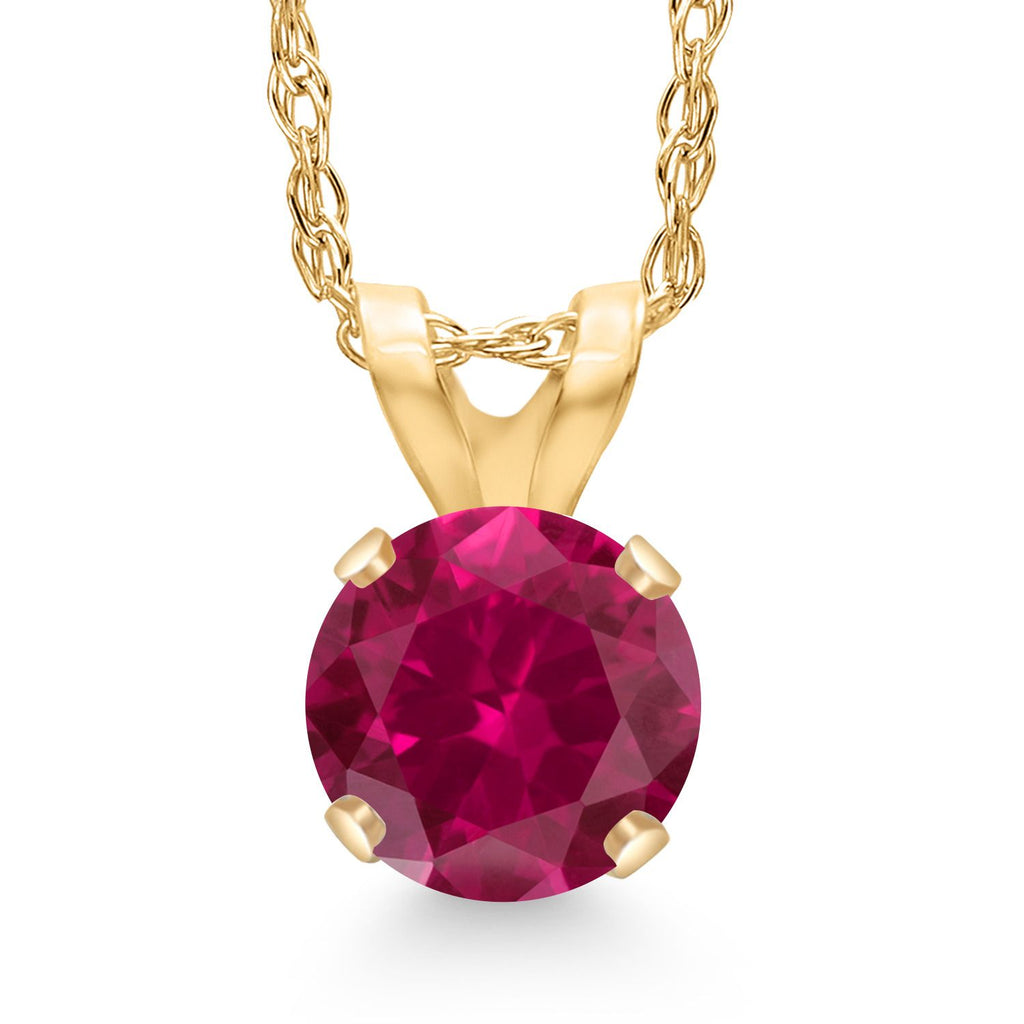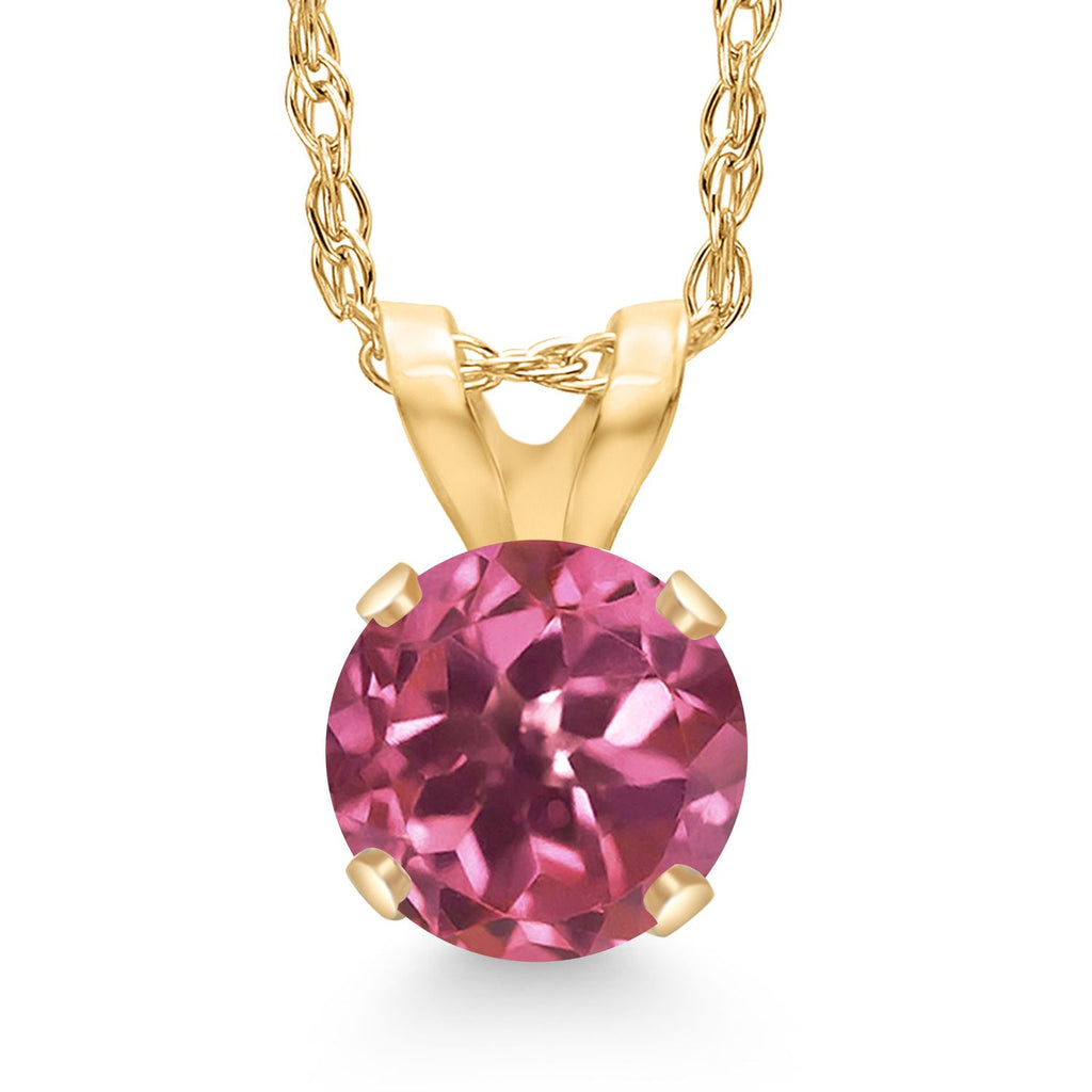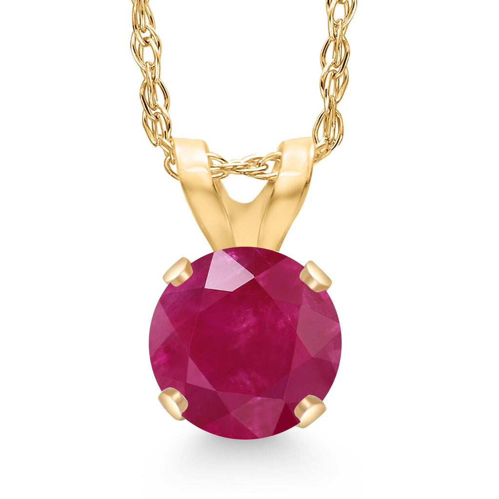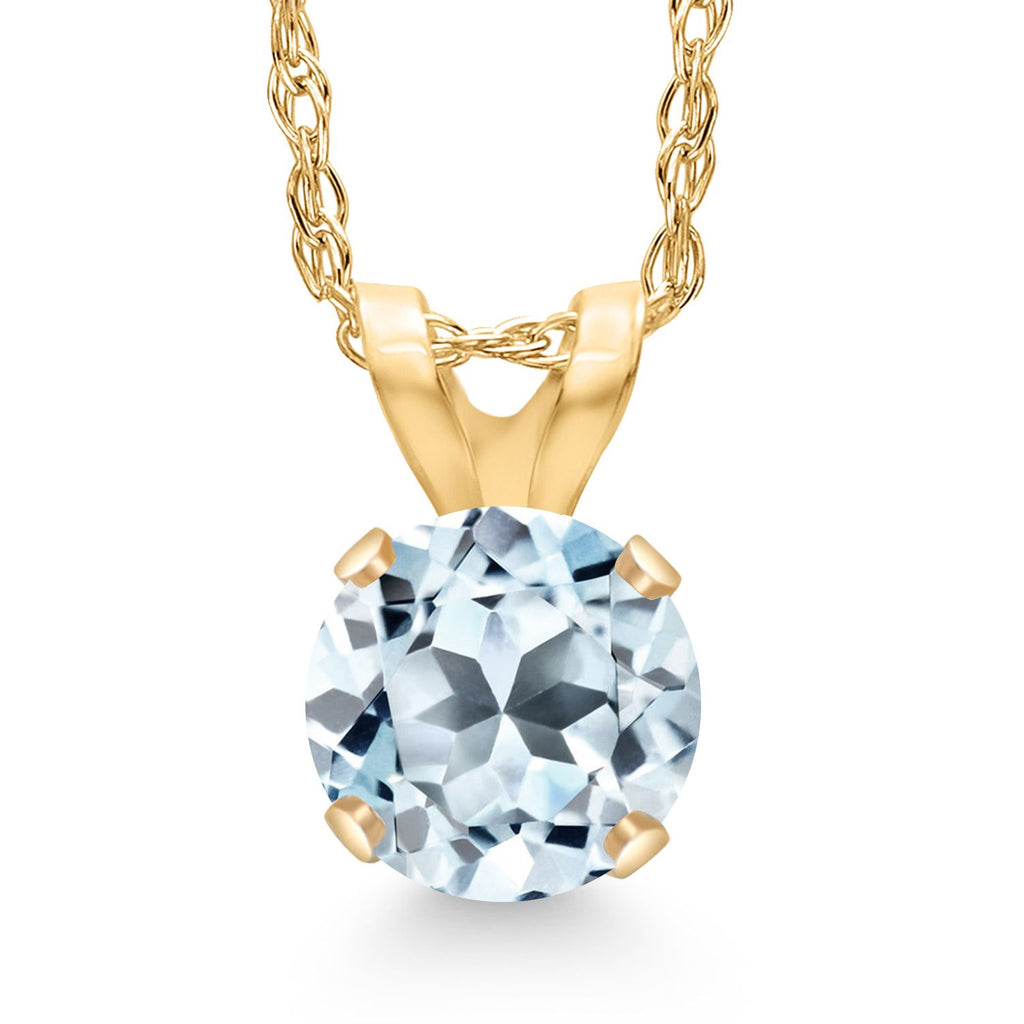 14K Yellow Gold Round 5MM Gemstone Birthstone Solitaire Pendant Necklace | Gold Necklace for Women | With 18 Inch 14K Yellow Gold Chain | Fine Jewelry Gifts for Her Mom Women Wife