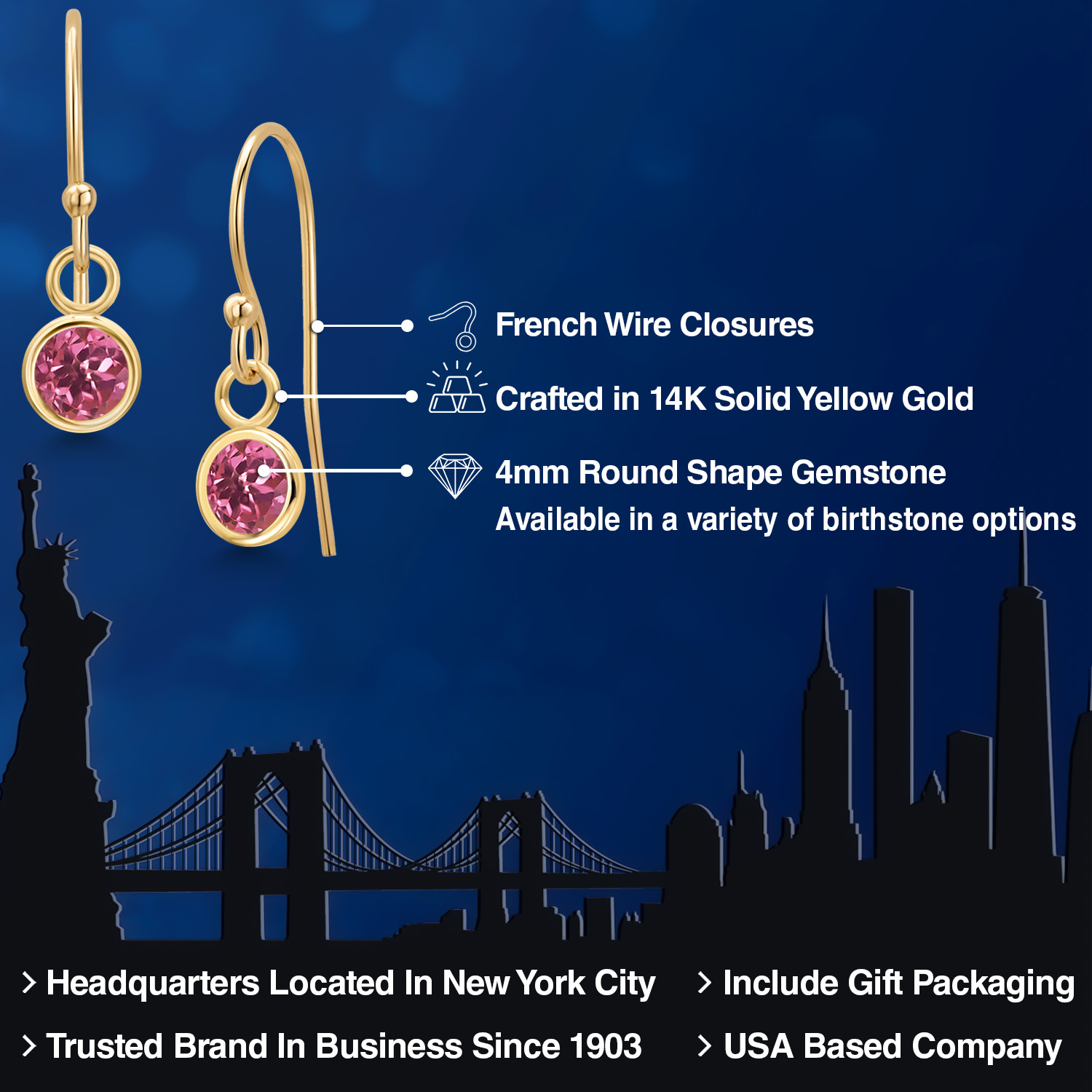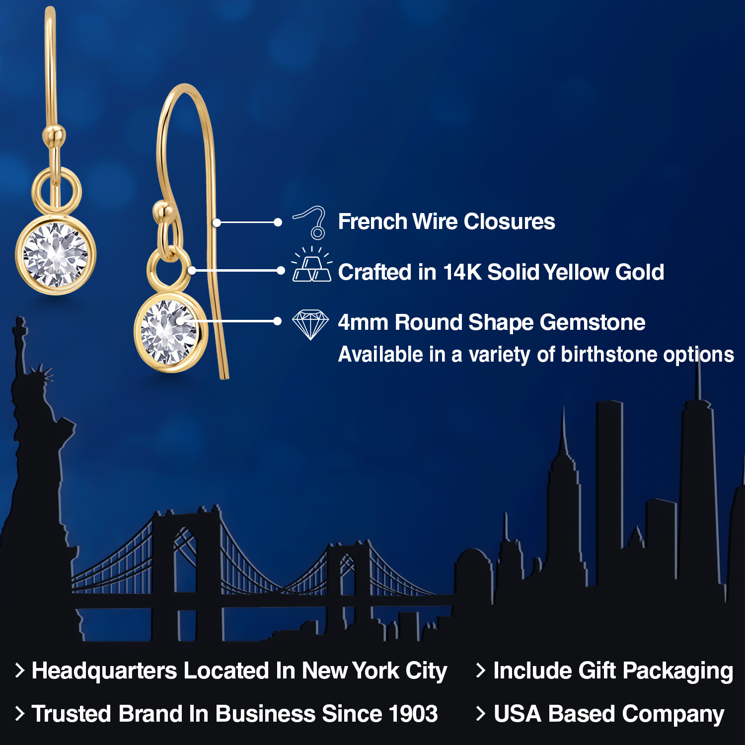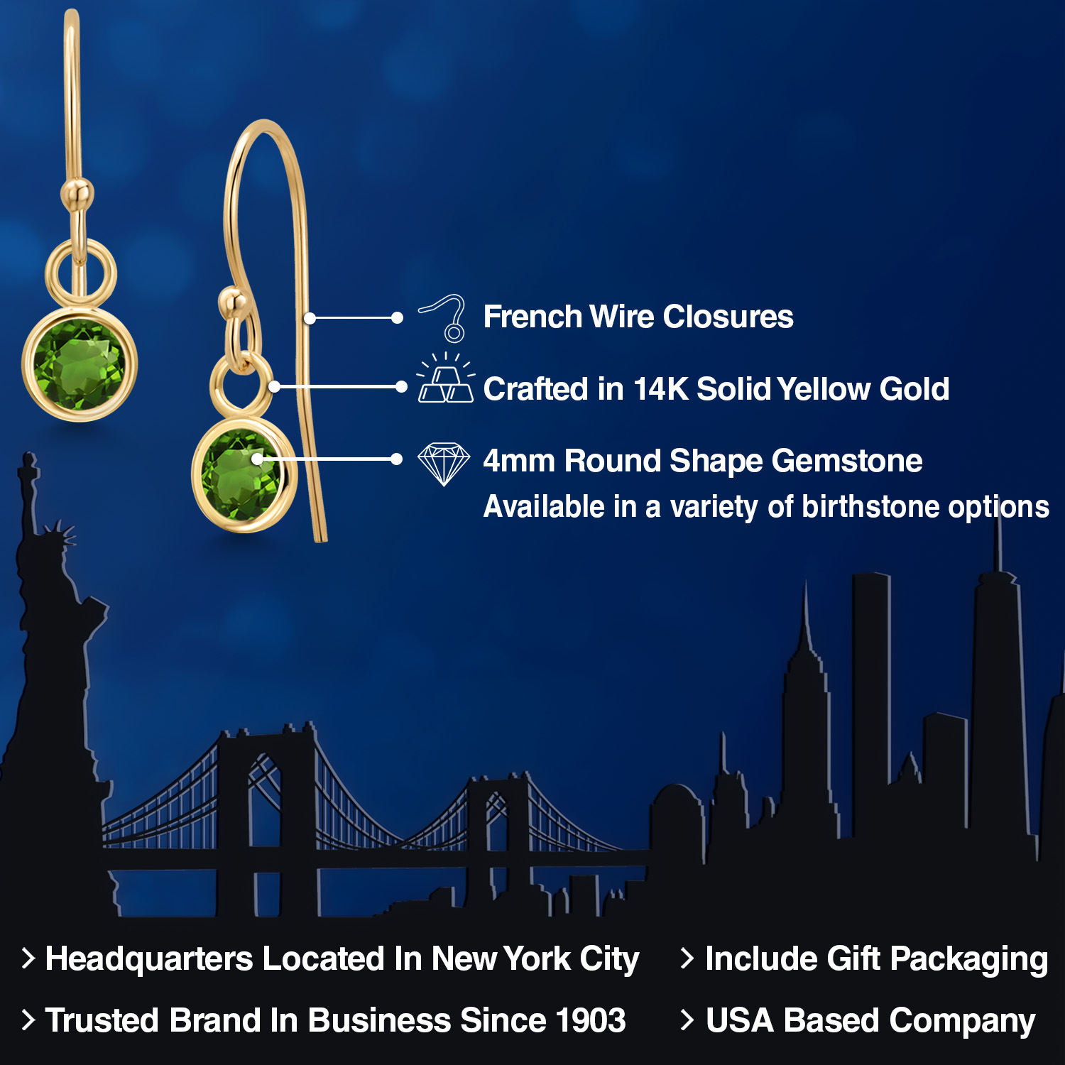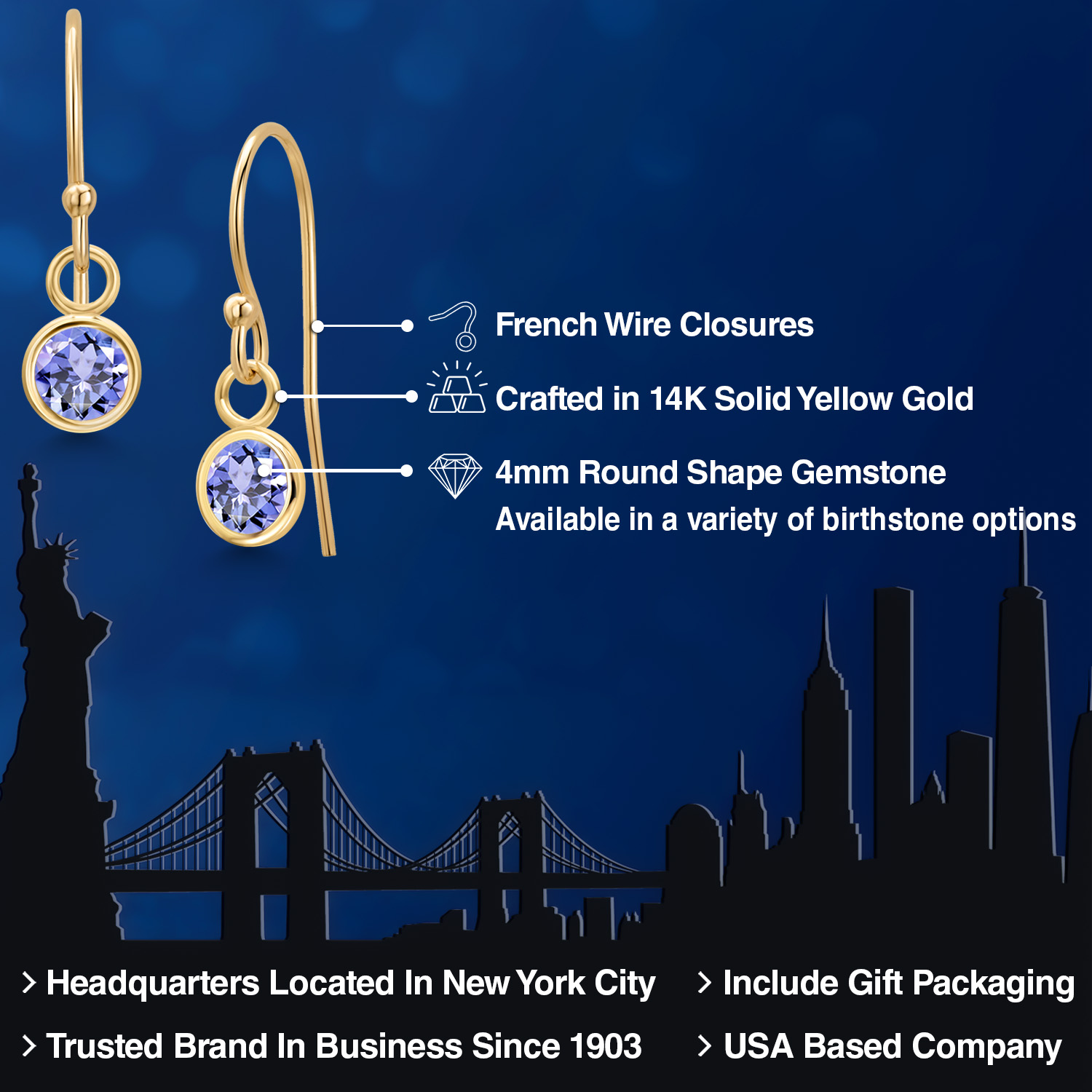 14K YELLOW GOLD ELEGANCE: Crafted from high-quality 14K yellow gold, these earrings offer a luxurious shine and enduring strength that resists tarnish and maintains its beauty over time. The warm, golden hue of the metal enhances the gemstone's natural brilliance, creating a harmonious blend of color and light. This precious metal is also hypoallergenic, ensuring comfortable wear for those with sensitive skin.