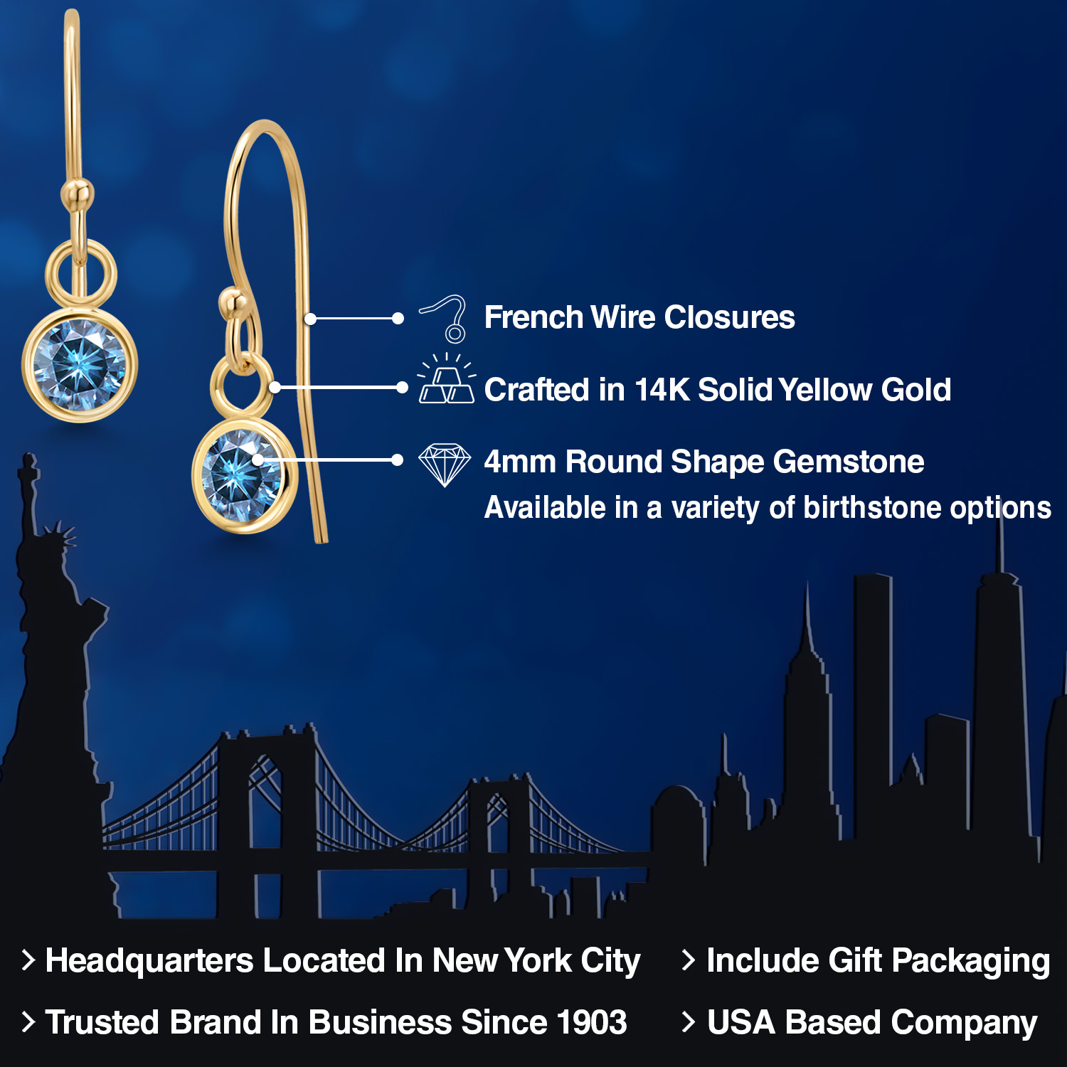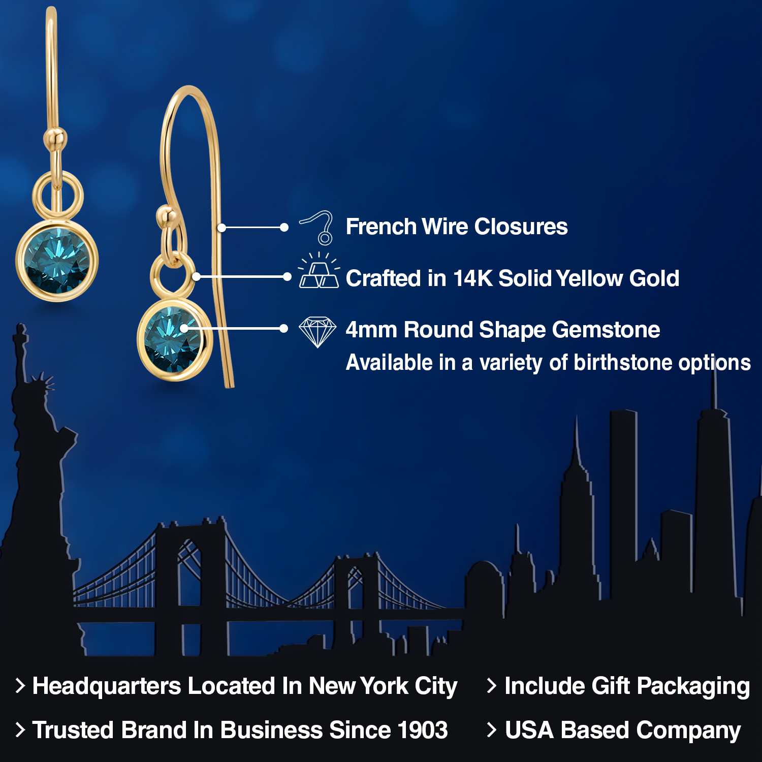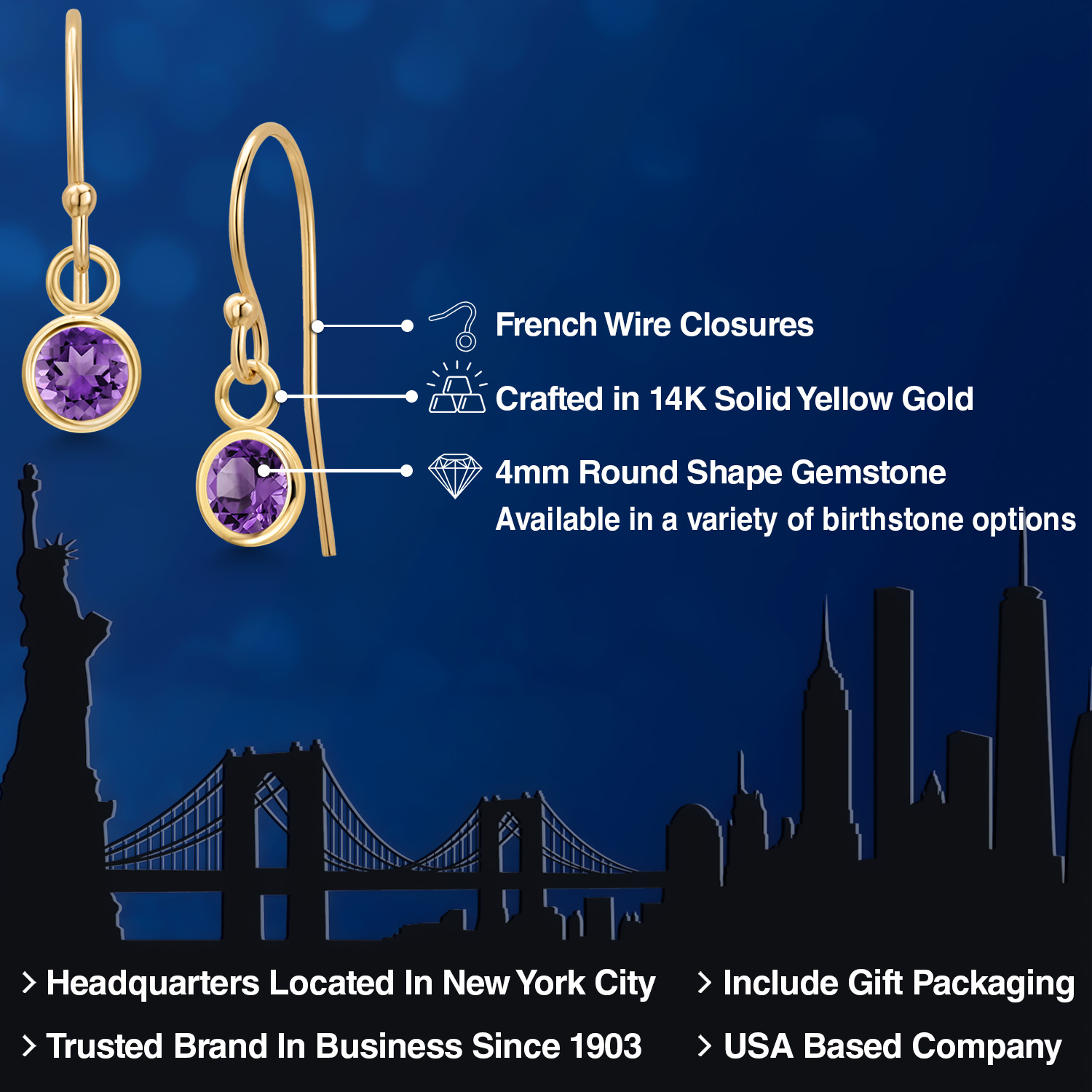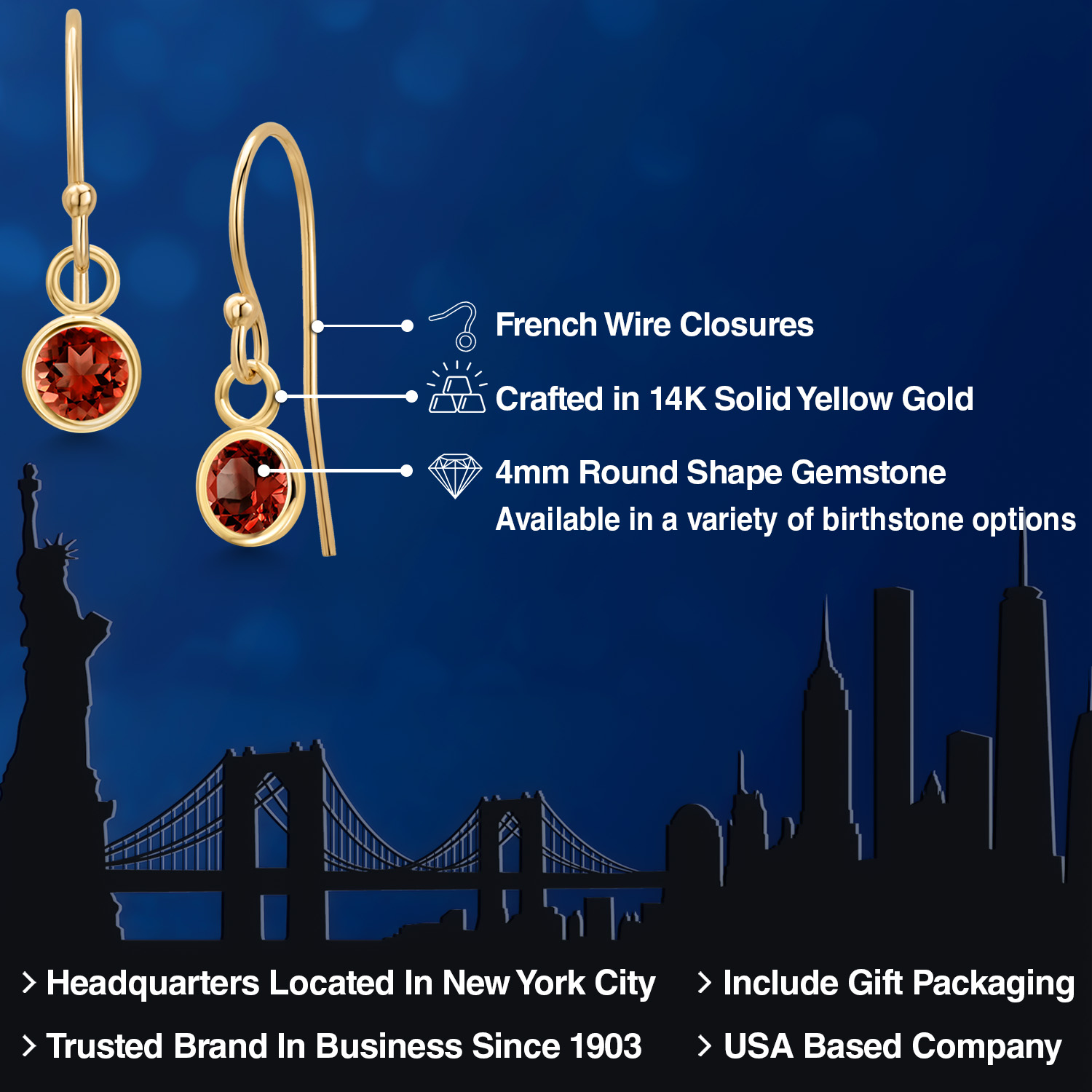 14K YELLOW GOLD ELEGANCE: Crafted from high-quality 14K yellow gold, these earrings offer a luxurious shine and enduring strength that resists tarnish and maintains its beauty over time. The warm, golden hue of the metal enhances the gemstone's natural brilliance, creating a harmonious blend of color and light. This precious metal is also hypoallergenic, ensuring comfortable wear for those with sensitive skin.