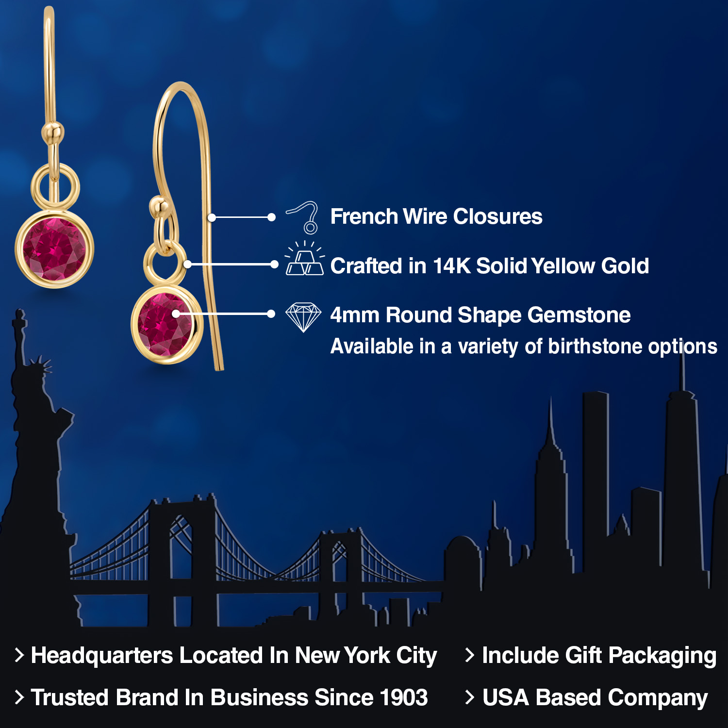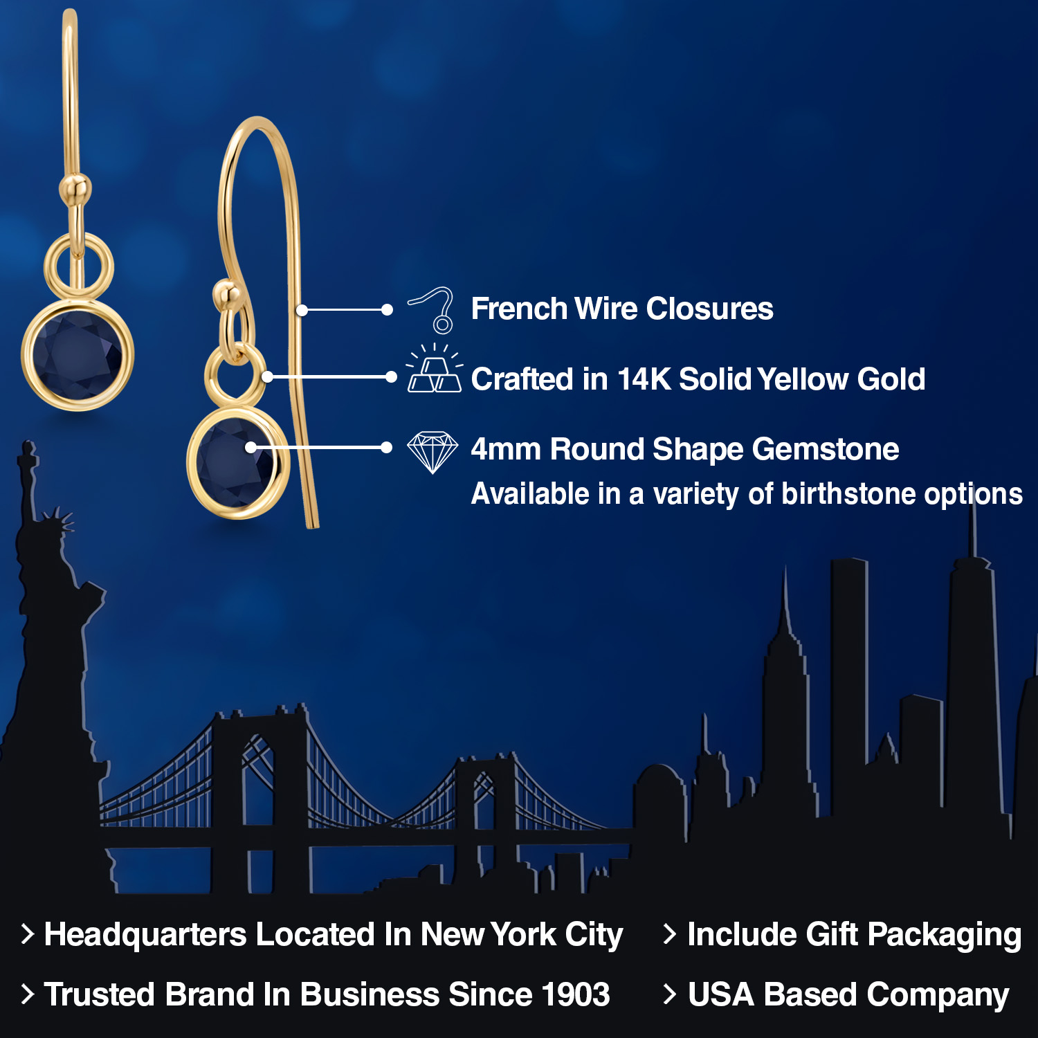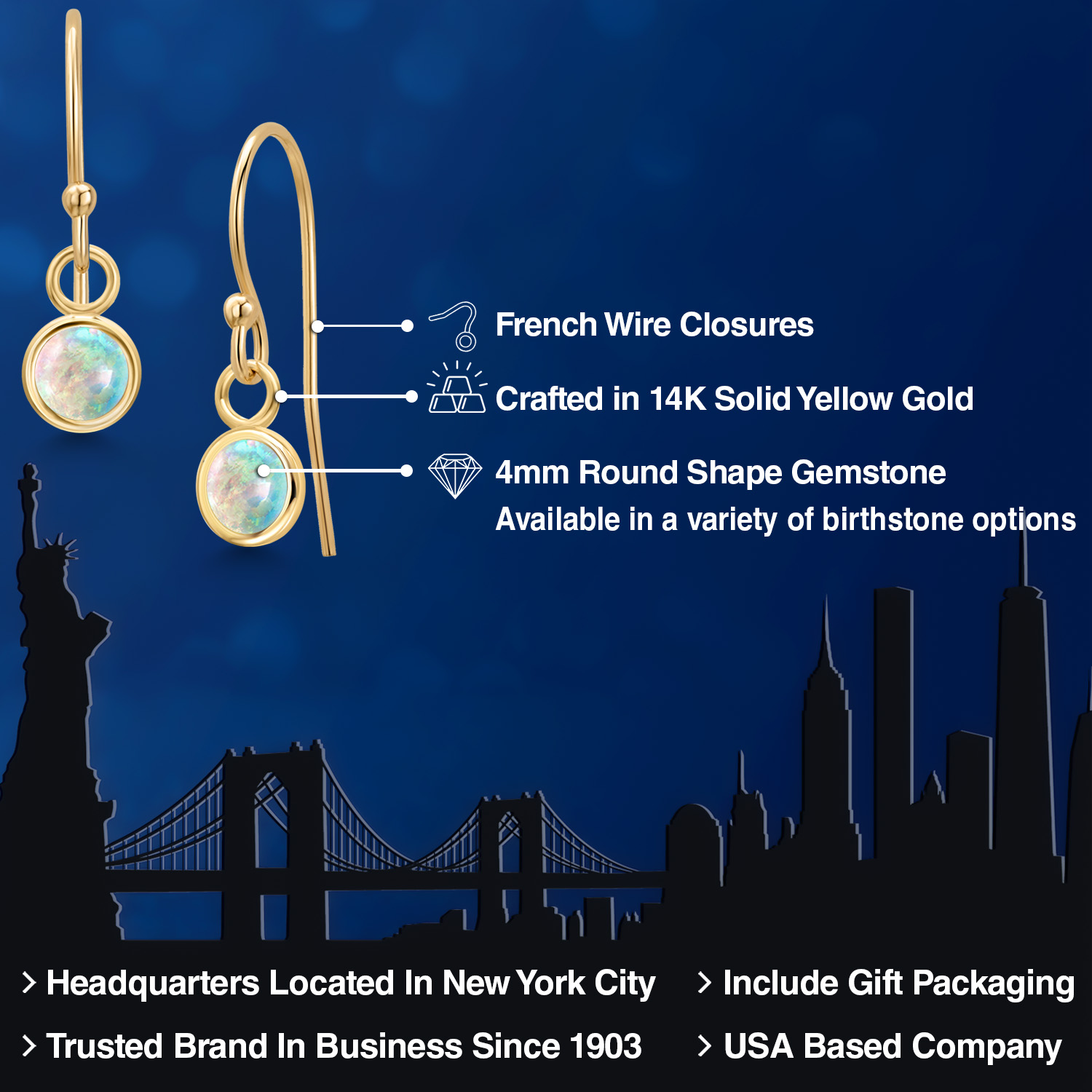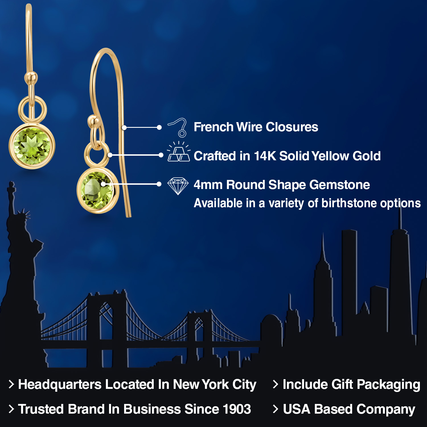 14K YELLOW GOLD ELEGANCE: Crafted from high-quality 14K yellow gold, these earrings offer a luxurious shine and enduring strength that resists tarnish and maintains its beauty over time. The warm, golden hue of the metal enhances the gemstone's natural brilliance, creating a harmonious blend of color and light. This precious metal is also hypoallergenic, ensuring comfortable wear for those with sensitive skin.