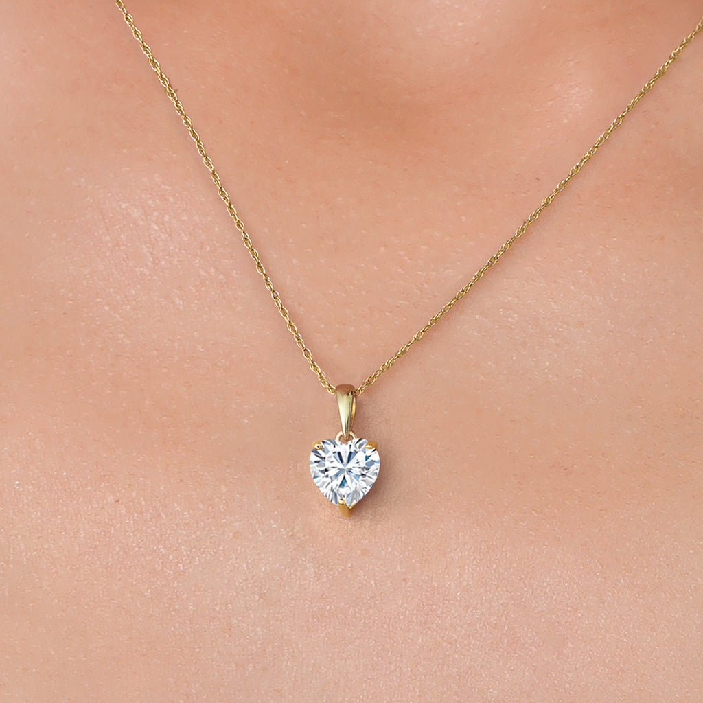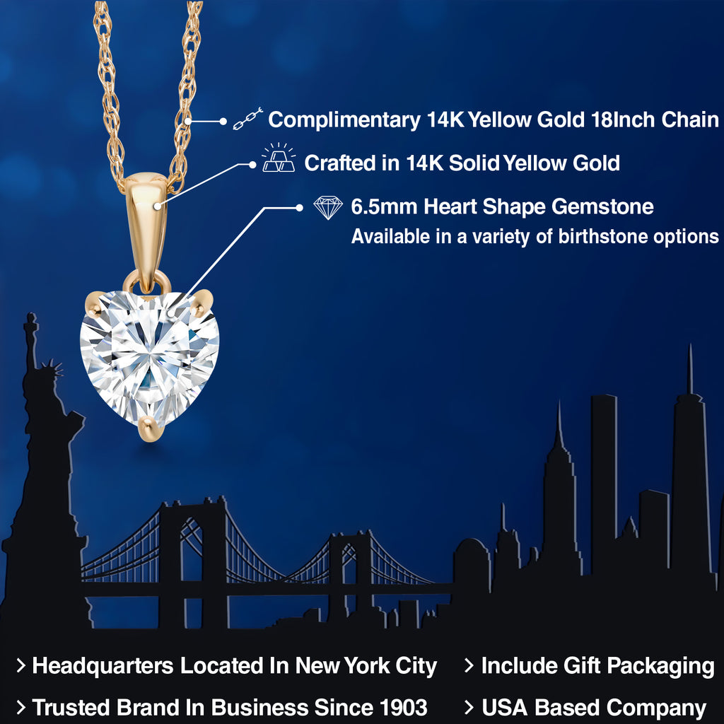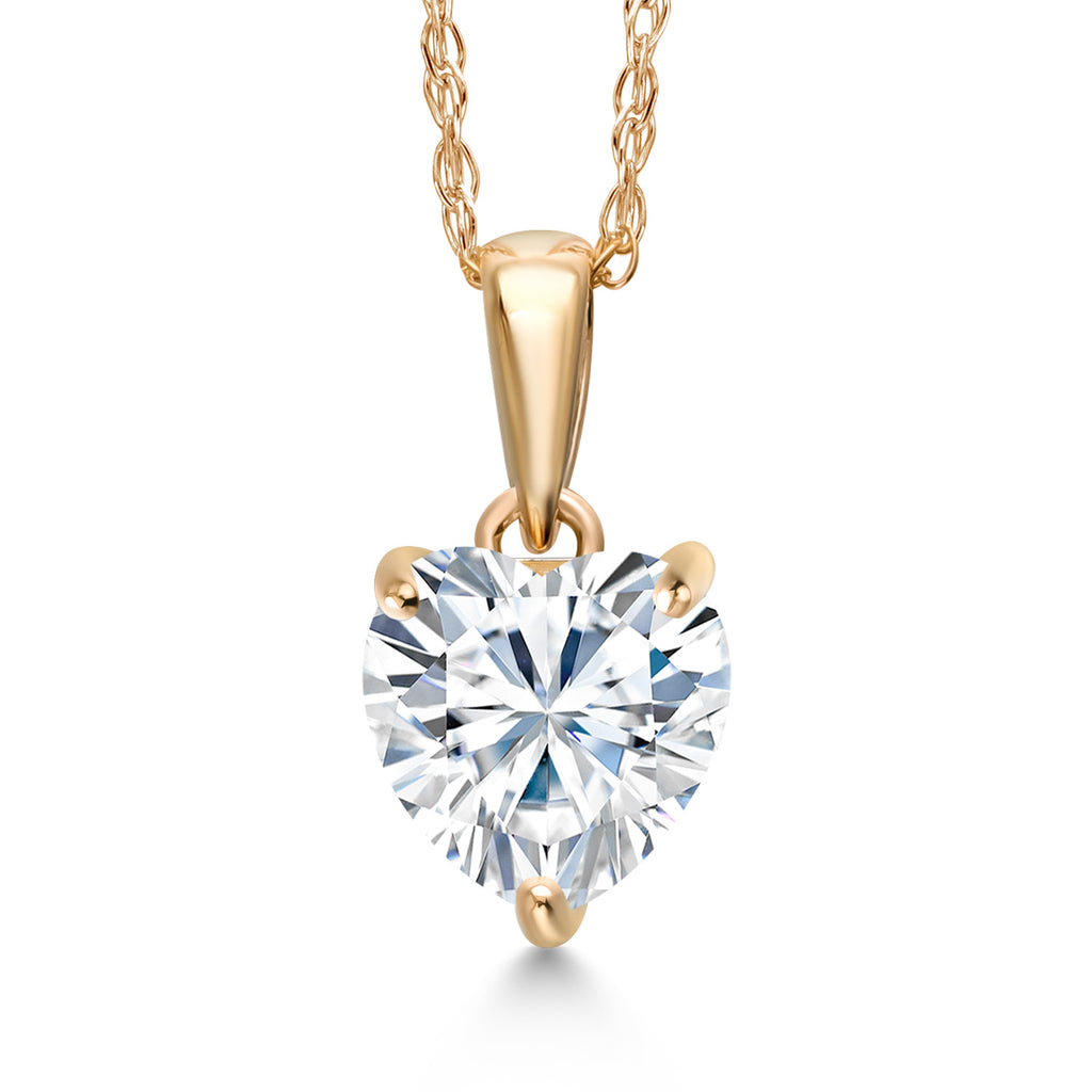 Timeless Heart Design: This 14K yellow gold pendant necklace features a brilliant 1.08 Cttw heart-shaped White Moissanite (6.5MM), offering a romantic and elegant centerpiece that symbolizes love and devotion.