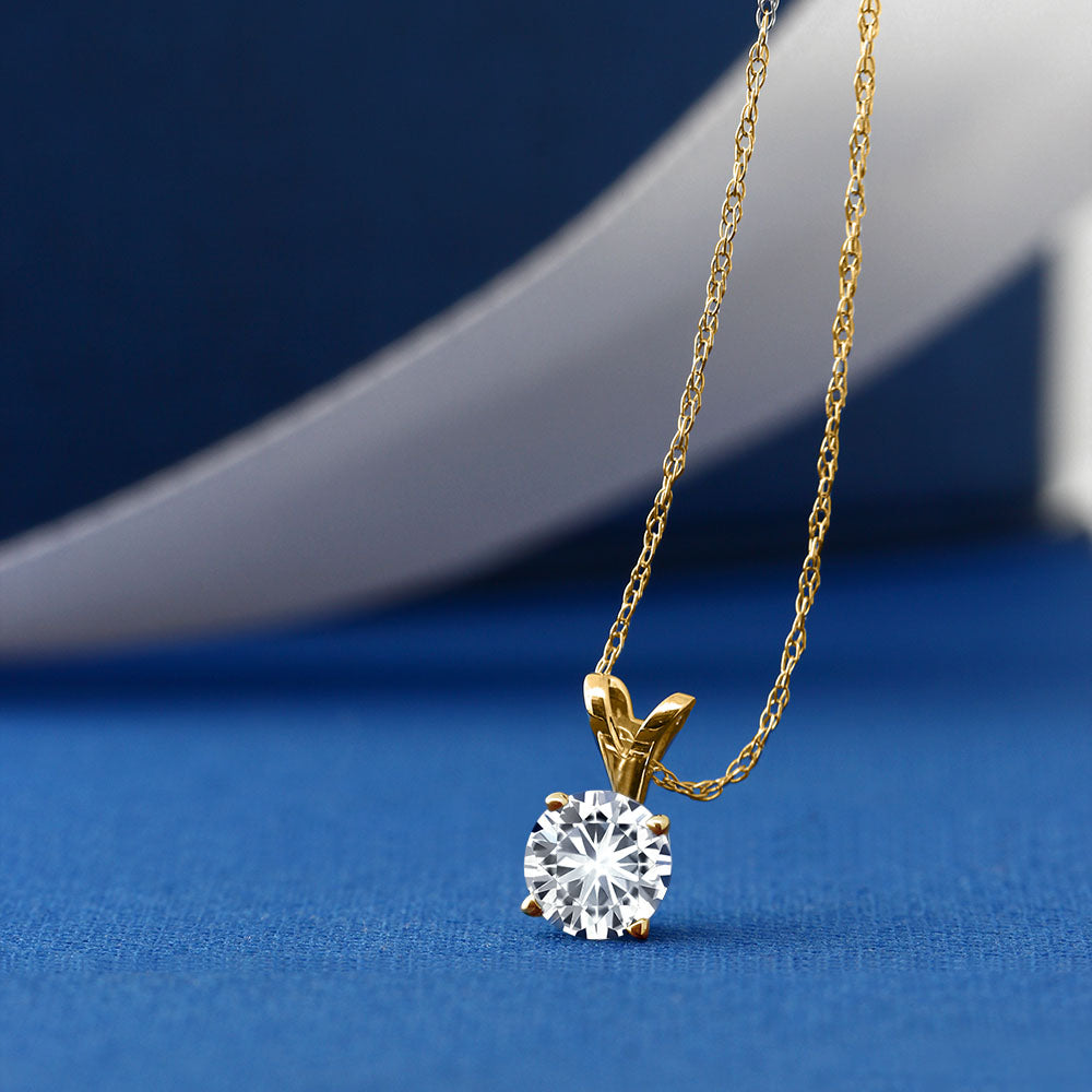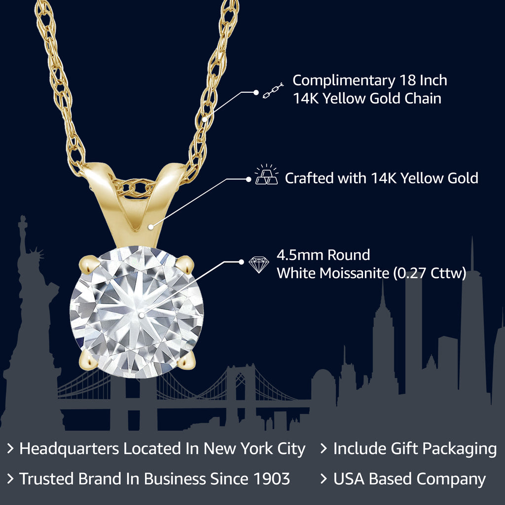 ETERNAL BRILLIANCE: Elevate your style with the enchanting allure of the Gem Stone King White Moissanite Solitaire Pendant Necklace. The brilliant 0.27 carat total weight of the round 4.5MM white moissanite captures light from every angle, radiating timeless elegance.