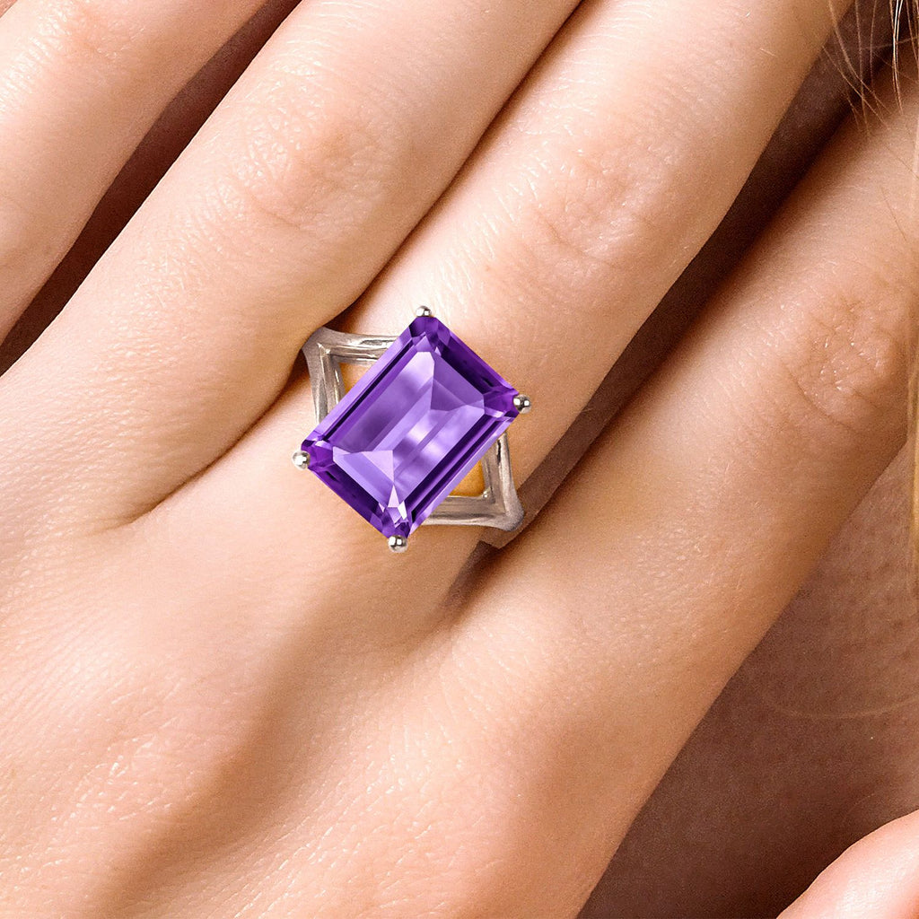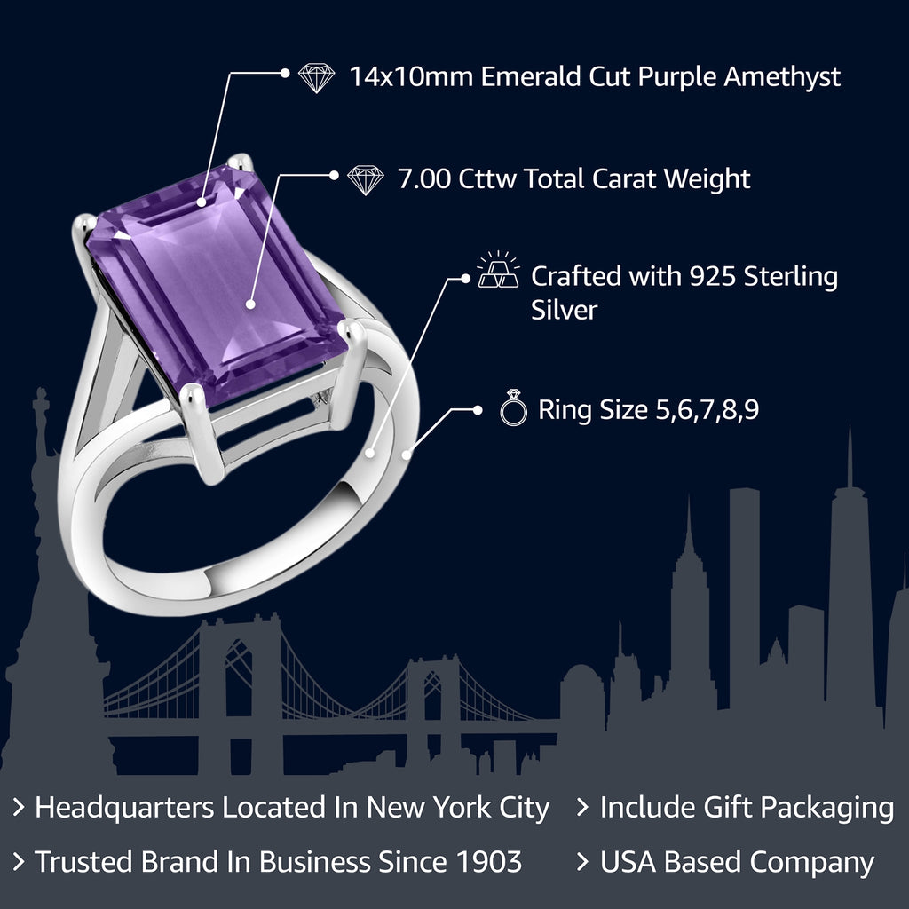5-10 Cttw Gemstone Birthstone Solitaire Engagement Ring For Women | 925 Sterling Silver | 14X10MM Emerald Cut | Wedding Anniversary Promise Ring For Women | Available In Size 5-9