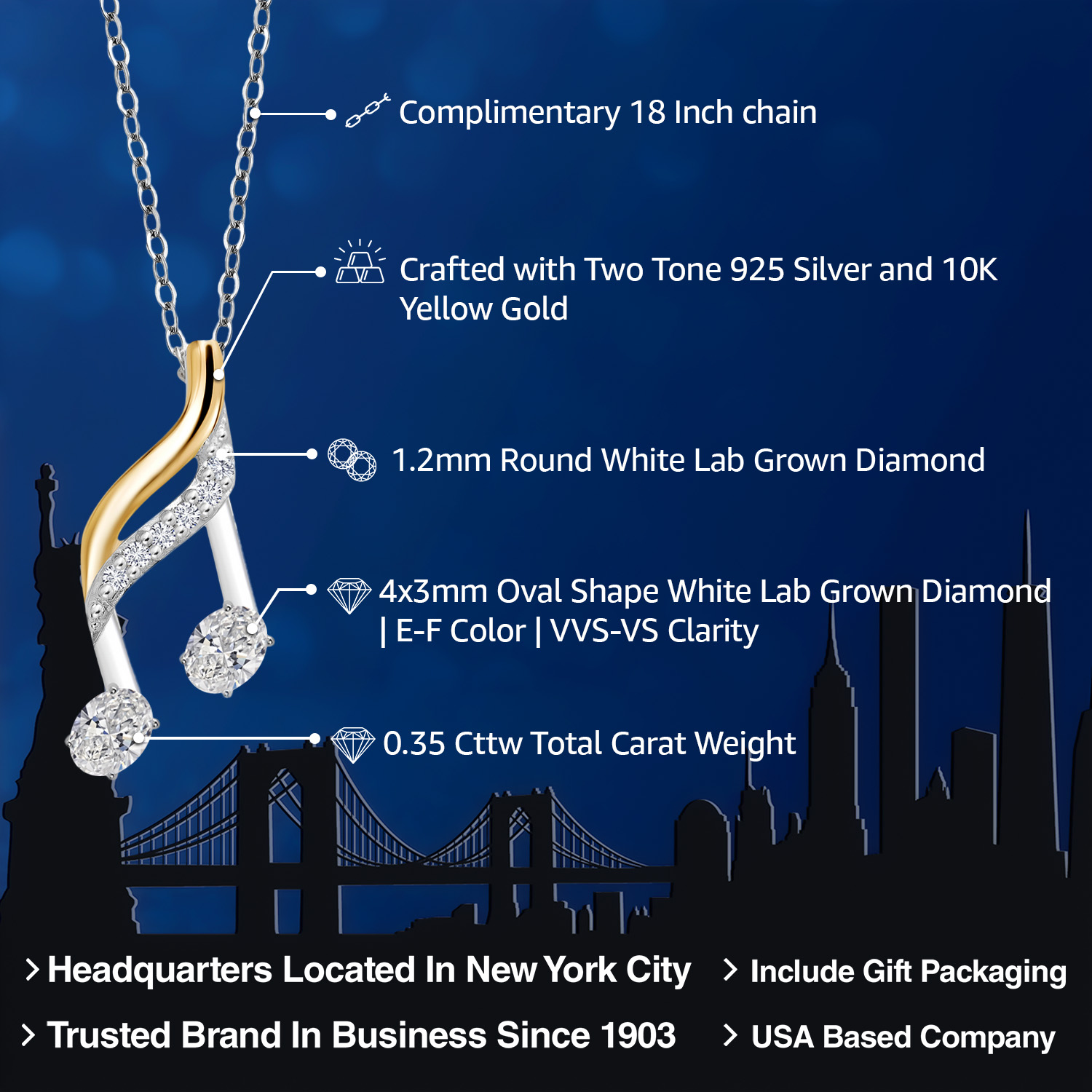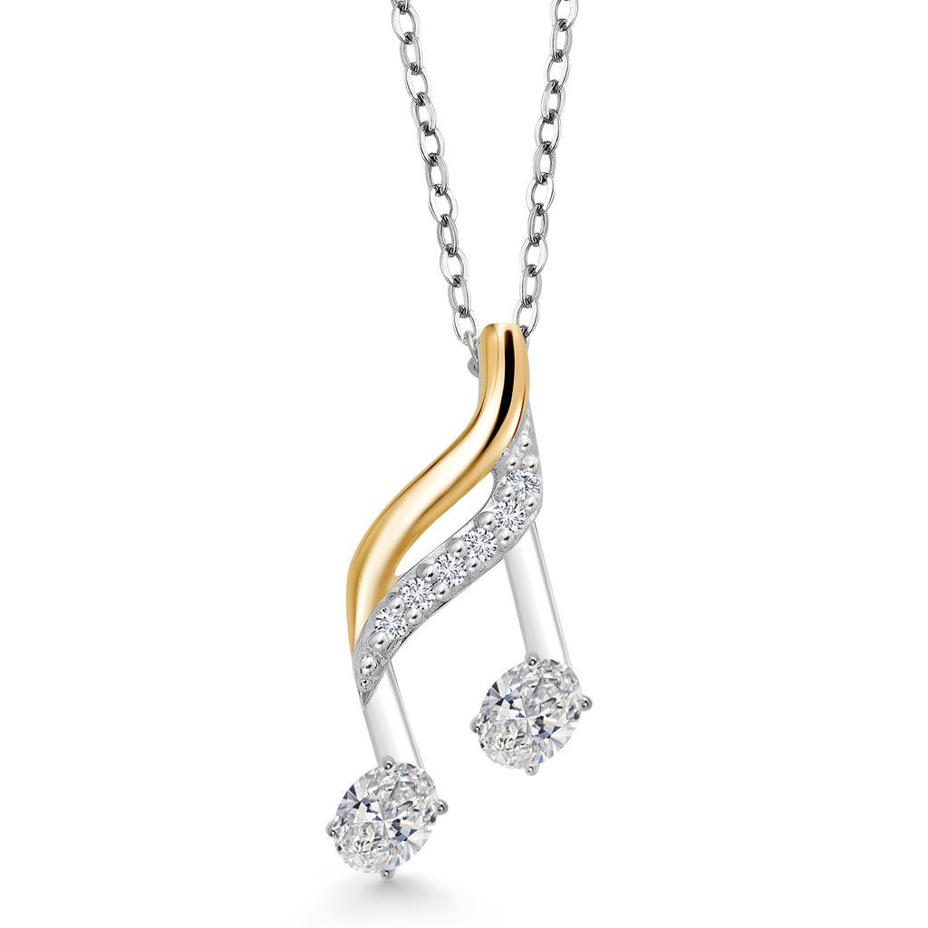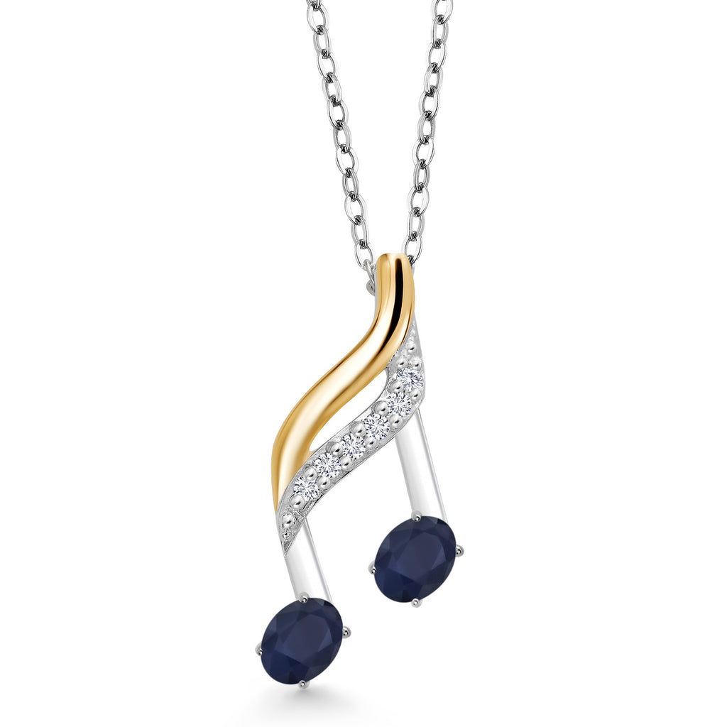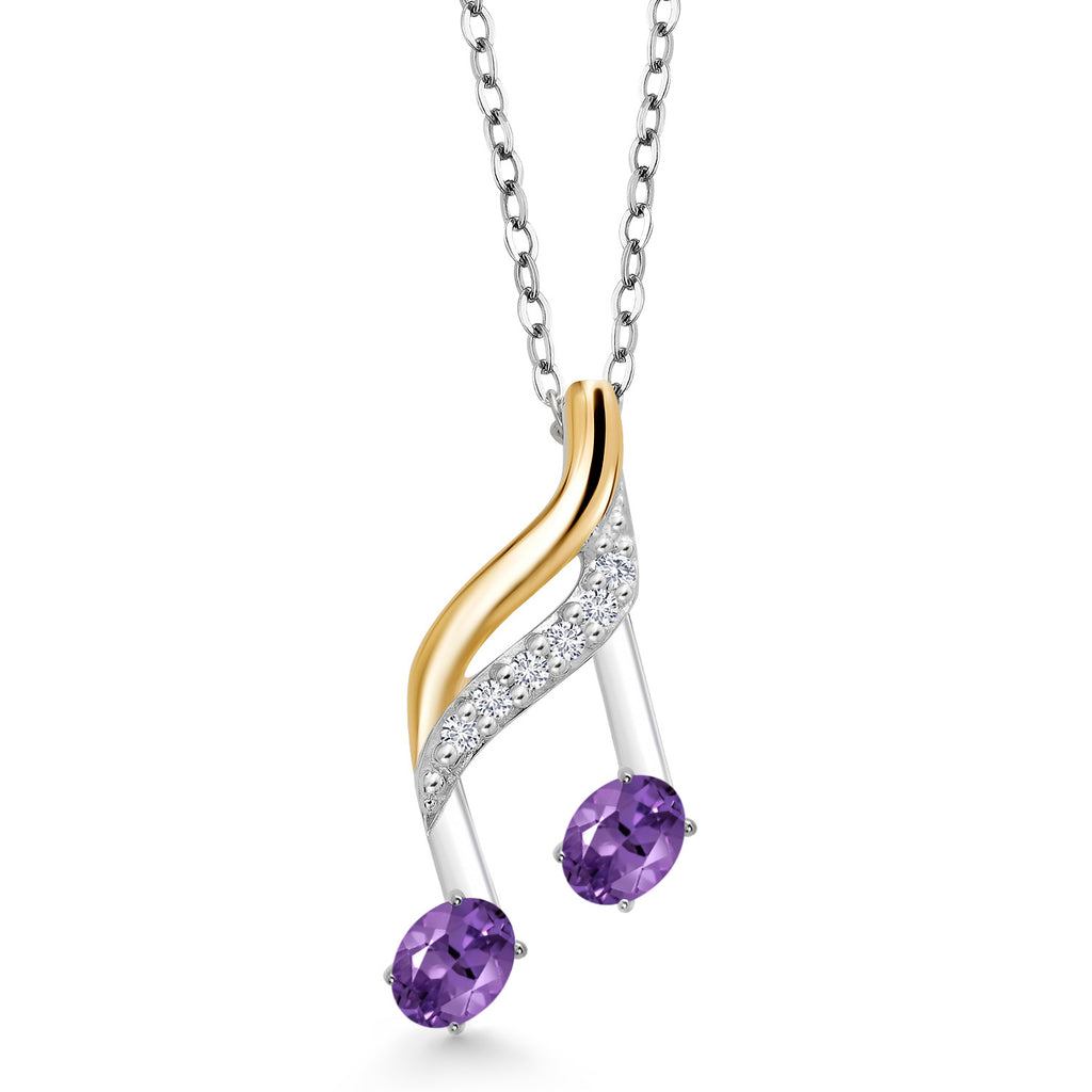 16th Sixteenth Music Note Symbol Necklace | 925 Silver and 10K Yellow Gold | Gemstone Birthstone and Lab Grown Diamond | Jewelry Gift Pendant Necklace for Women By Keren Hanan