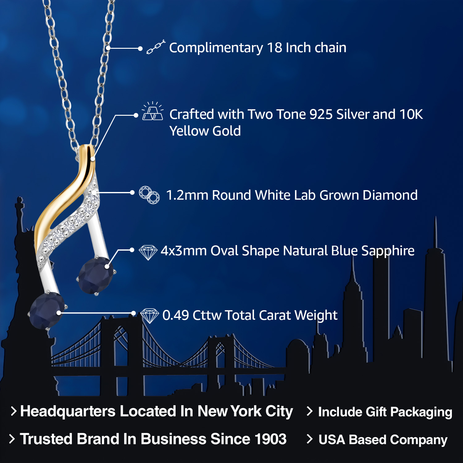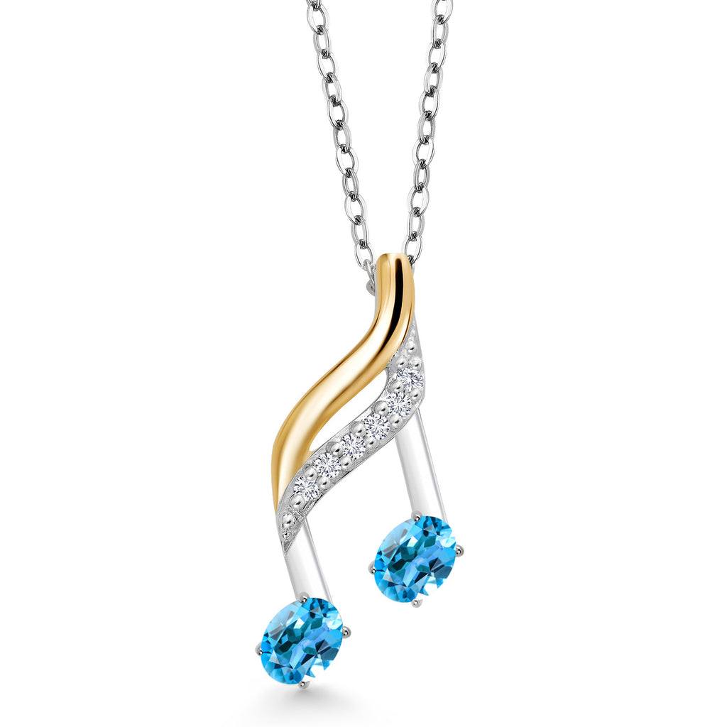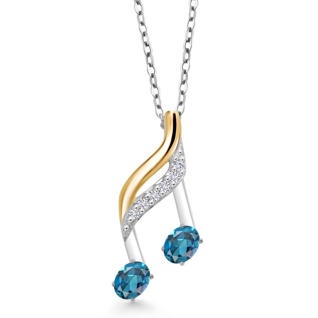 16th Sixteenth Music Note Symbol Necklace | 925 Silver and 10K Yellow Gold | Gemstone Birthstone and Lab Grown Diamond | Jewelry Gift Pendant Necklace for Women By Keren Hanan