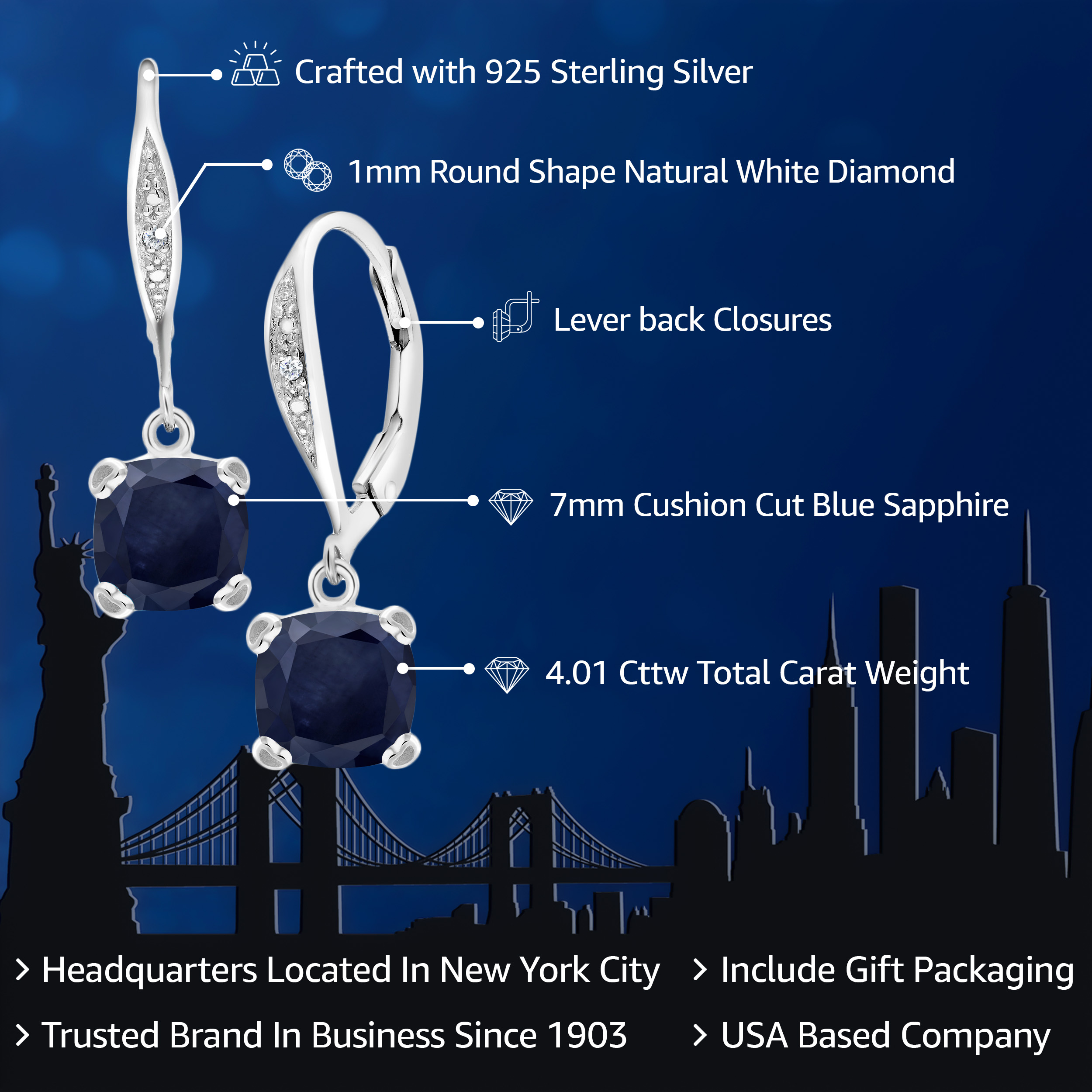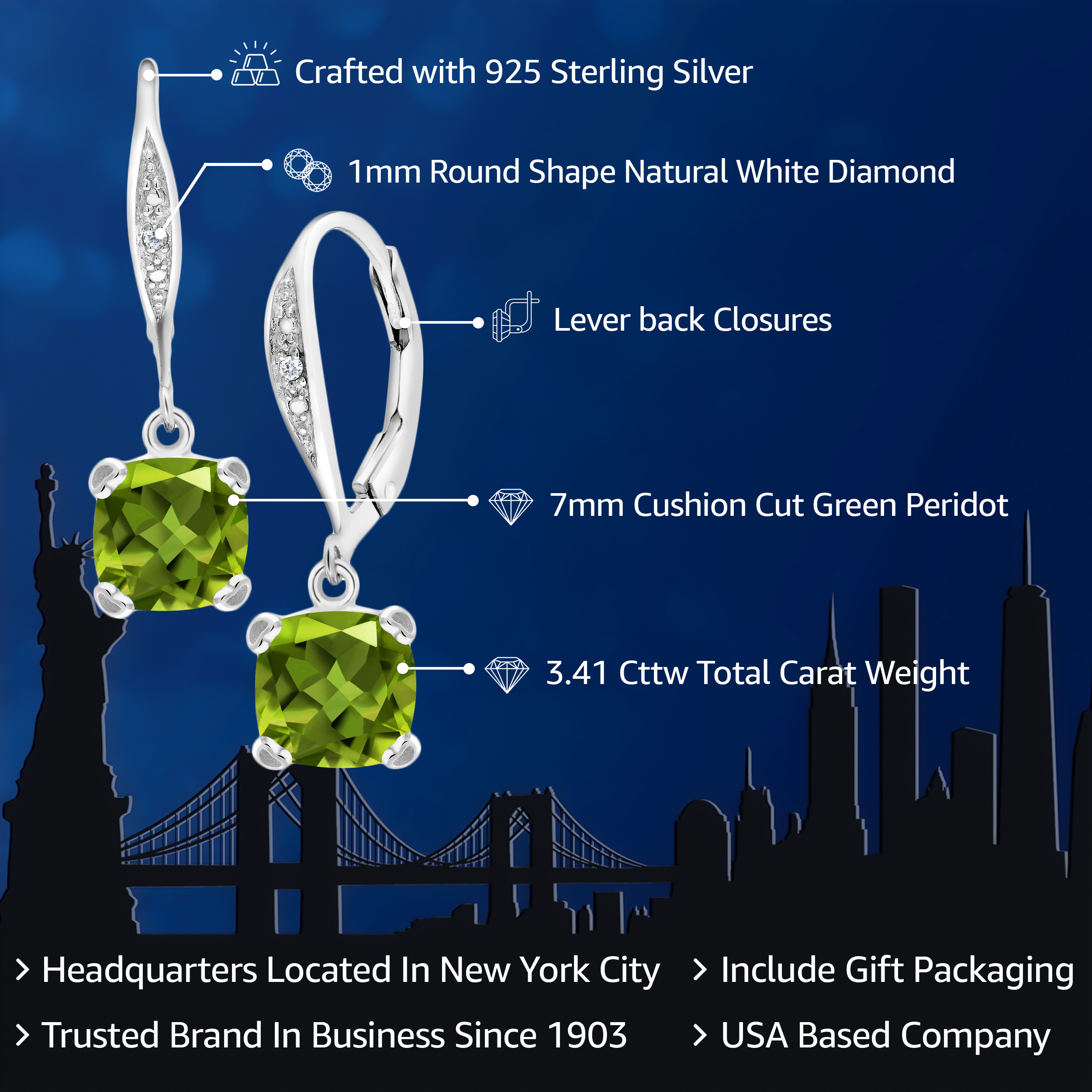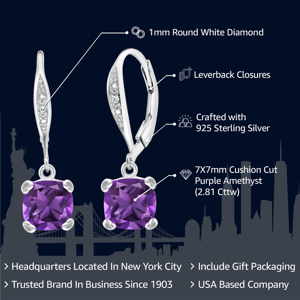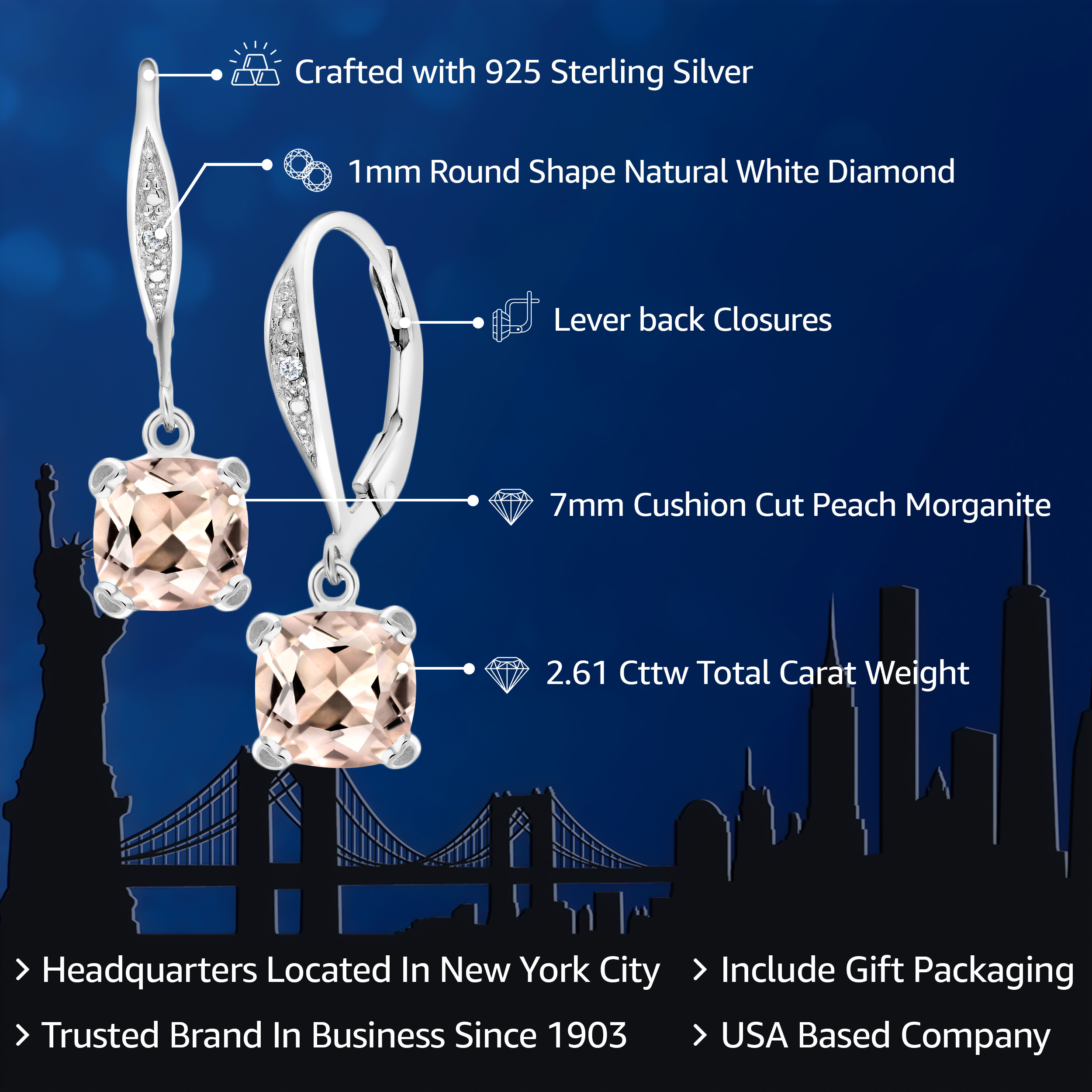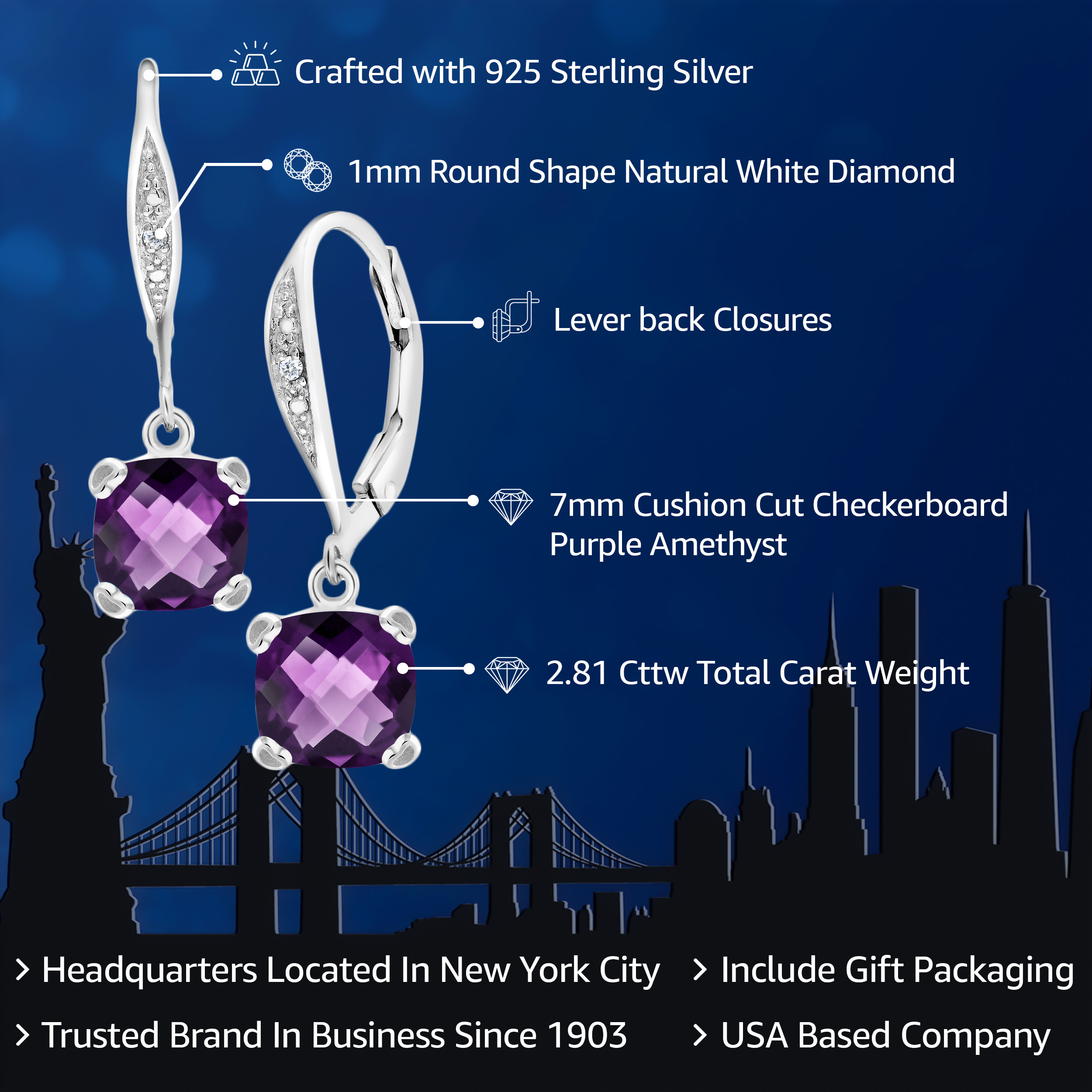 Drop Dangle Earrings For Women | 7MM Cushion Cut Gemstone Birthstone and White Diamond | 925 Sterling Silver | Fine Jewelry Gifts for Her Mom Women Wife