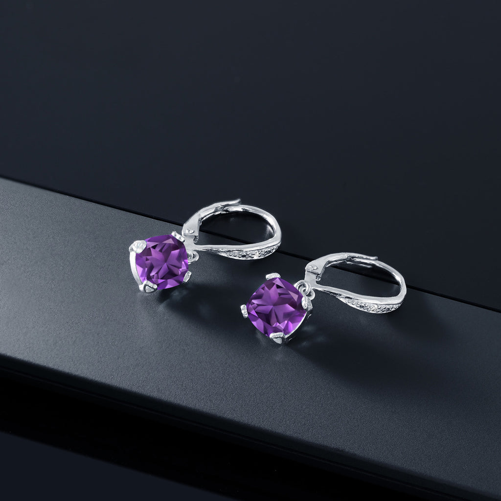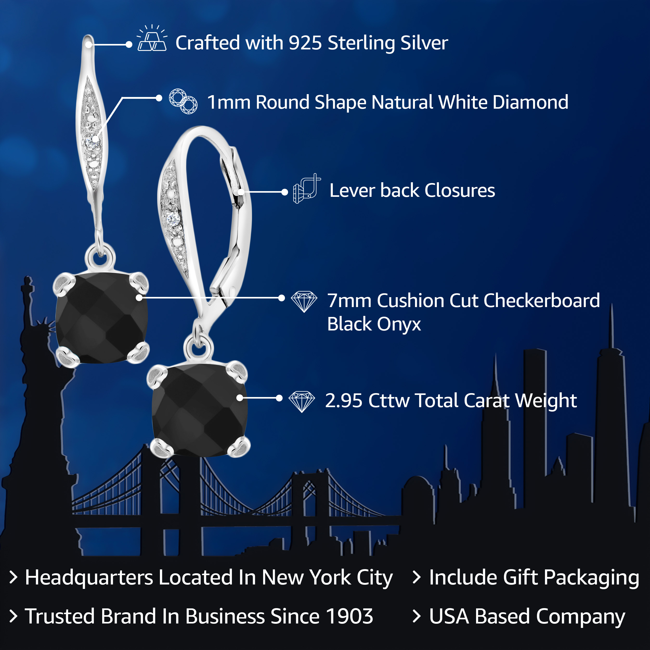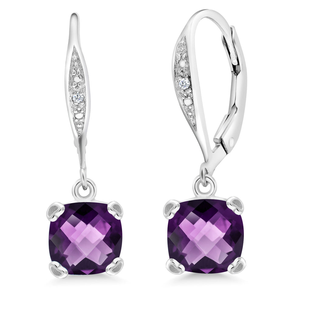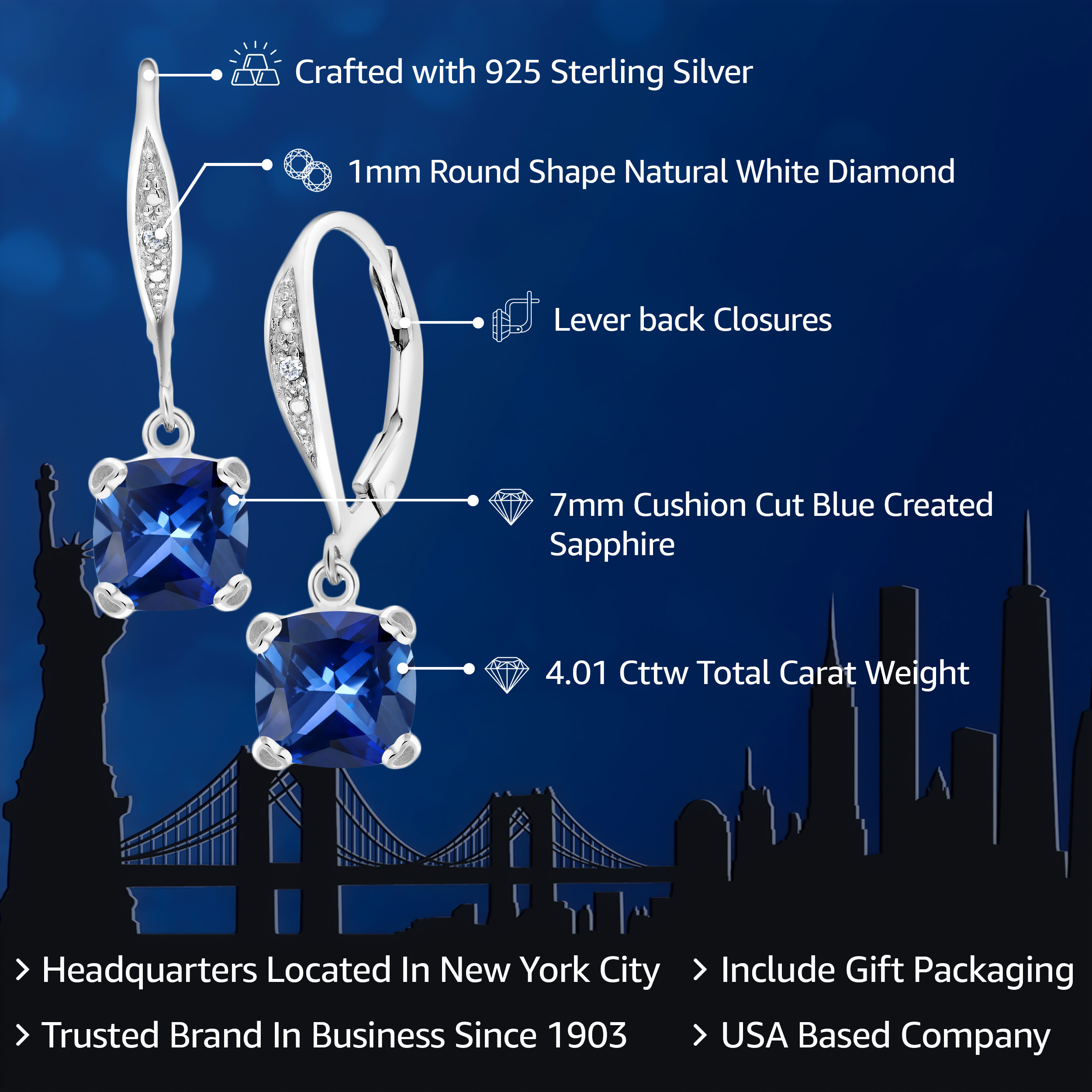 Drop Dangle Earrings For Women | 7MM Cushion Cut Gemstone Birthstone and White Diamond | 925 Sterling Silver | Fine Jewelry Gifts for Her Mom Women Wife