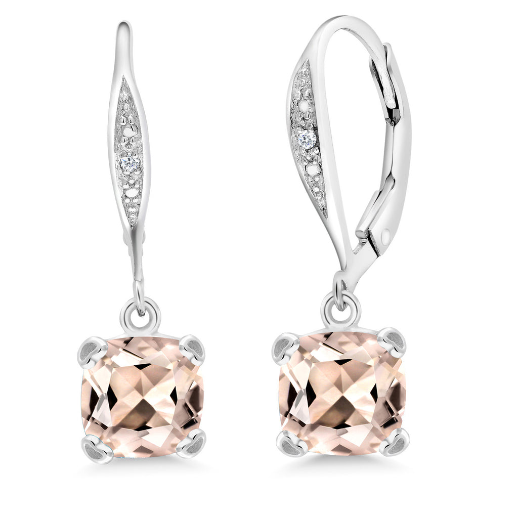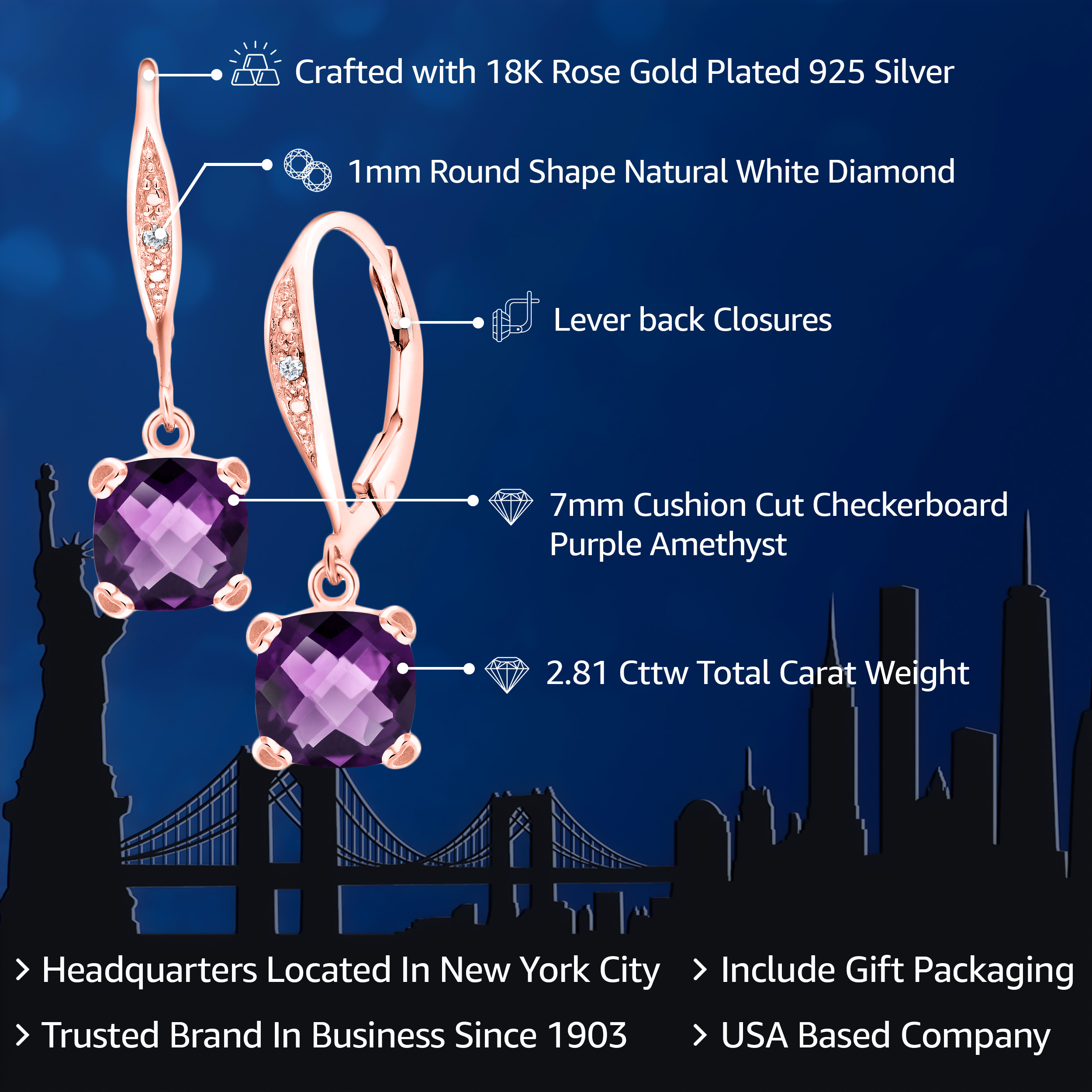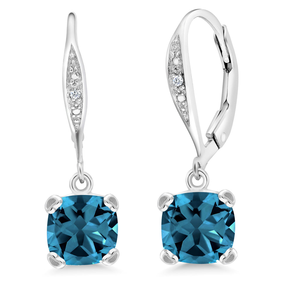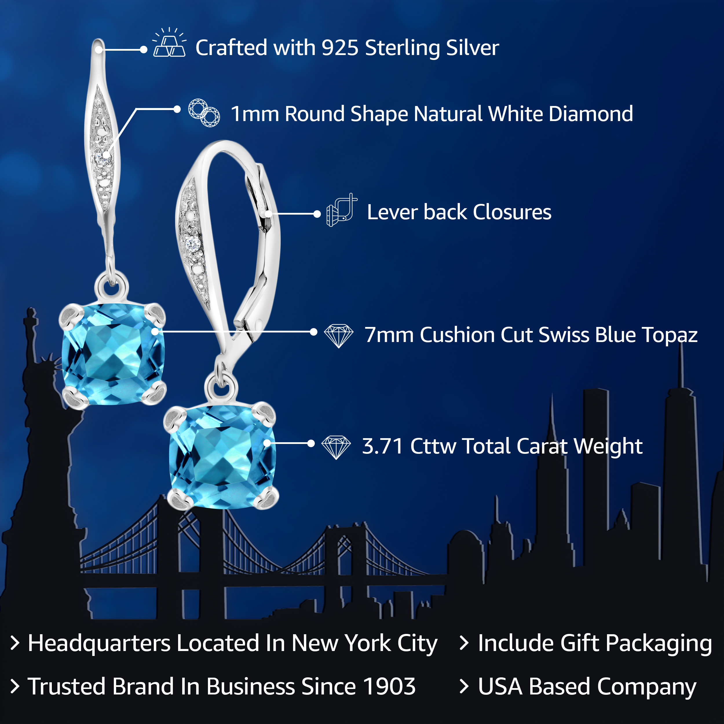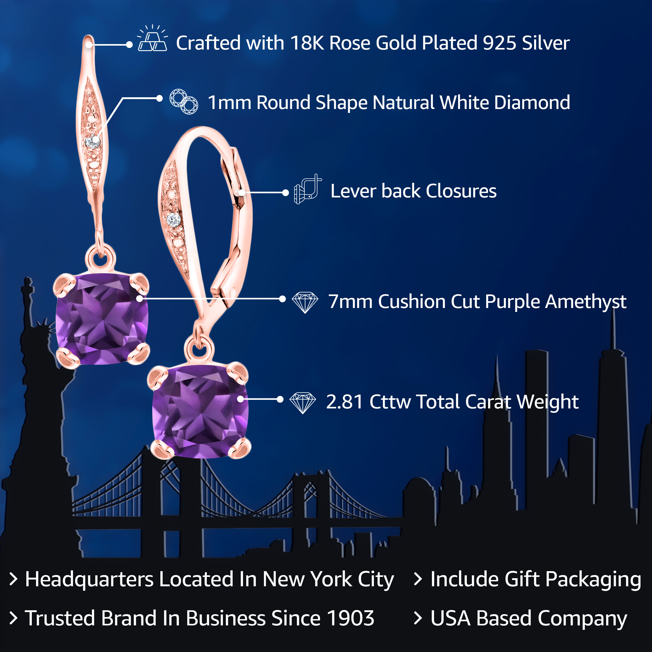 Drop Dangle Earrings For Women | 7MM Cushion Cut Gemstone Birthstone and White Diamond | 925 Sterling Silver | Fine Jewelry Gifts for Her Mom Women Wife