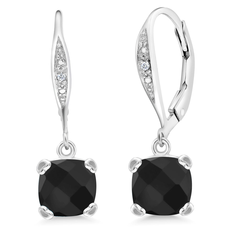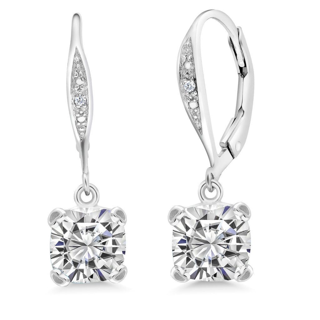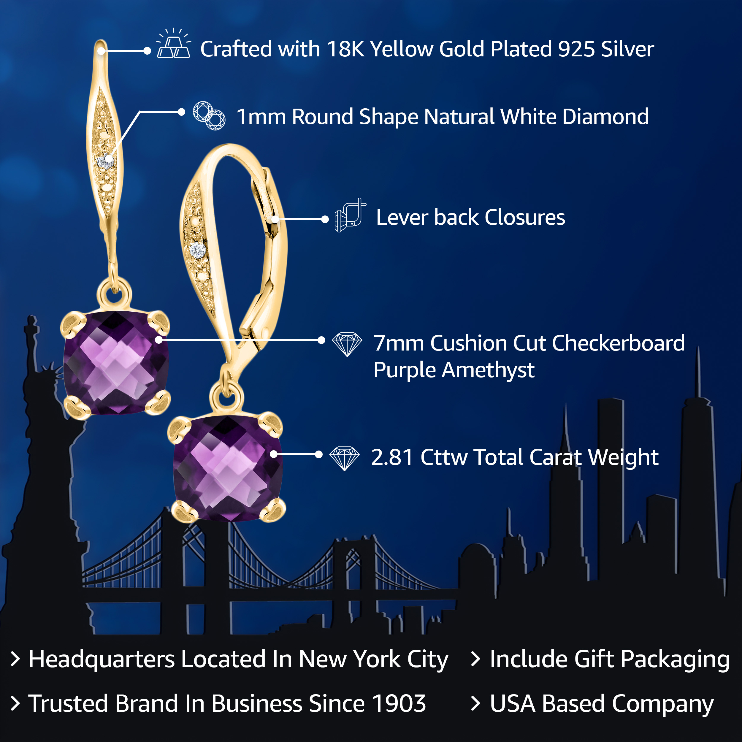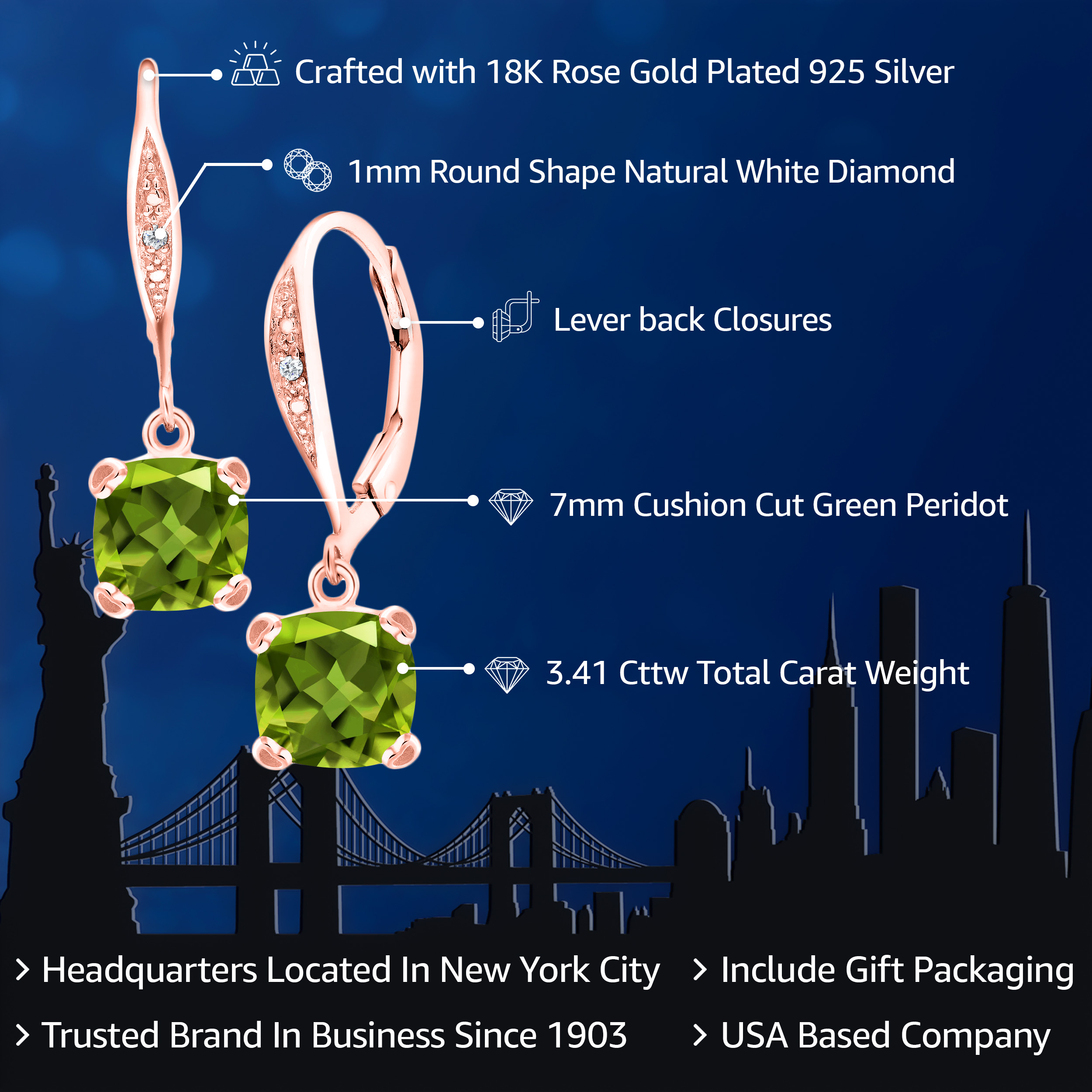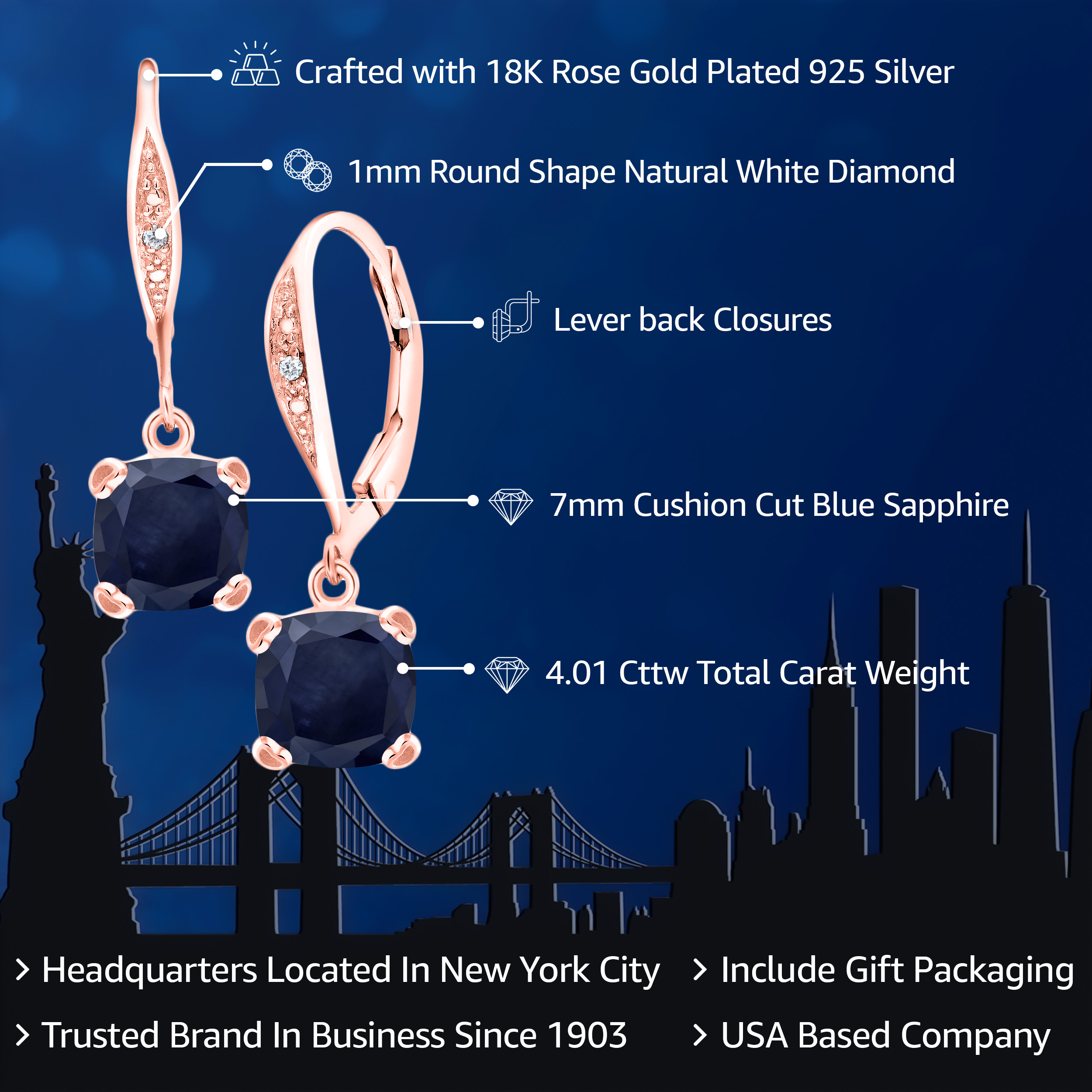 Drop Dangle Earrings For Women | 7MM Cushion Cut Gemstone Birthstone and White Diamond | 925 Sterling Silver | Fine Jewelry Gifts for Her Mom Women Wife