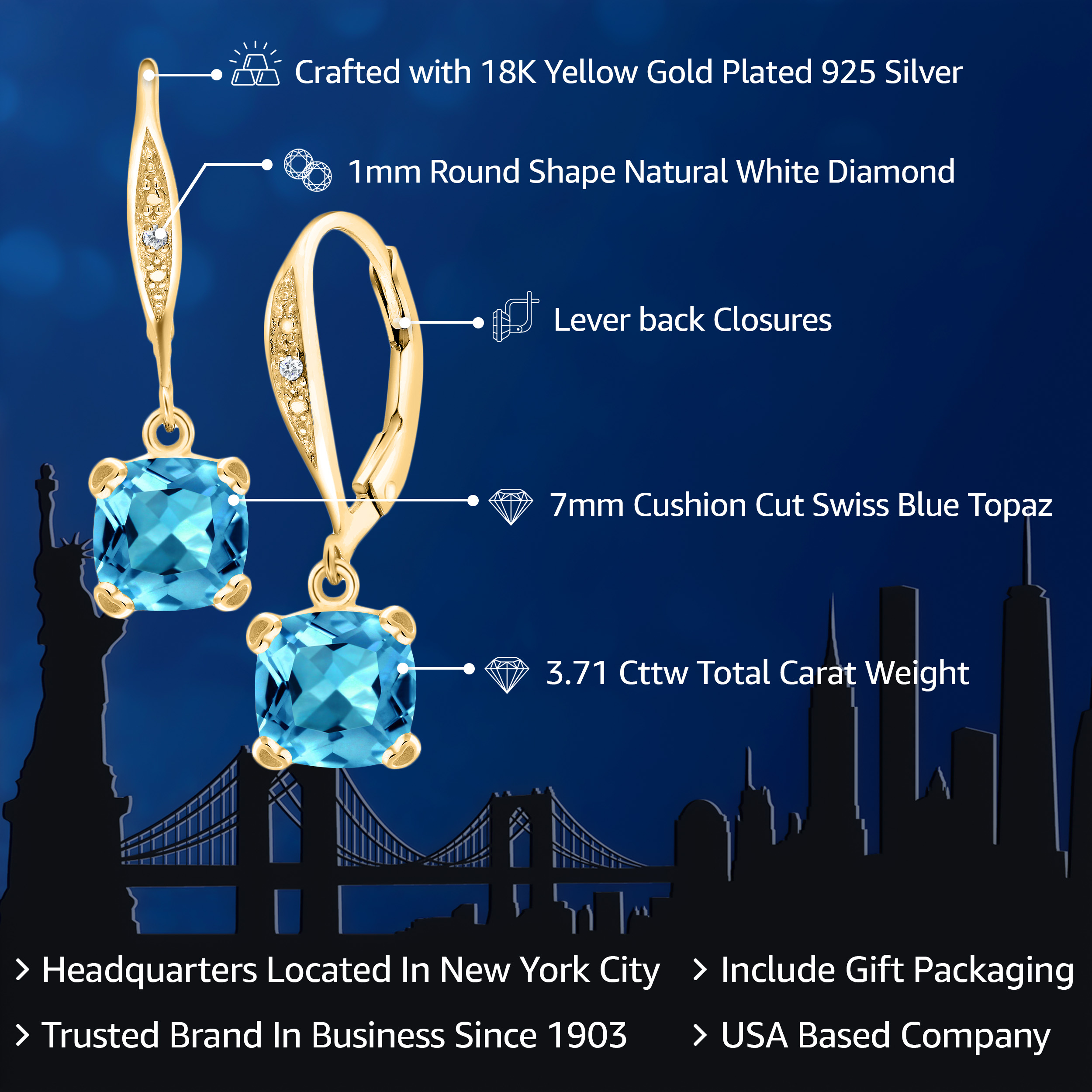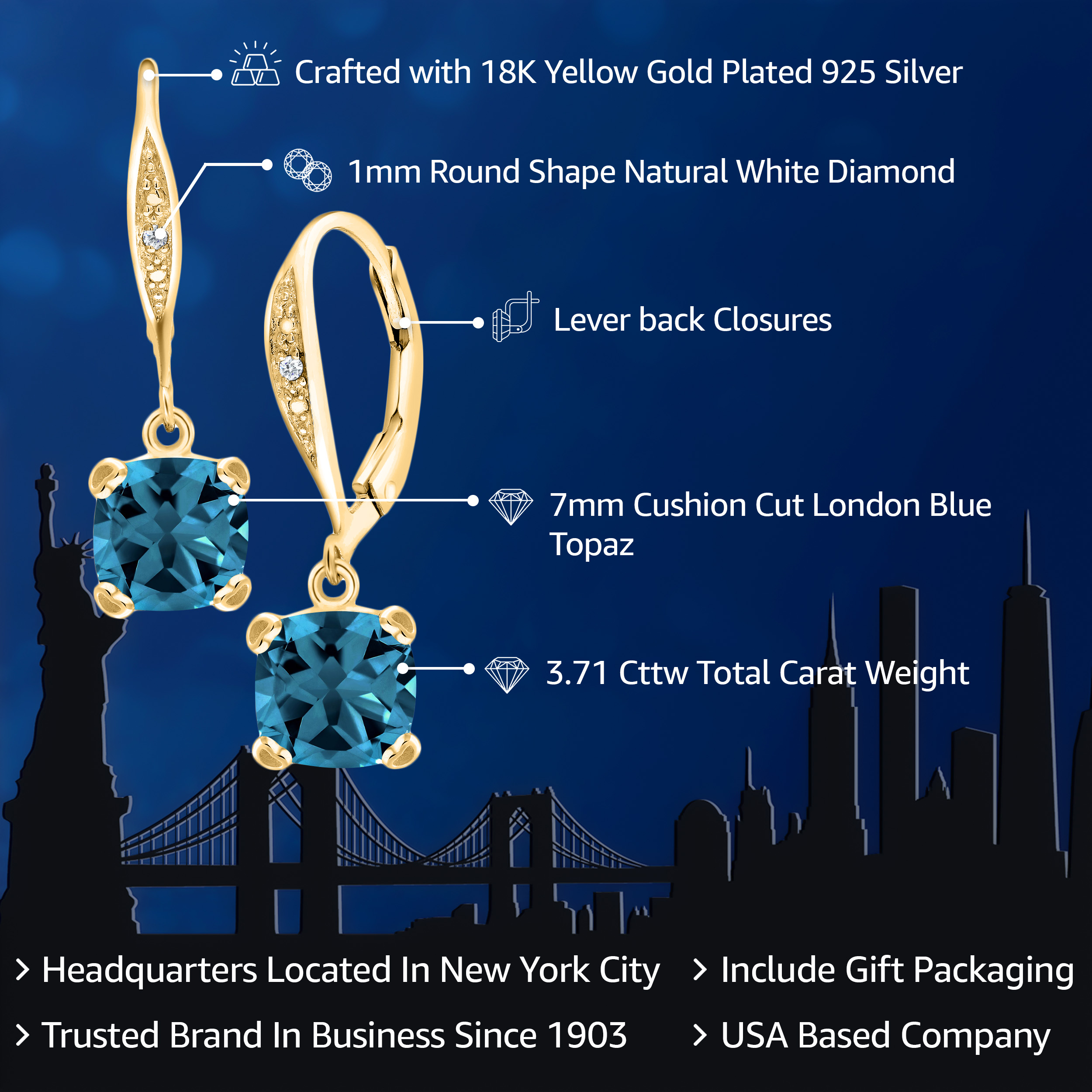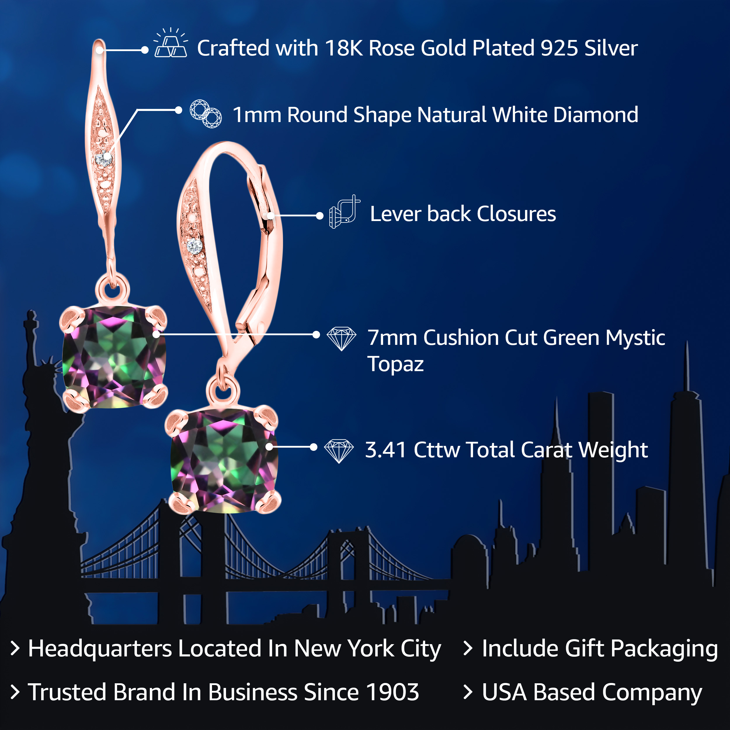 ELEGANT CUSHION CUT GEMSTONE DESIGN: These exquisite earrings feature 7mm cushion-cut gemstones, which provide a sophisticated and timeless look. The cushion cut enhances the gemstone's brilliance and depth, making these earrings a standout accessory for any occasion.
