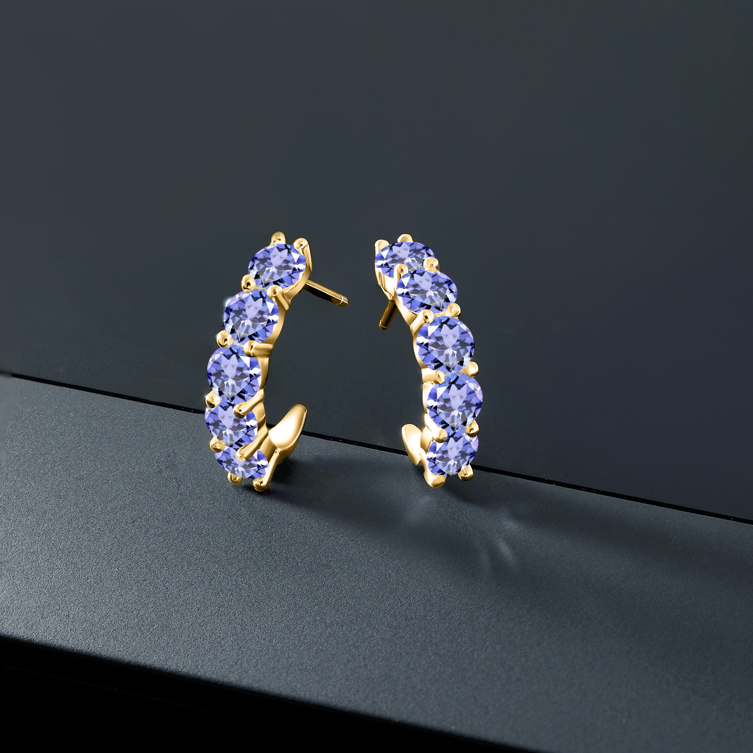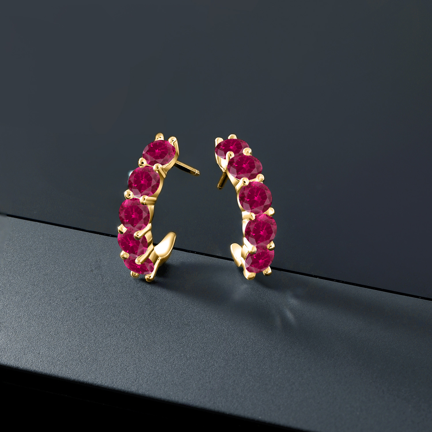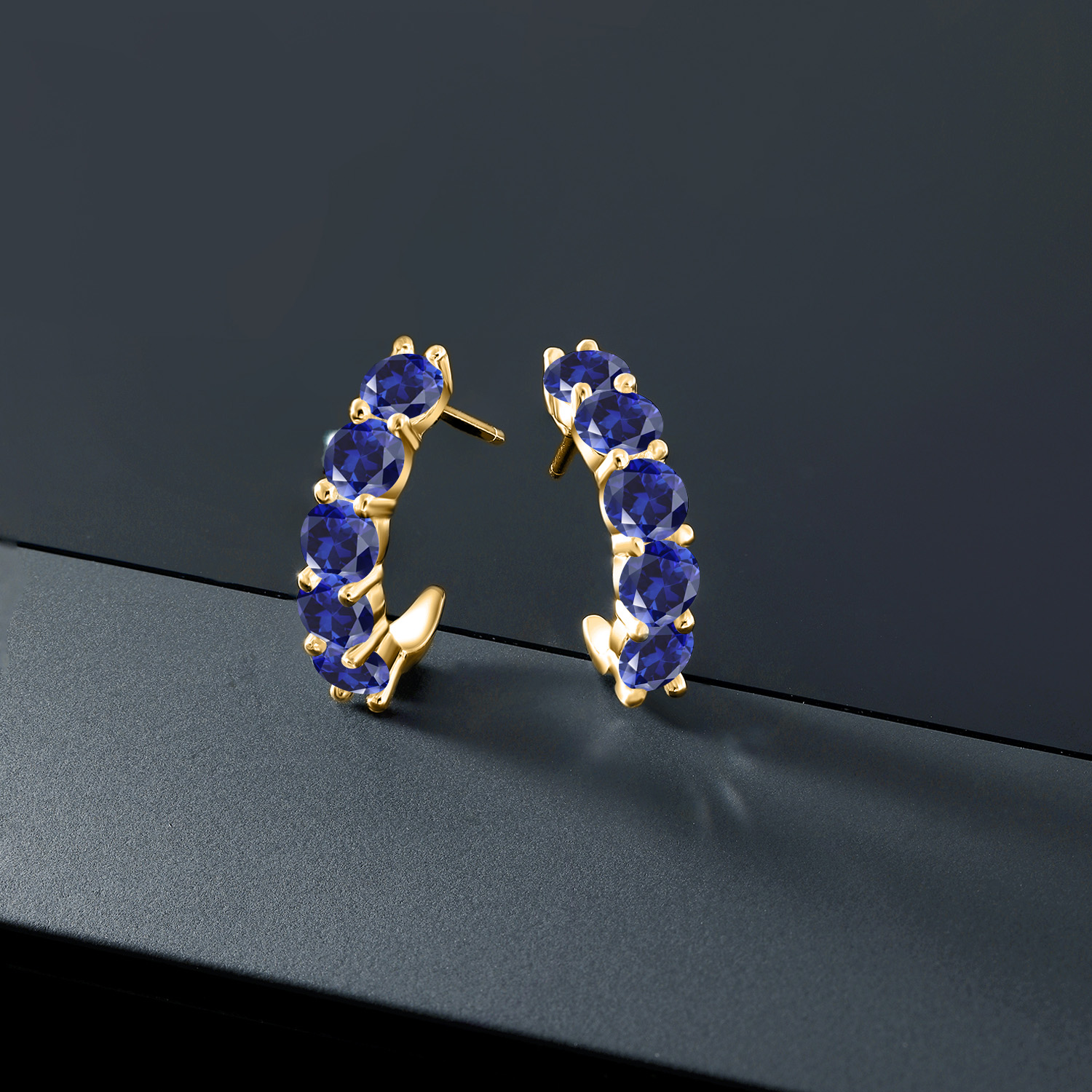 SUPERIOR QUALITY CRAFTSMANSHIP: Crafted from genuine 18K Gold Plated Sterling Silver, these earrings offer both durability and a brilliant shine. The 4MM round gemstone is meticulously selected for its vibrant color and exceptional clarity, ensuring a radiant sparkle that will be admired from every angle.