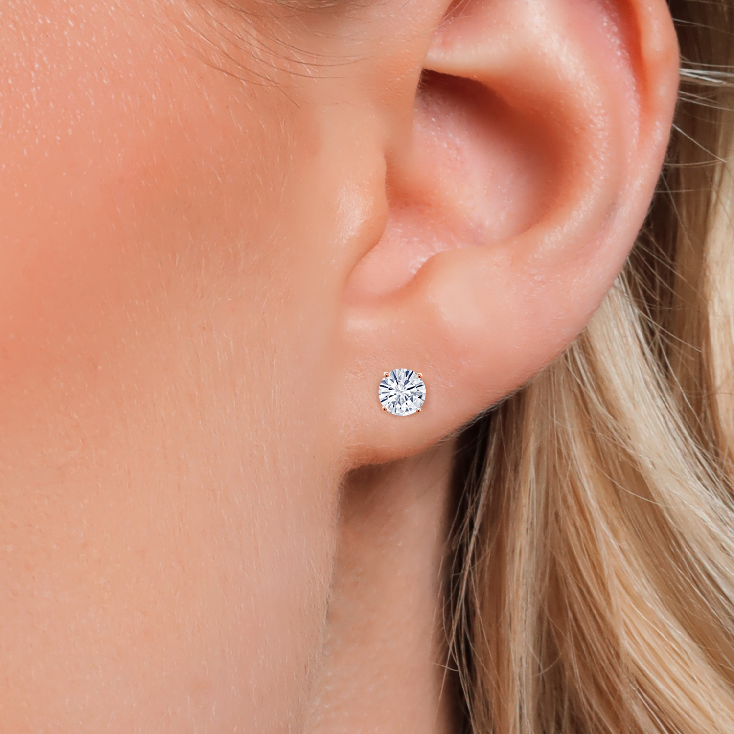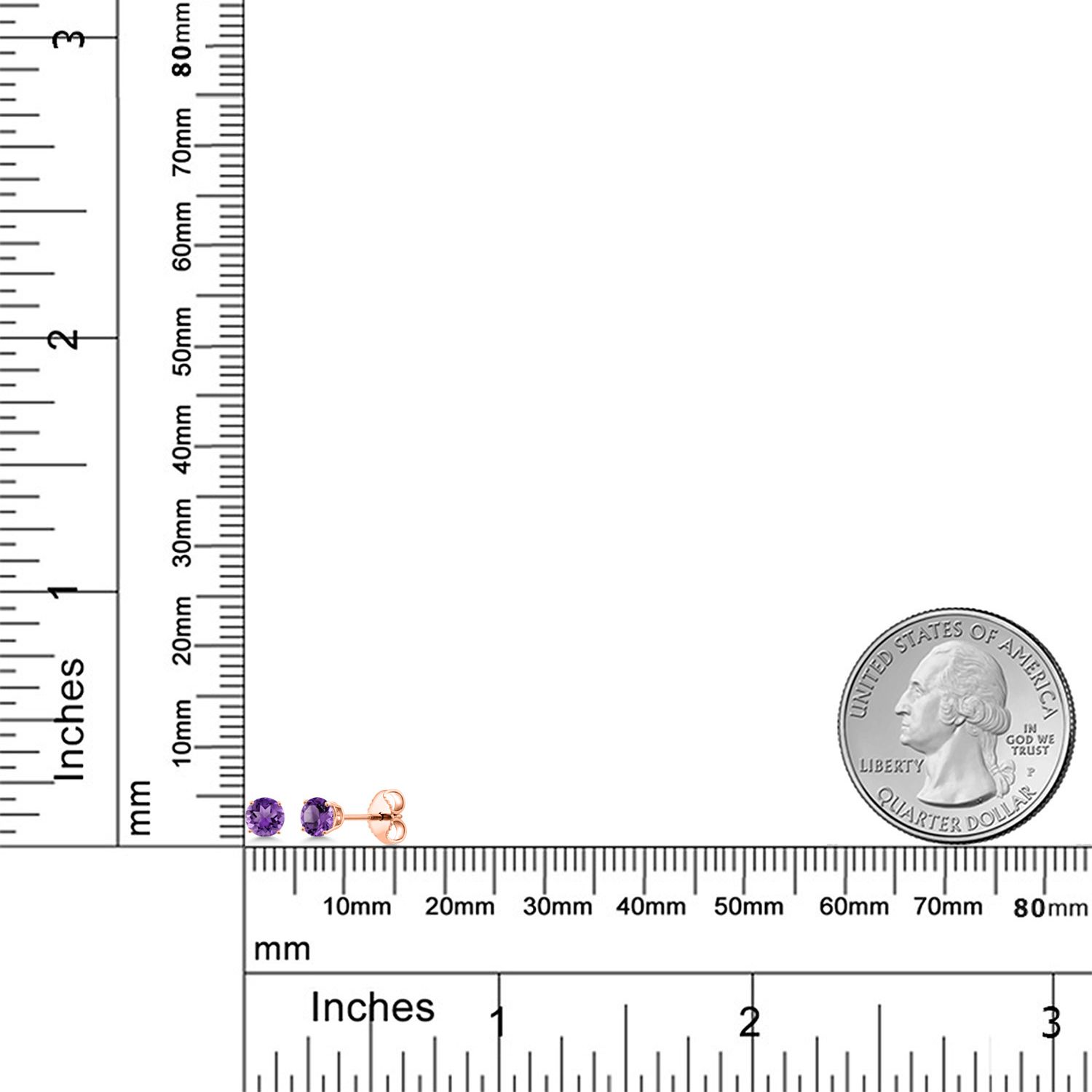 18K Rose Gold Plated Silver 4MM Round Gemstone Birthstone Stud Earrings for Women and Men | Classic Solitaire with Secure Backs | Elegant Everyday Jewelry for Her or Him