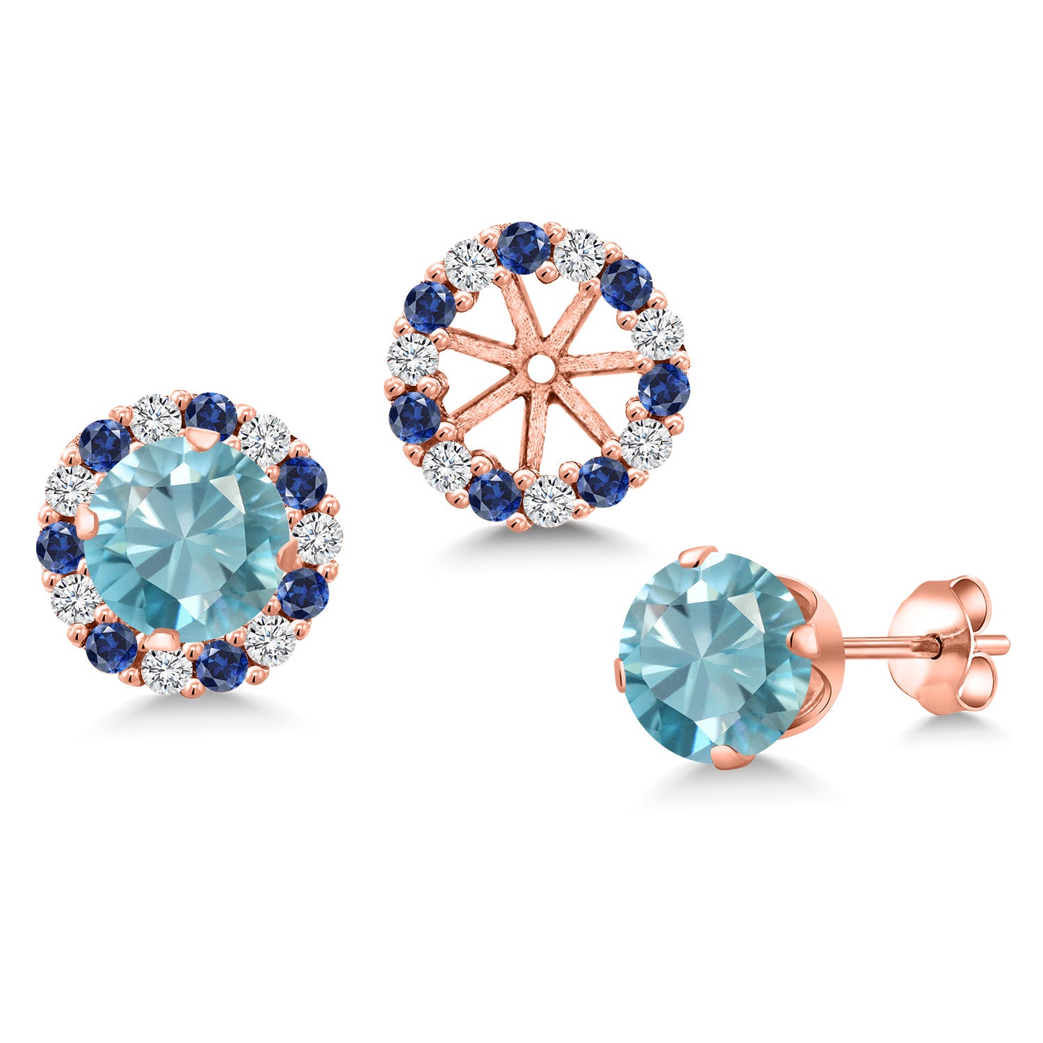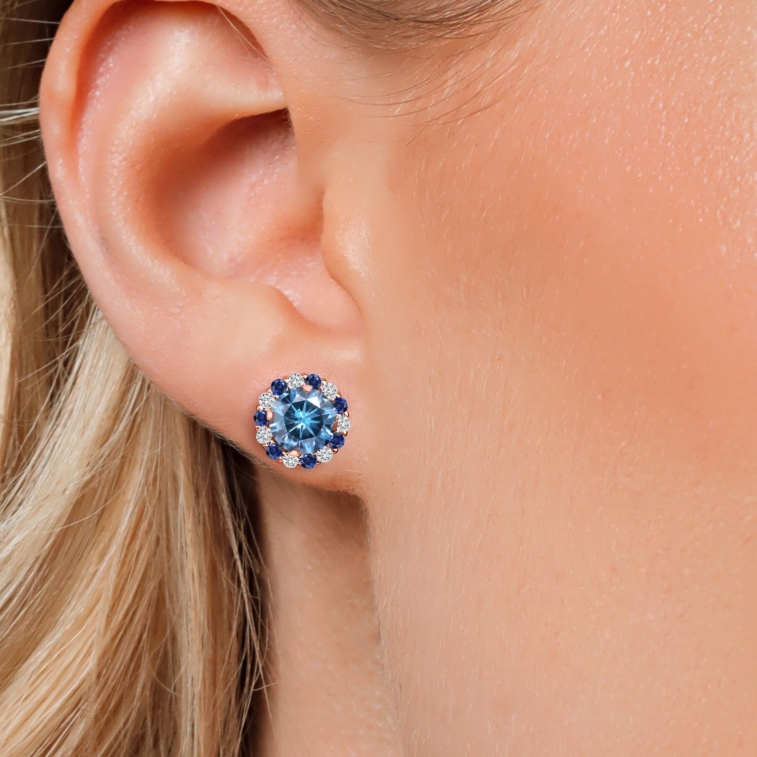 REFINED DIMENSIONS WITH A STATEMENT LOOK: The 6MM gemstone, combined with a 1.3MM zirconia halo, creates a refined yet bold appearance. The jackets add an extra layer of dimension, enhancing the overall design while ensuring lightweight wear. These earrings promise to complement your style, whether you're looking for a subtle touch of elegance or a standout accessory.