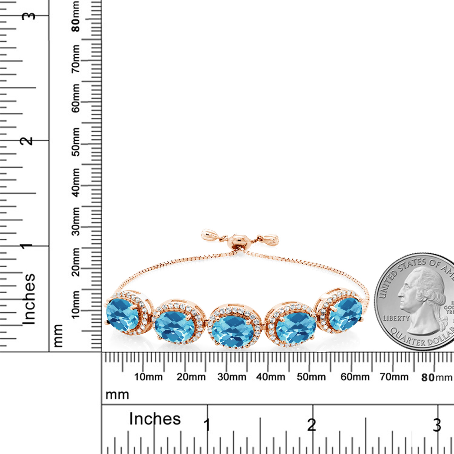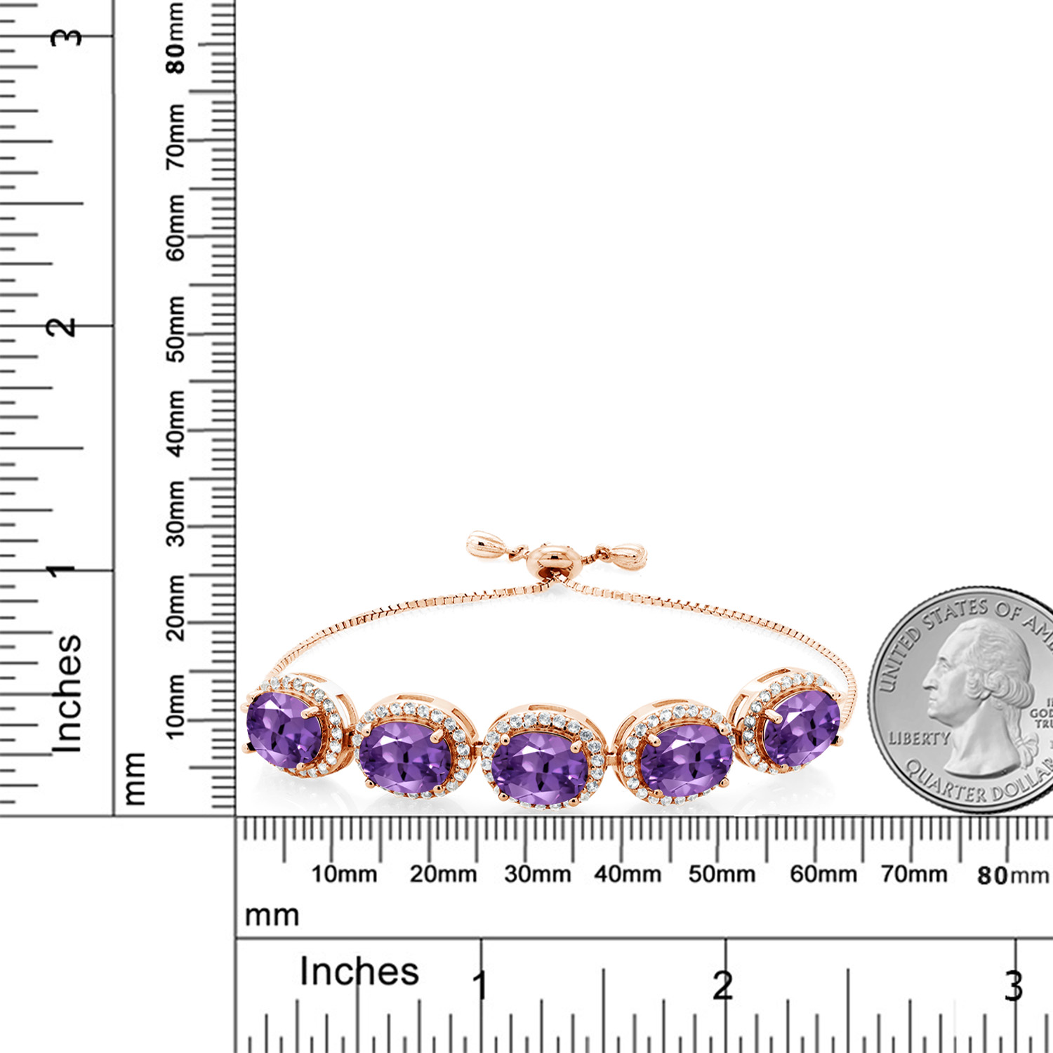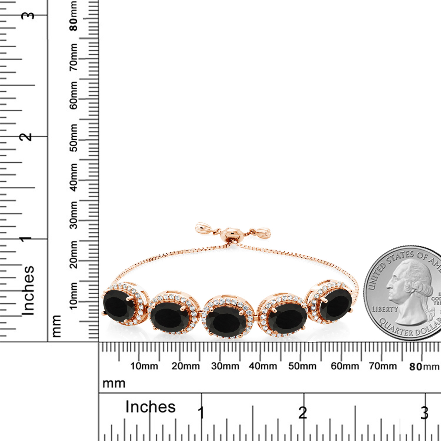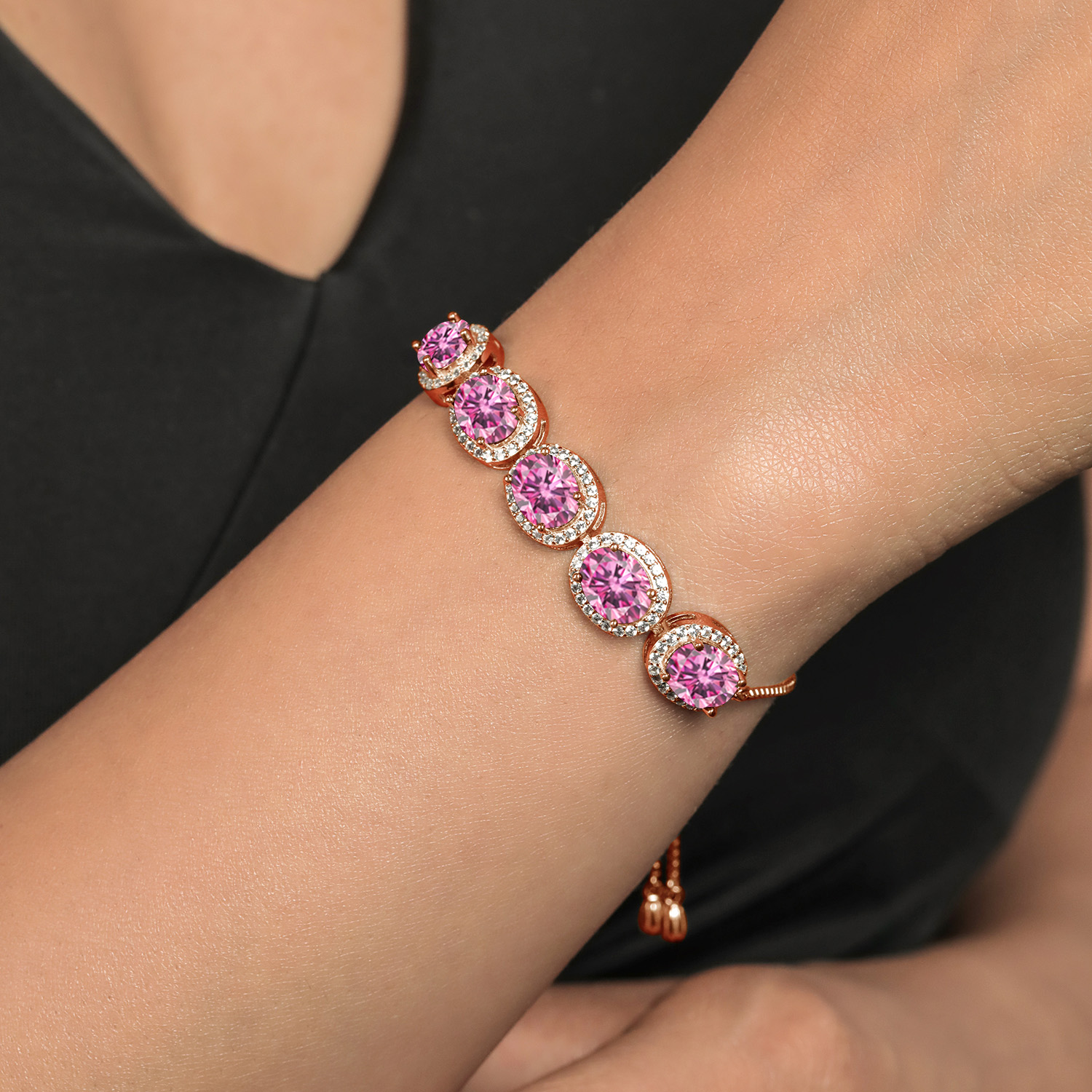 ELEGANT 5-STONE DESIGN: This stunning tennis bracelet features five oval 9x7mm gemstones of your choice, expertly set in lustrous 18K Rose Gold Plated Silver, creating a timeless and sophisticated piece that adds a touch of glamour to any outfit.
