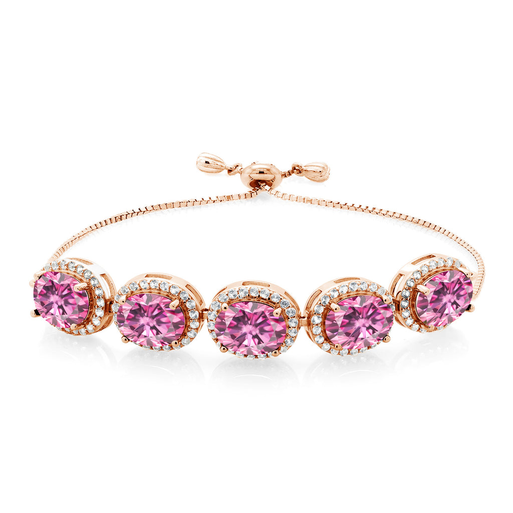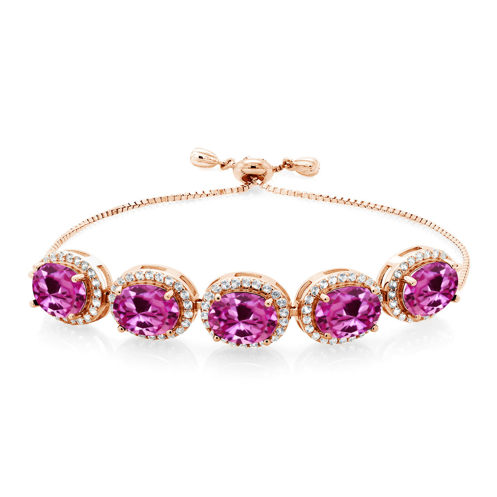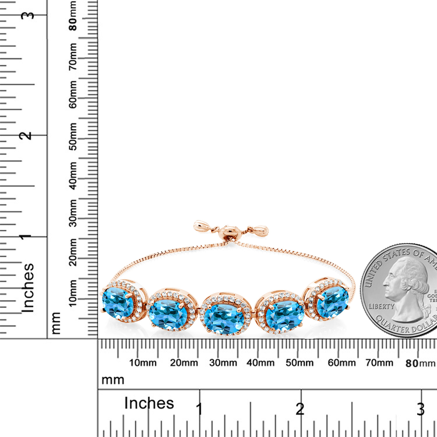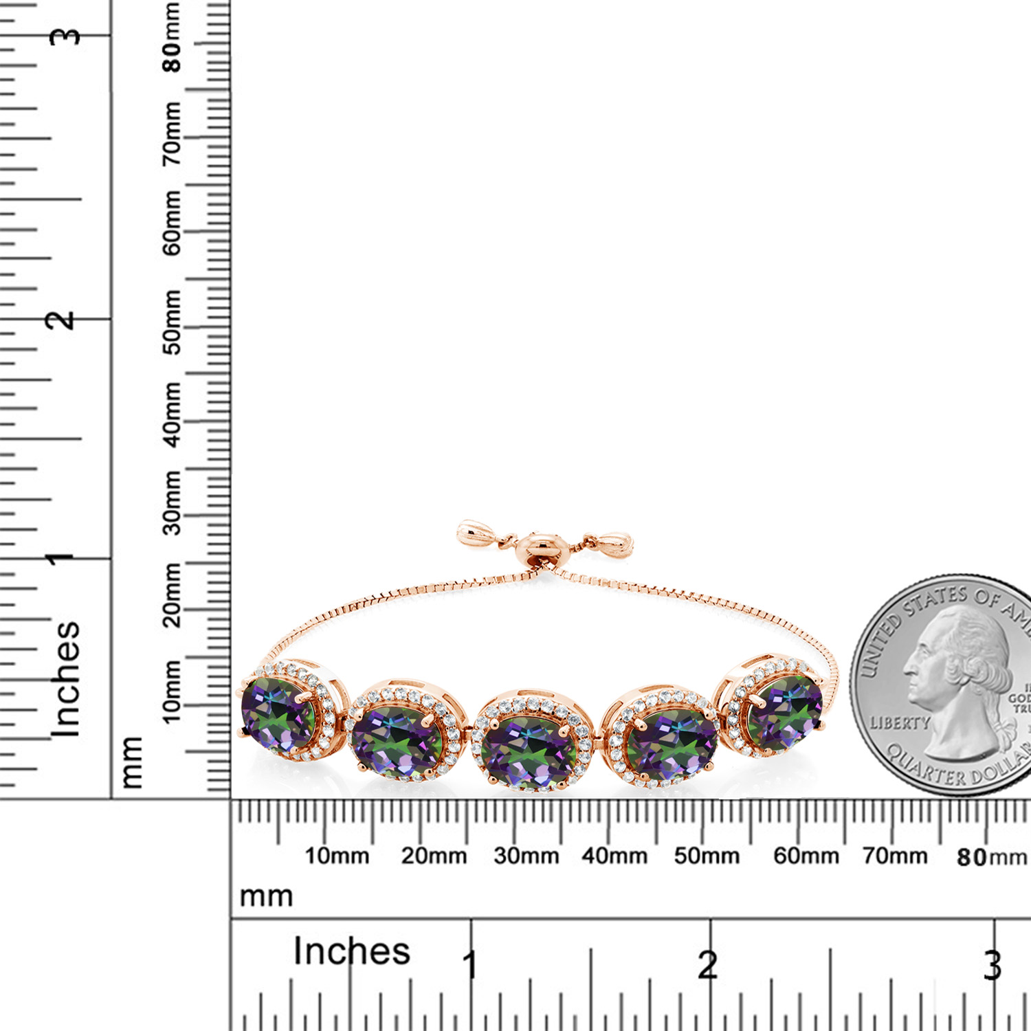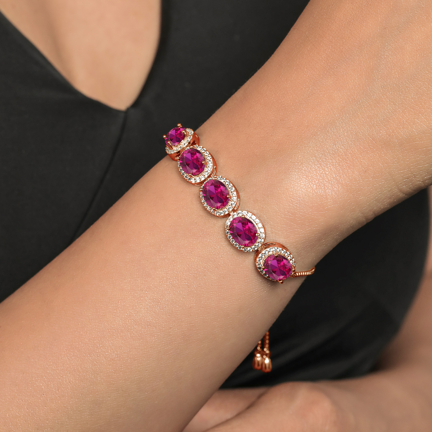 ELEGANT 5-STONE DESIGN: This stunning tennis bracelet features five oval 9x7mm gemstones of your choice, expertly set in lustrous 18K Rose Gold Plated Silver, creating a timeless and sophisticated piece that adds a touch of glamour to any outfit.