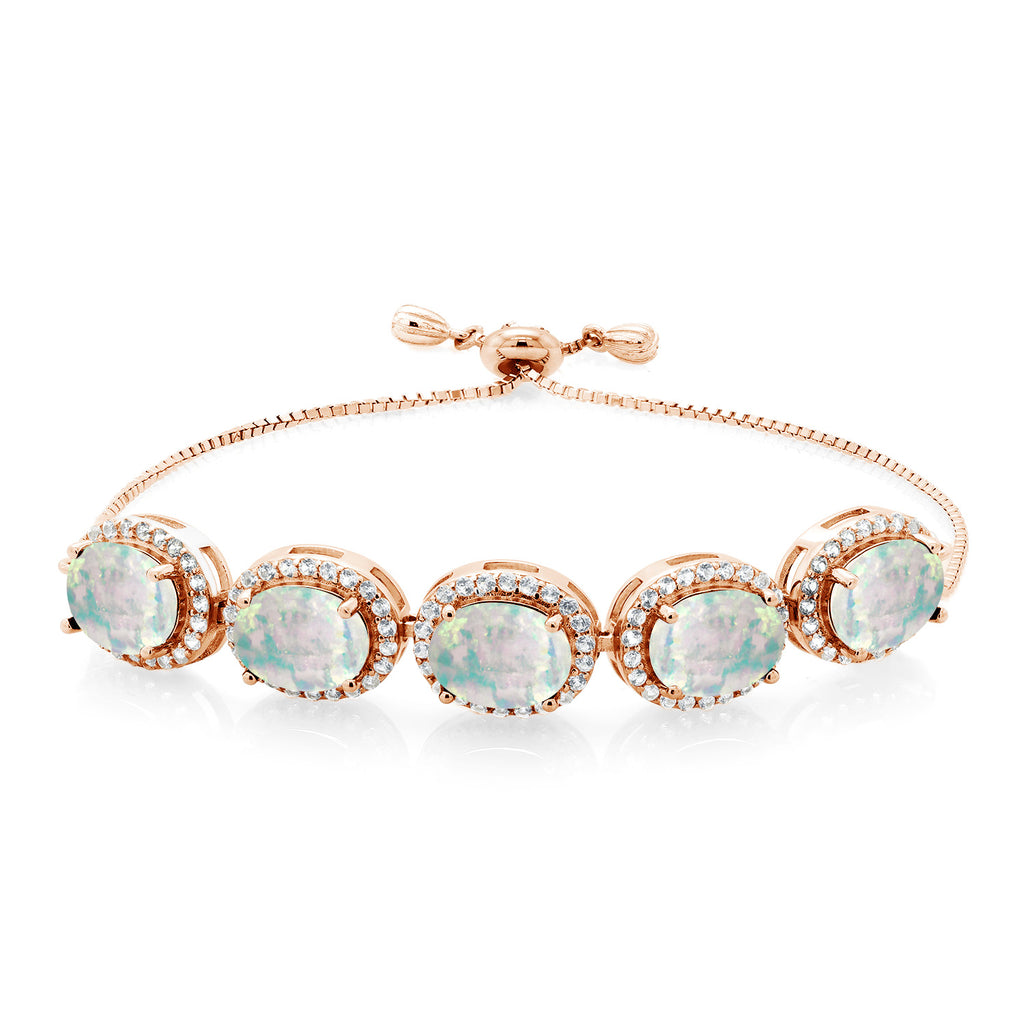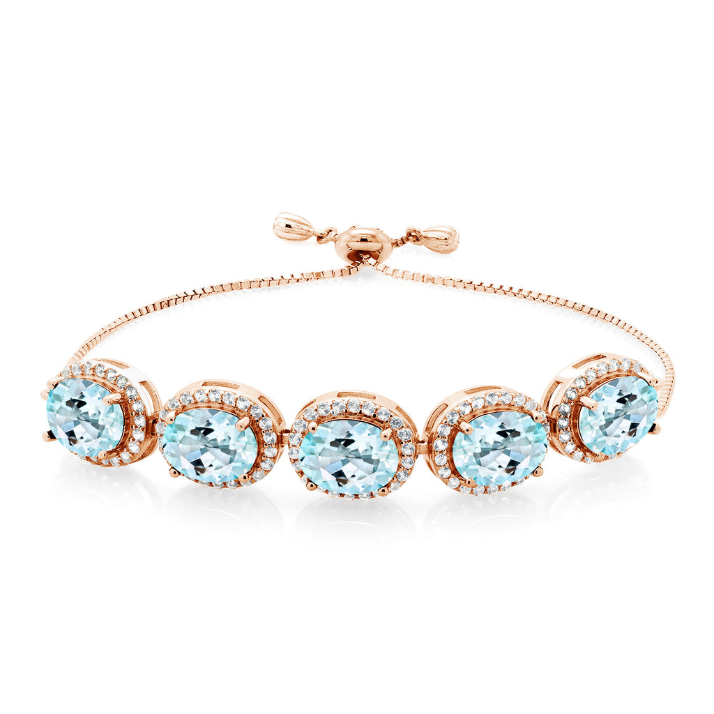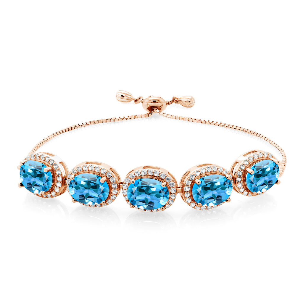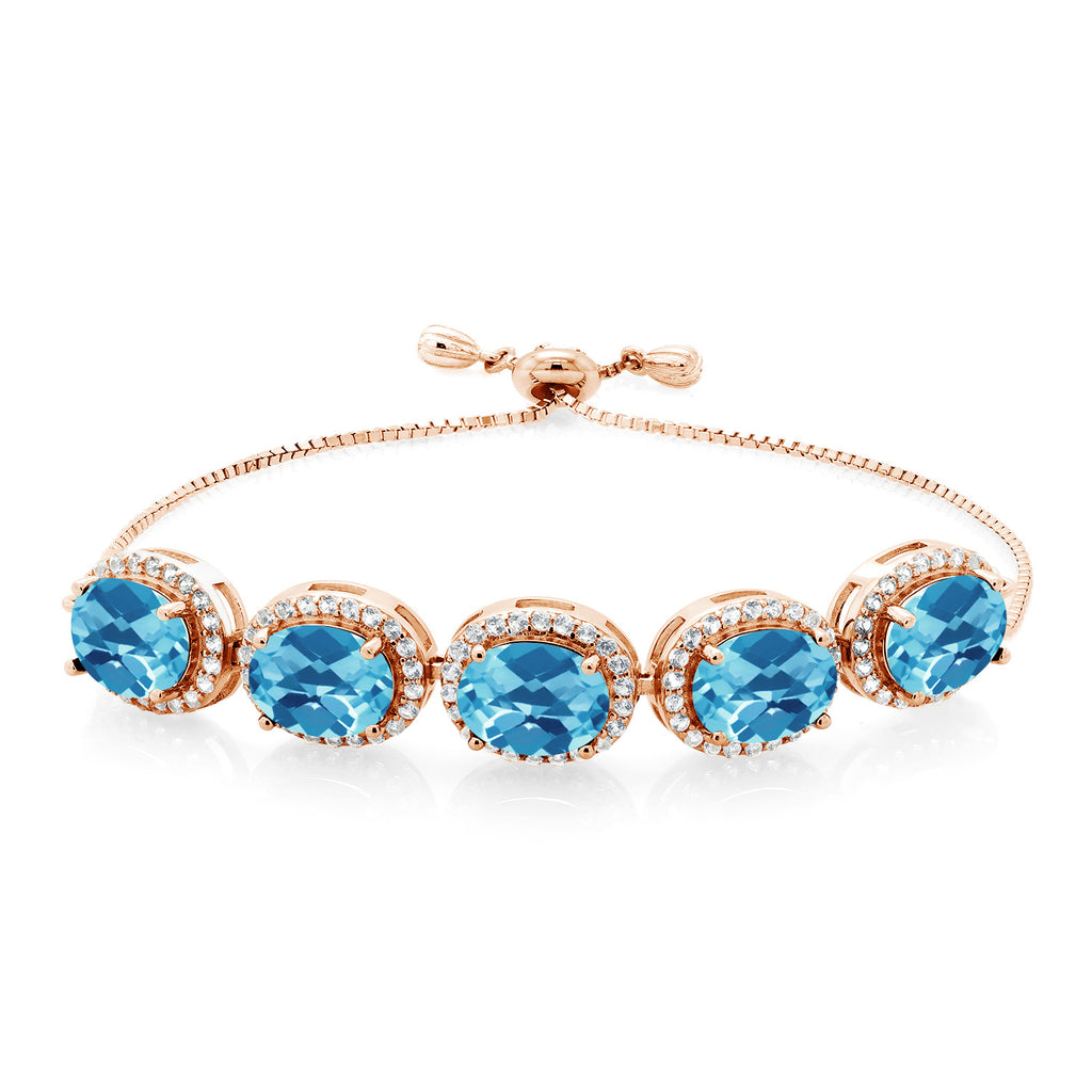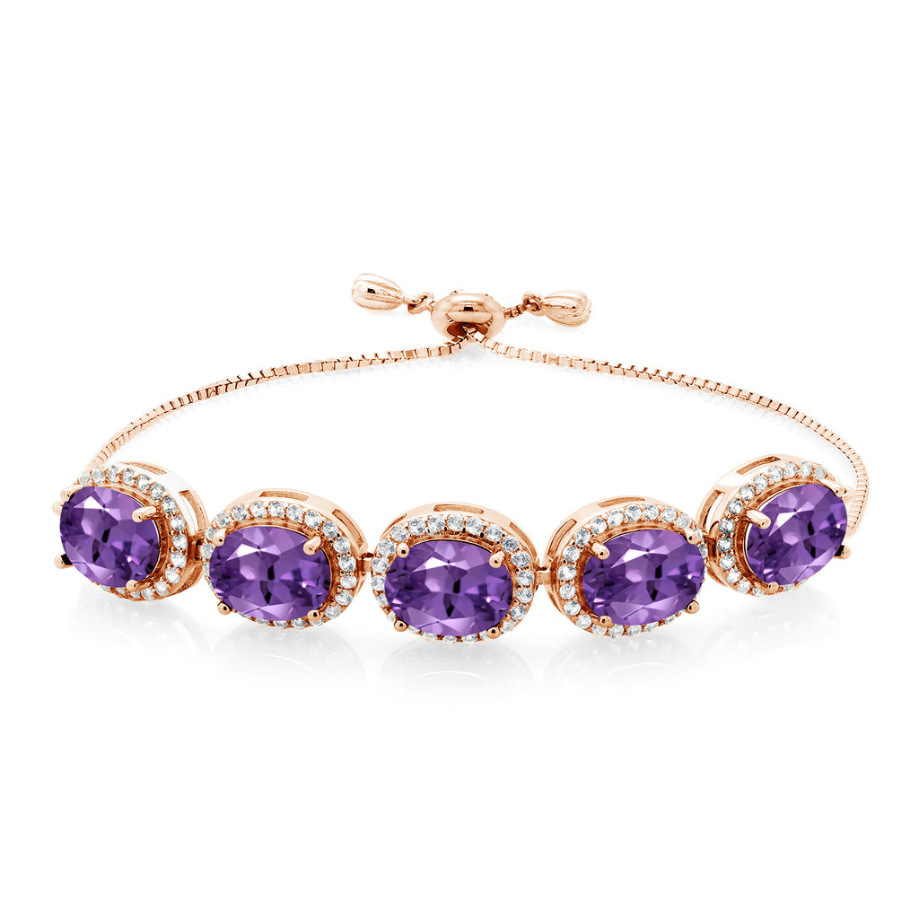 ELEGANT 5-STONE DESIGN: This stunning tennis bracelet features five oval 9x7mm gemstones of your choice, expertly set in lustrous 18K Rose Gold Plated Silver, creating a timeless and sophisticated piece that adds a touch of glamour to any outfit.